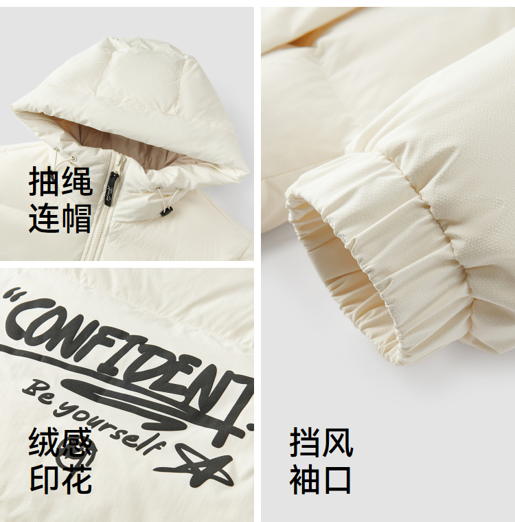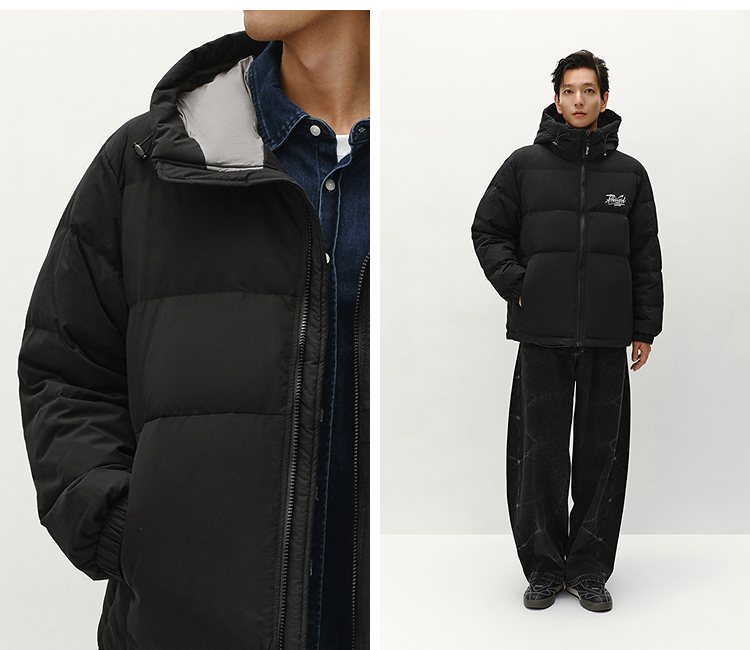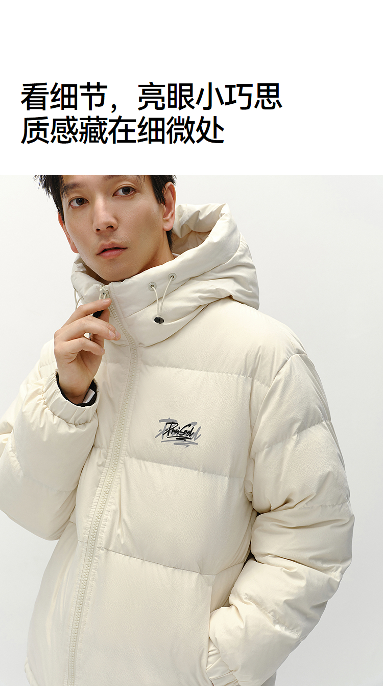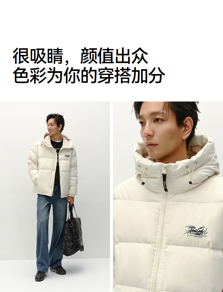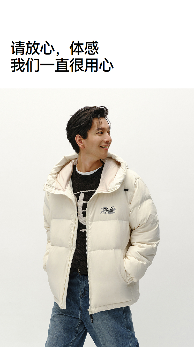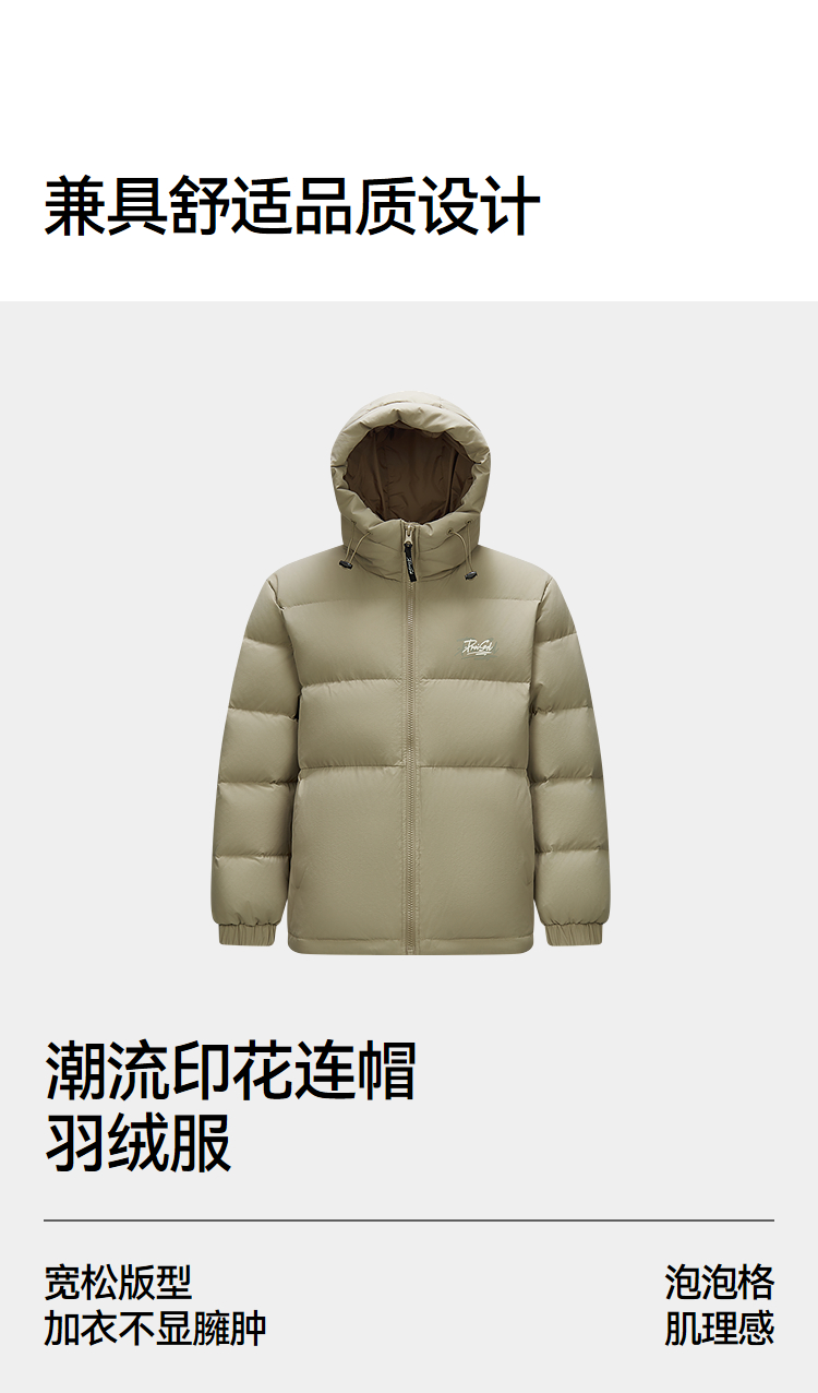 森马羽绒服男冬装80绒子宽松连帽外套肌理感街头潮流字母印花上衣