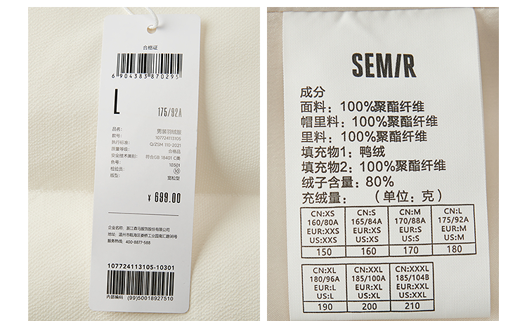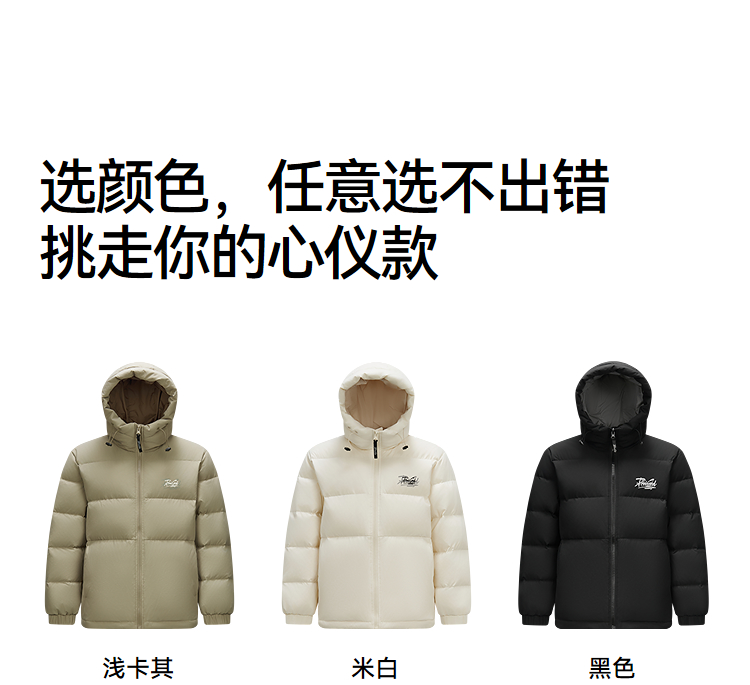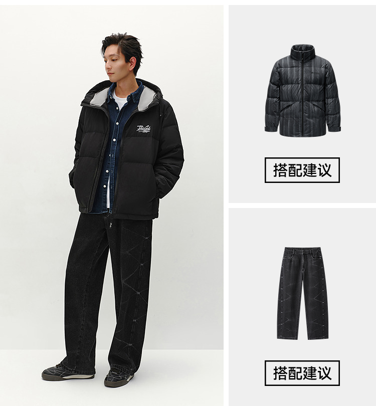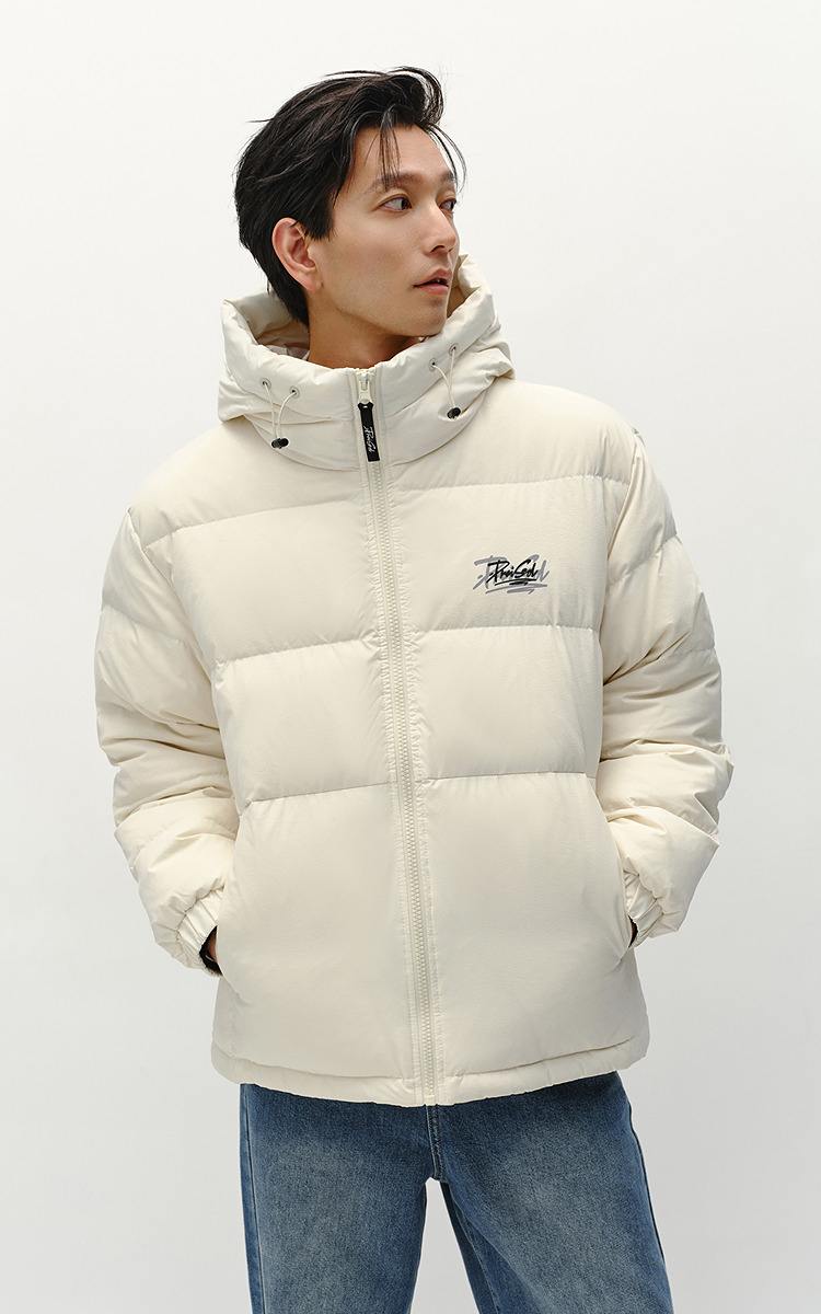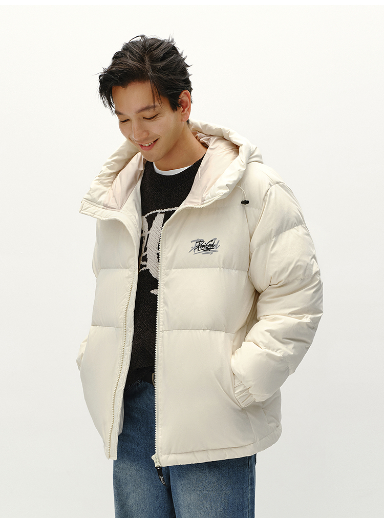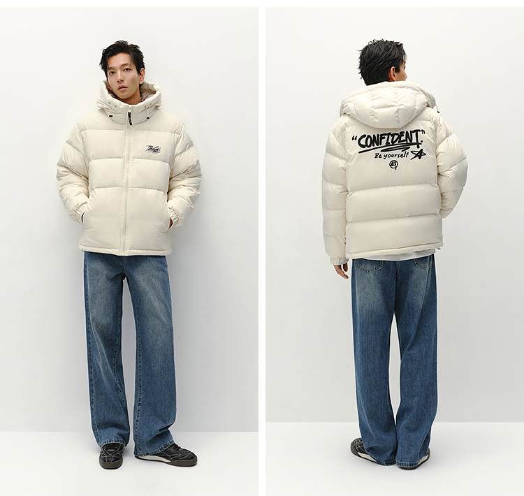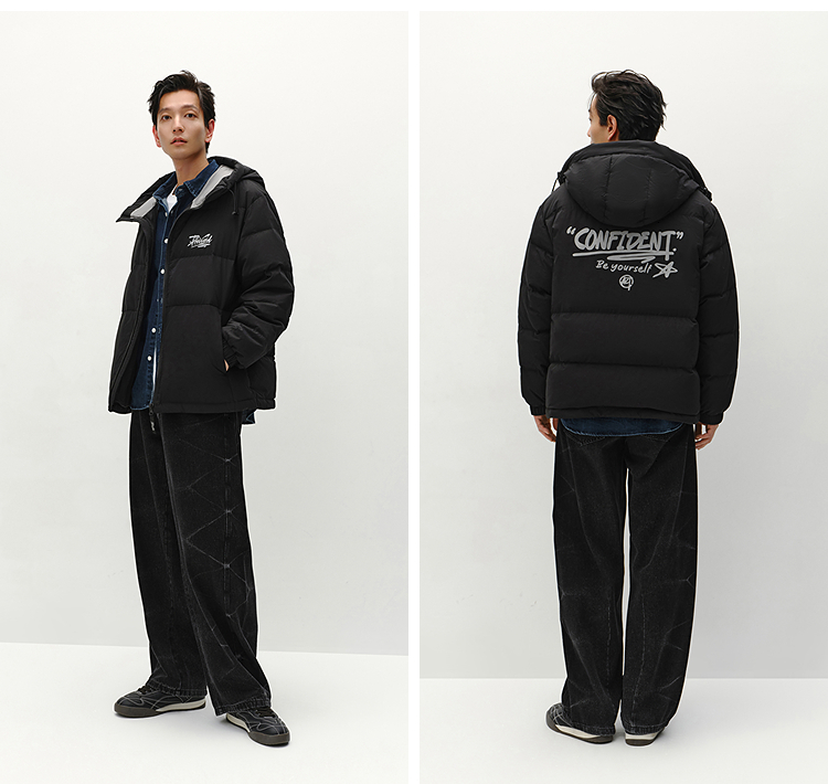 森马羽绒服男冬装80绒子宽松连帽外套肌理感街头潮流字母印花上衣
