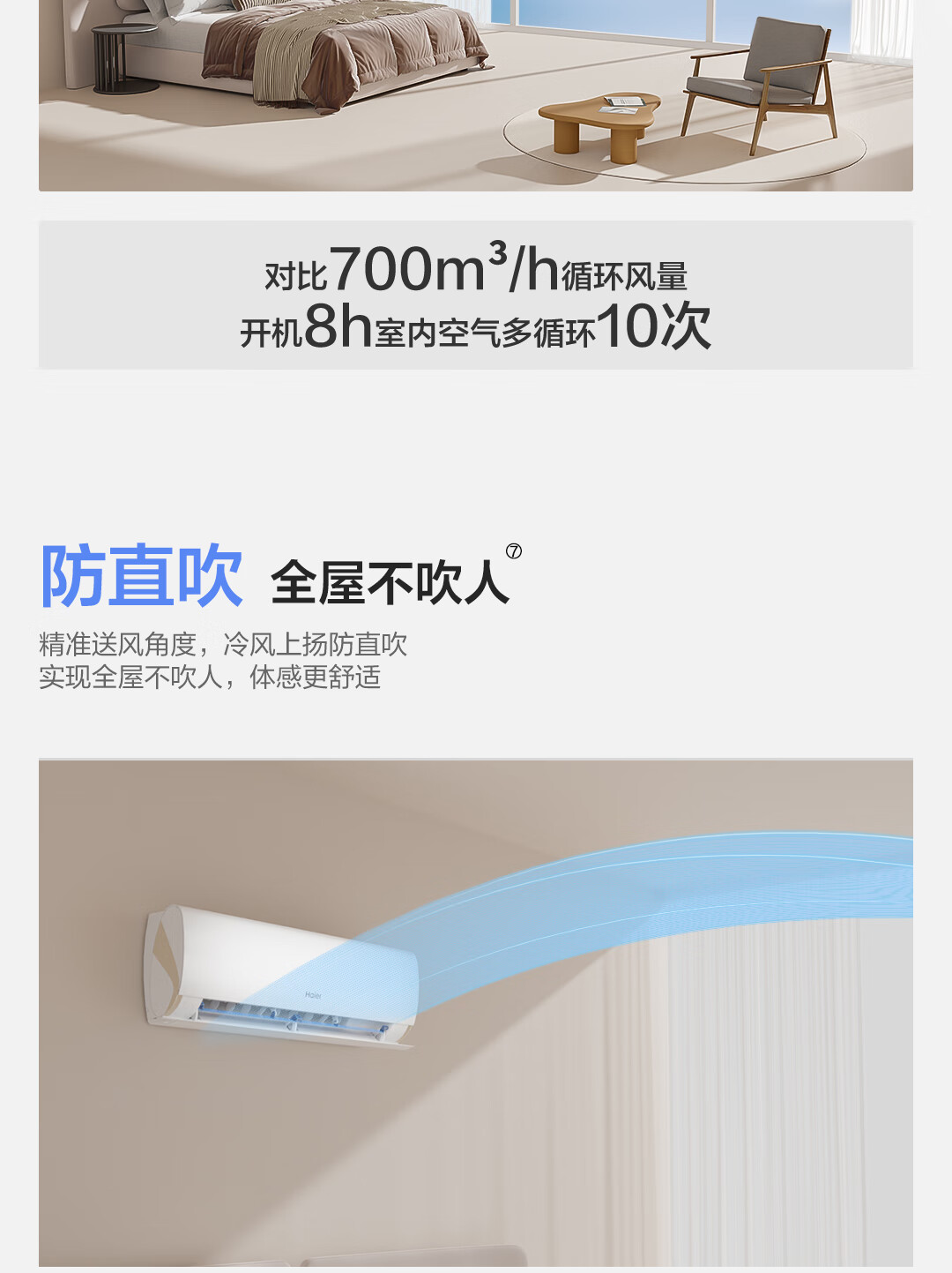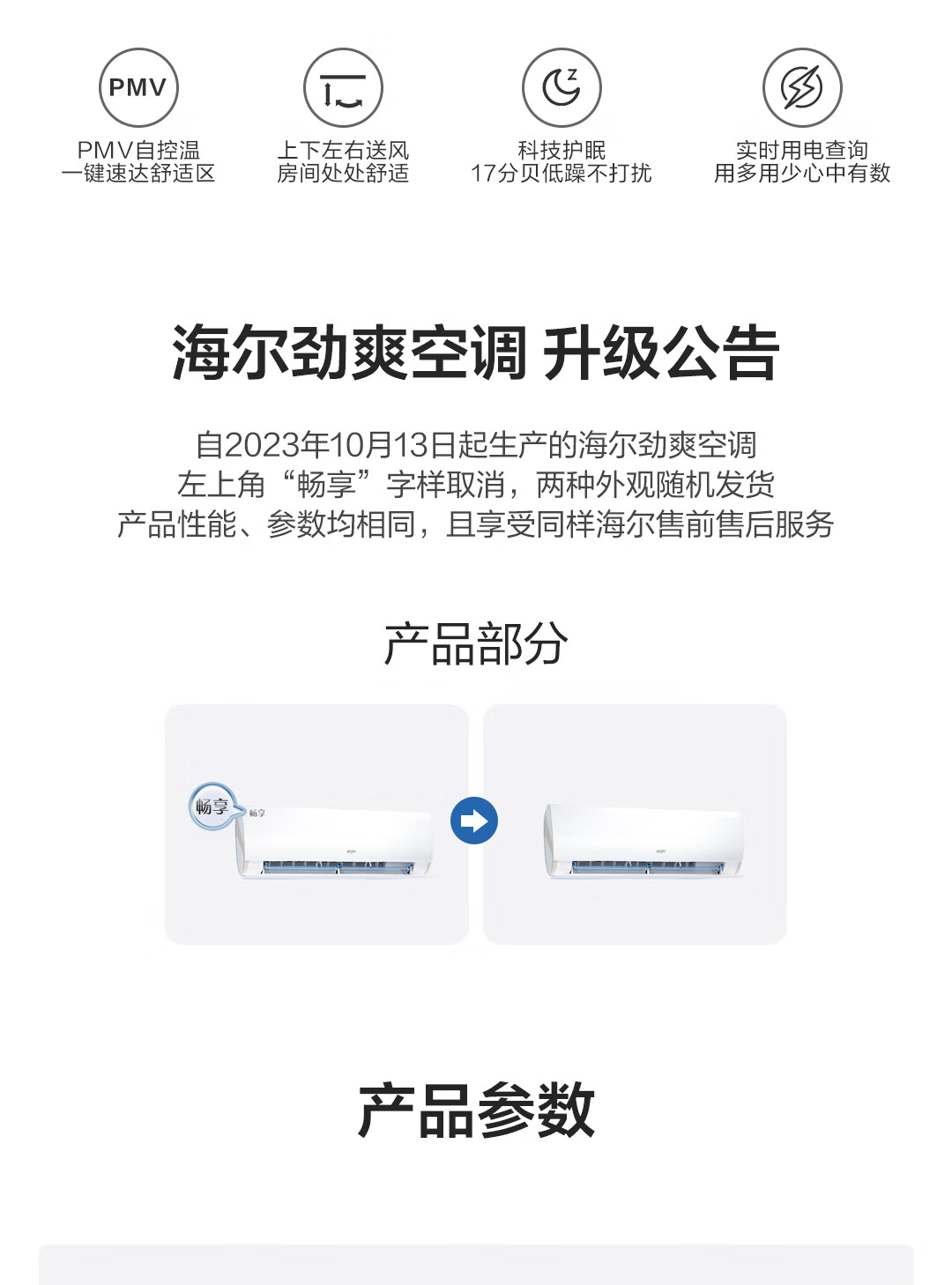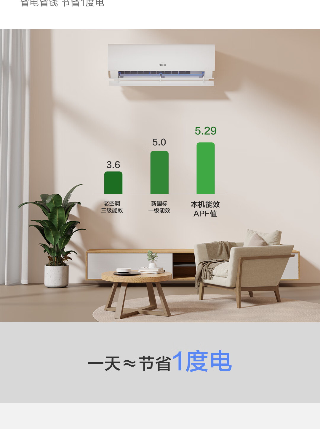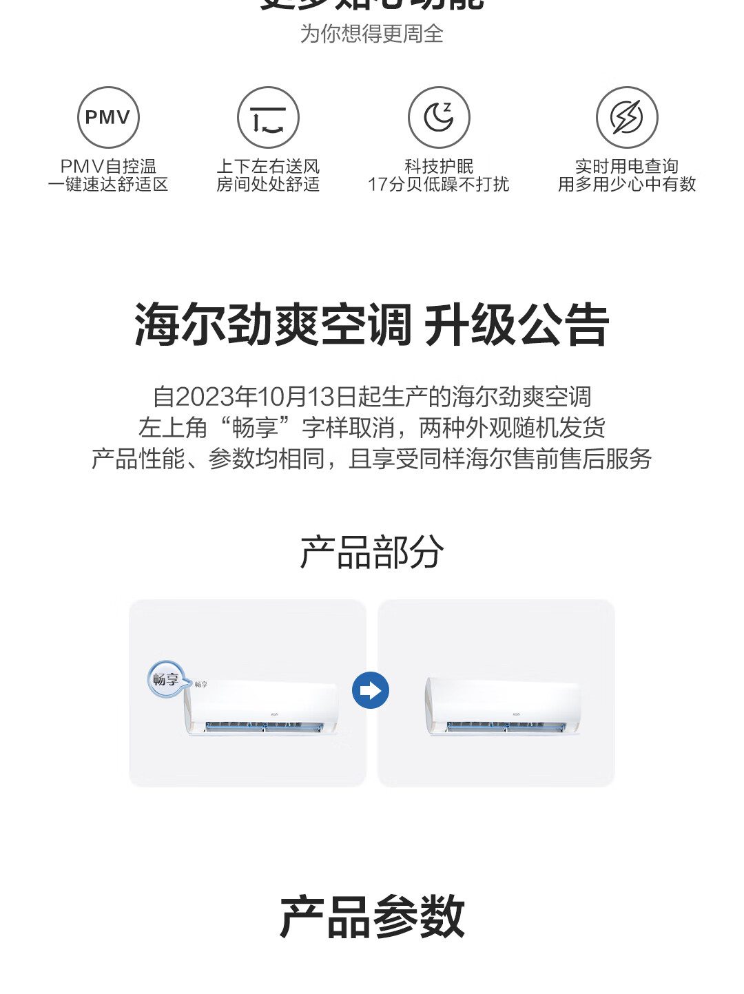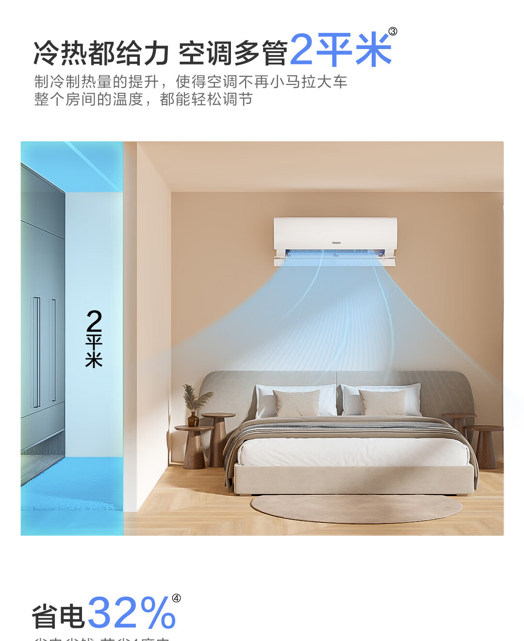 海尔畅享系列新1级 变频防直吹壁挂空调 大1.5匹 一级能效 整机6 自清洁PMV自控温APP远程自控 1.5匹 一级能效 35GW/B5LCA81U1
