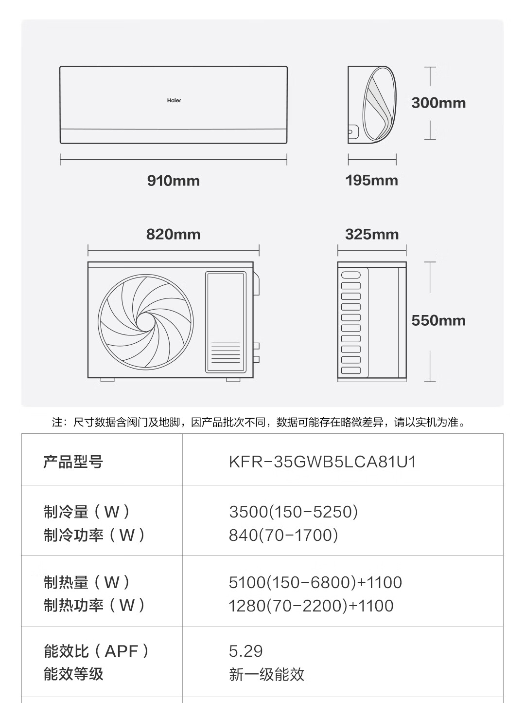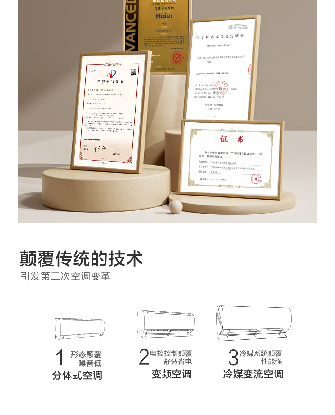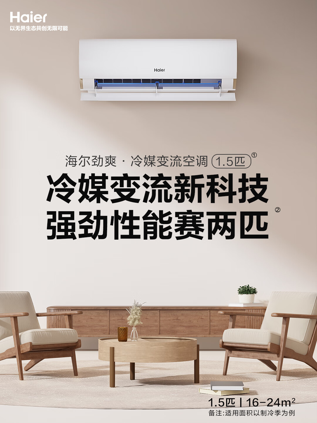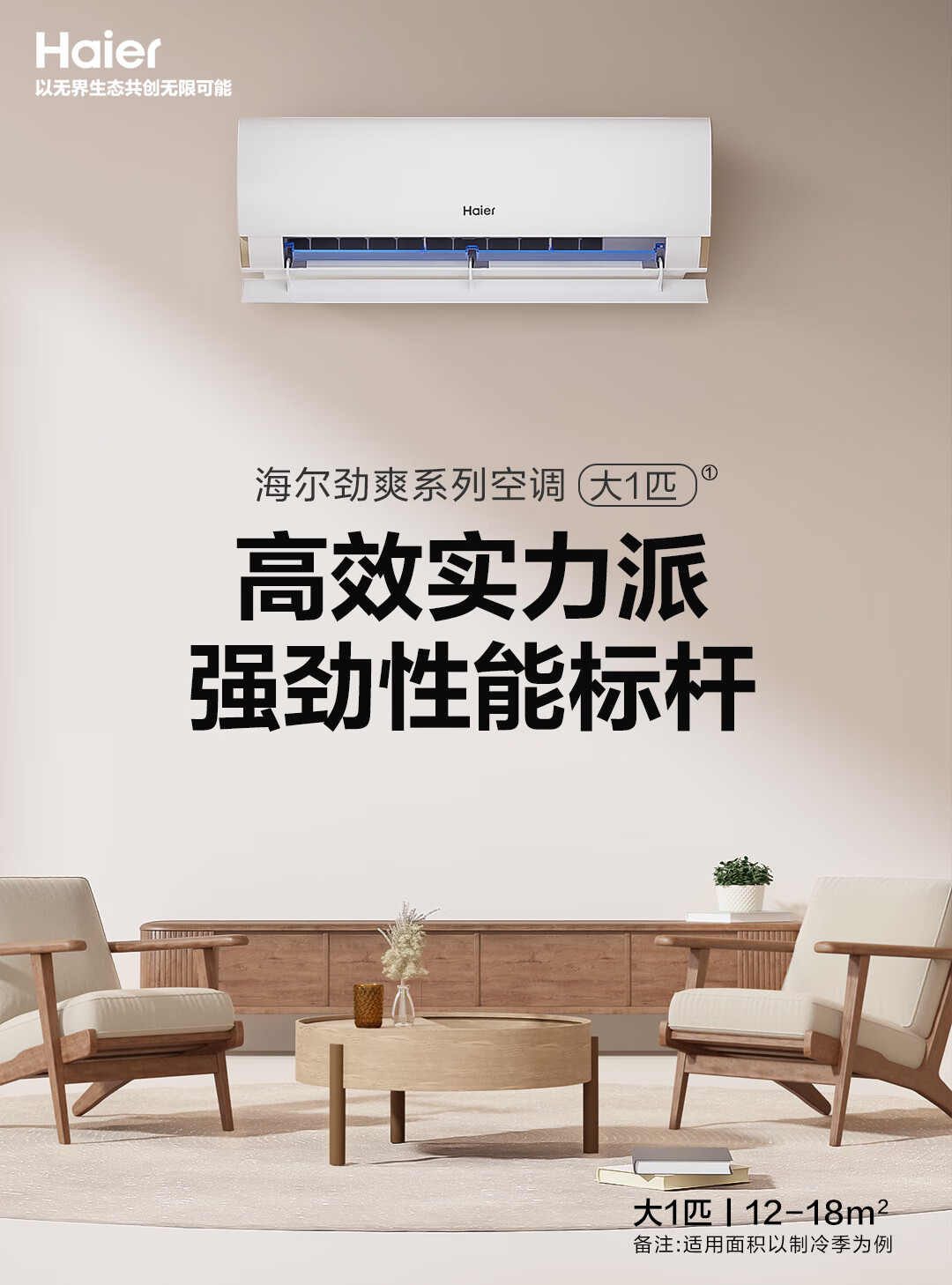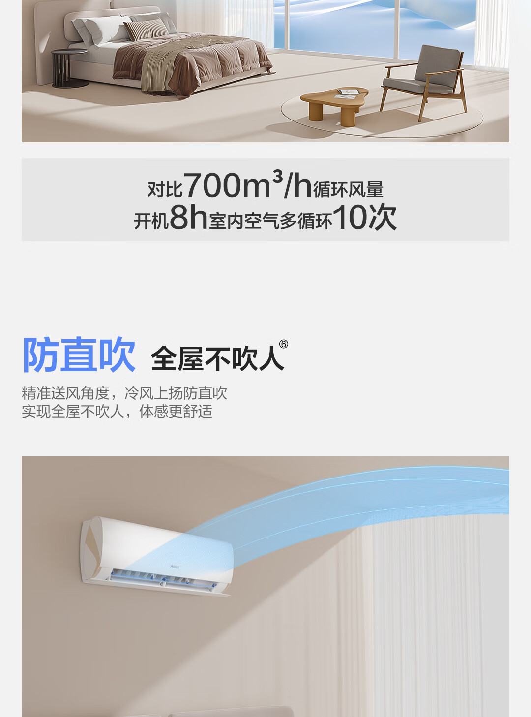 海尔畅享系列新1级 变频防直吹壁挂空调 大1.5匹 一级能效 整机6 自清洁PMV自控温APP远程自控 1.5匹 一级能效 35GW/B5LCA81U1