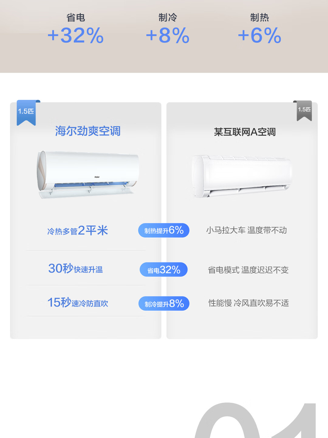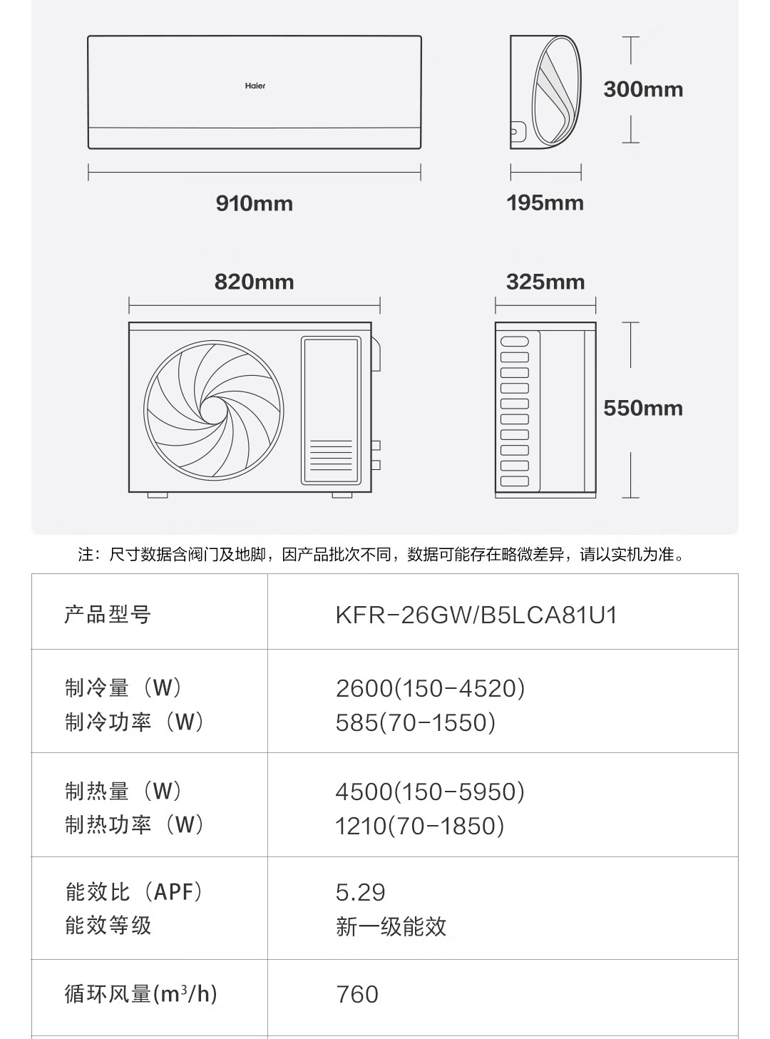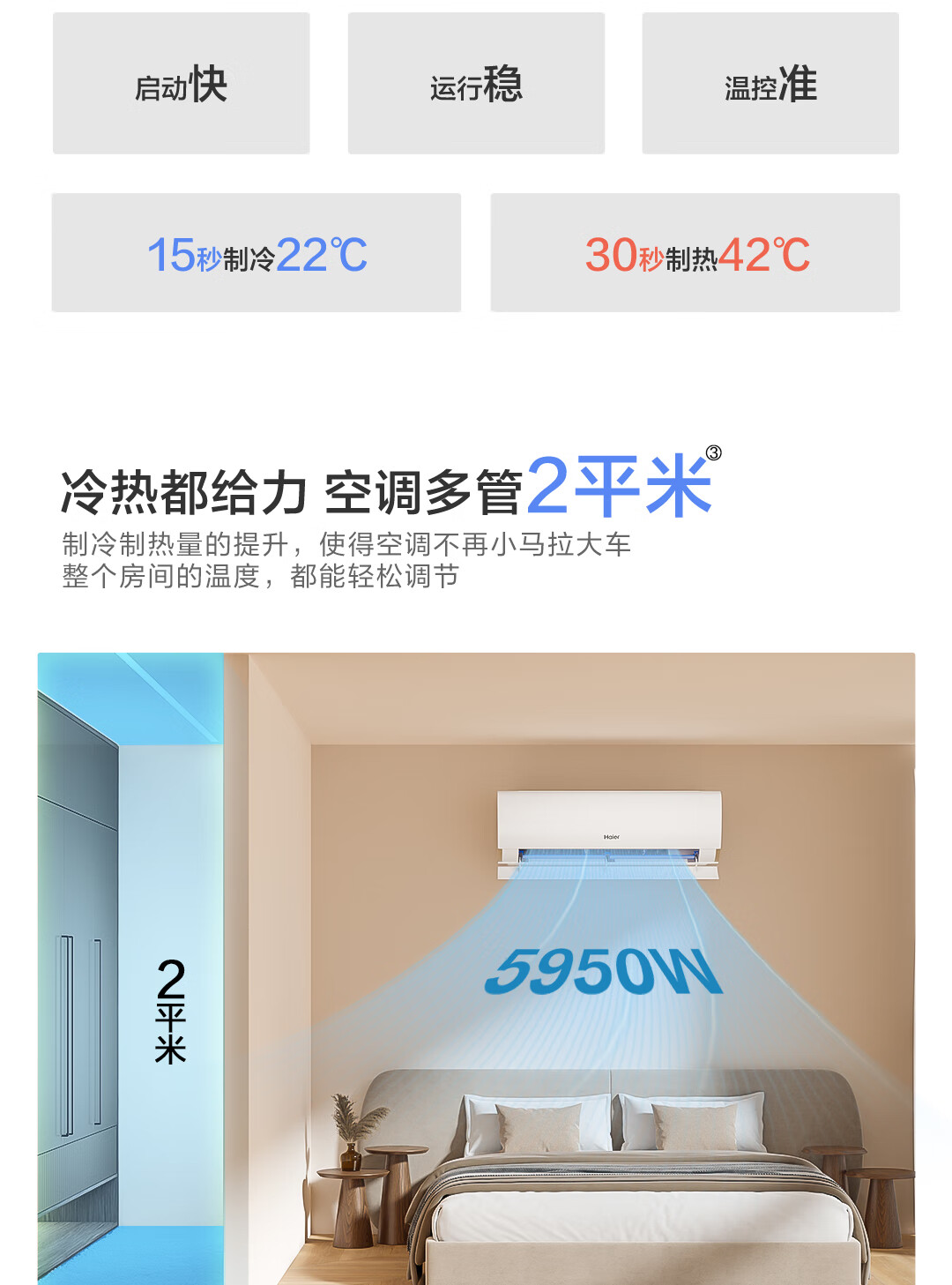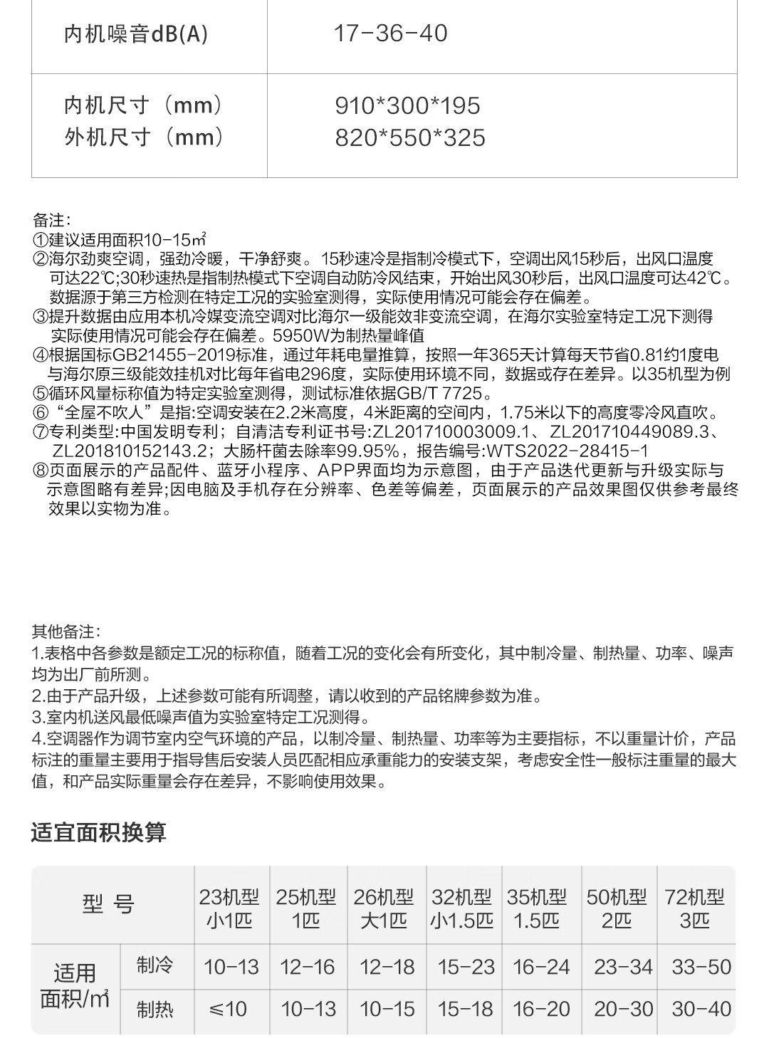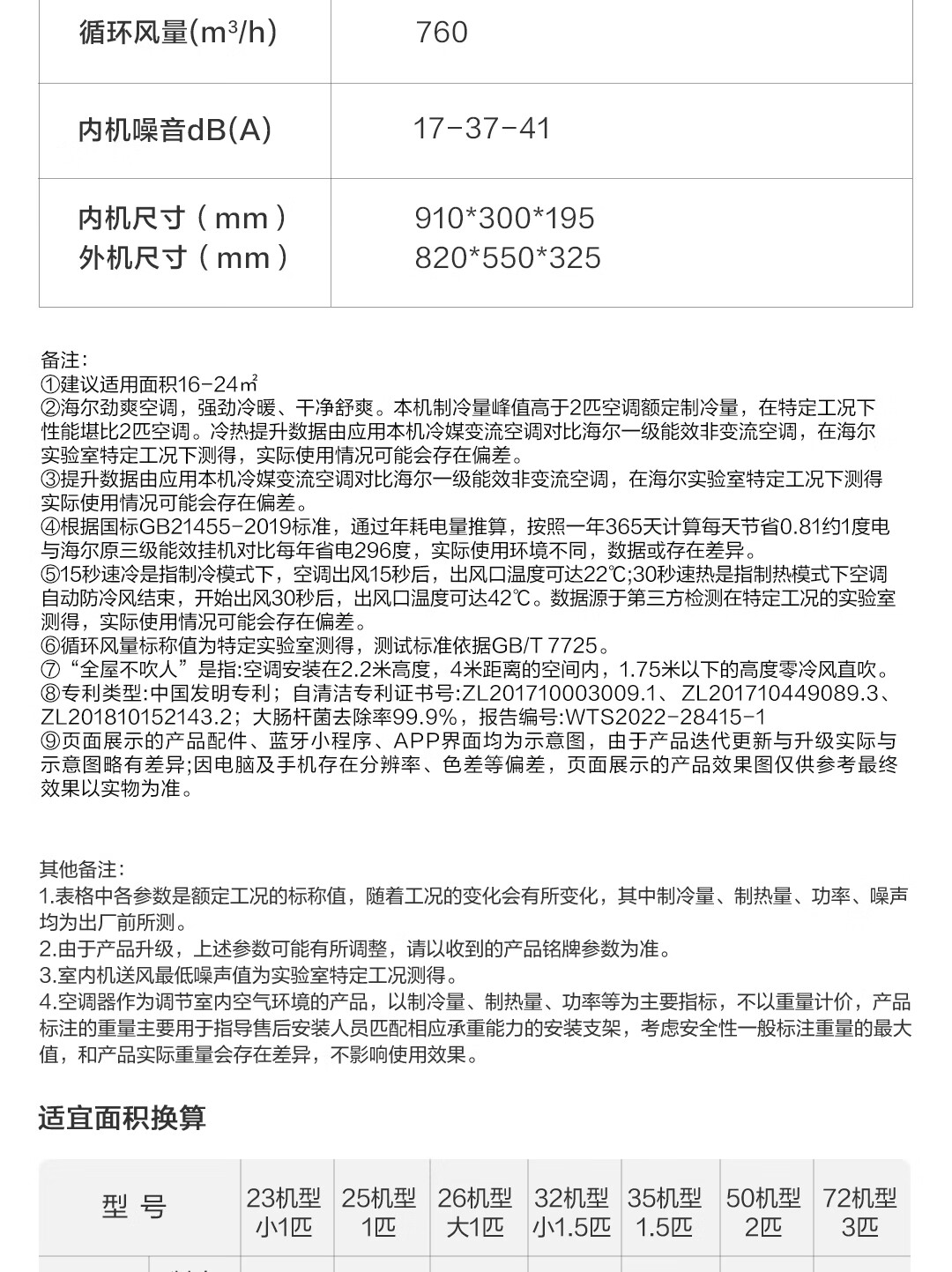 海尔畅享系列新1级 变频防直吹壁挂空调 大1.5匹 一级能效 整机6 自清洁PMV自控温APP远程自控 1.5匹 一级能效 35GW/B5LCA81U1