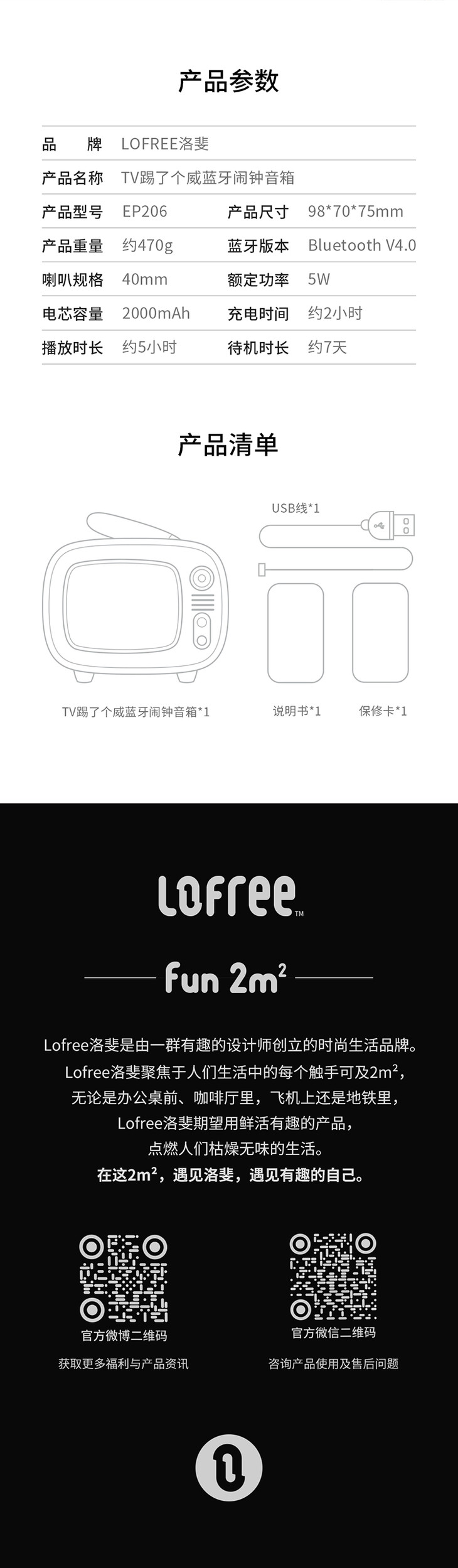 LOFREE/洛斐 TV蓝牙音箱 便携无线蓝牙音箱 录音闹钟音响
