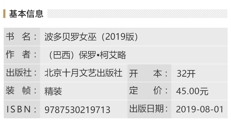 ★小说《波多贝罗女巫》中充满了柯艾略反复描写的主题:灵性、命运、自由,这是一部引人入胜、鼓舞人心的作品。——《贝尔法斯特电讯报》