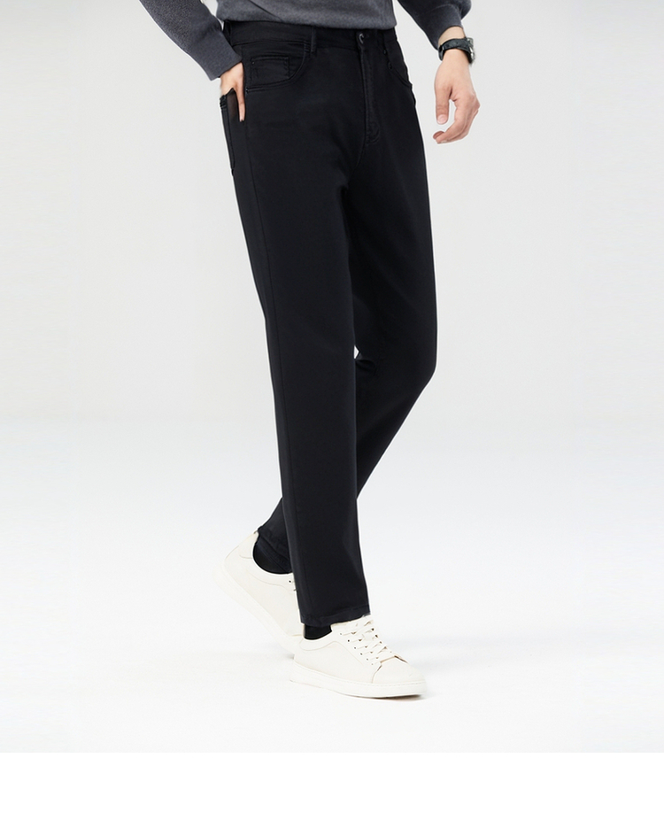 【棉弹舒适】圣得西韩版宽松牛仔裤男秋冬黑色直筒休闲裤