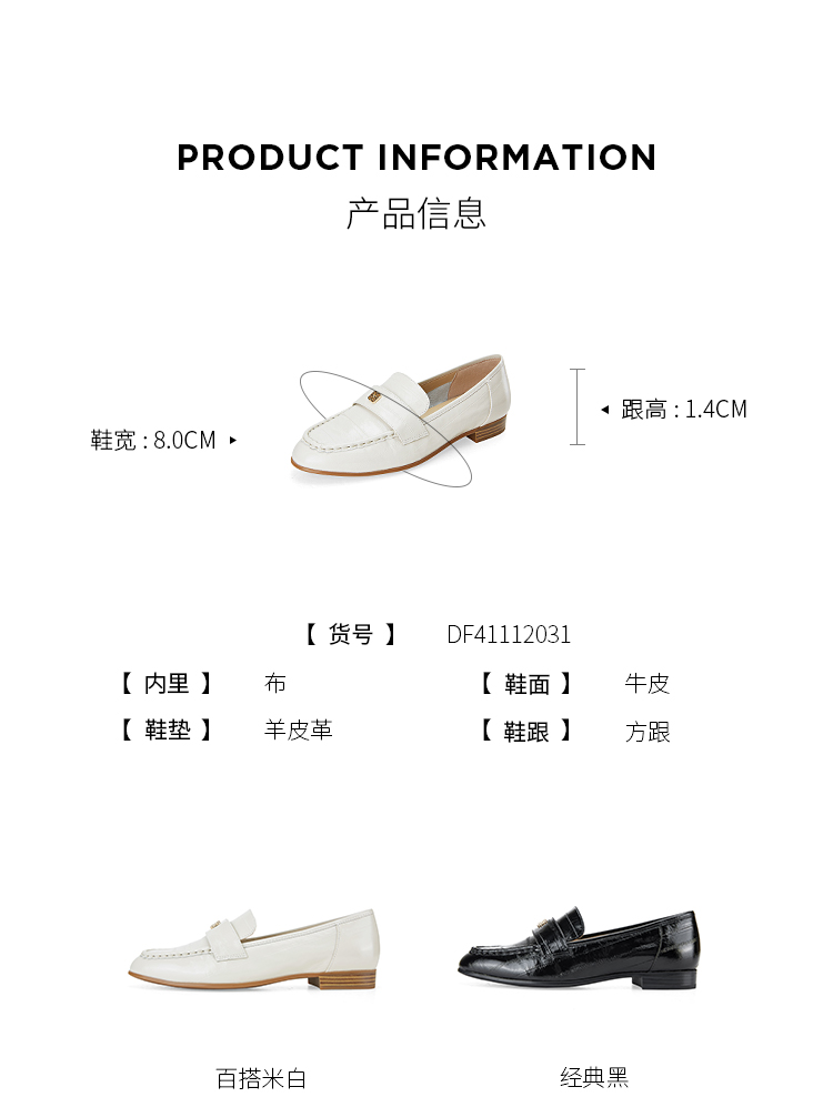 Dfuse迪芙斯2024春季新款质感压纹漆皮平底通勤乐福鞋DF41112031