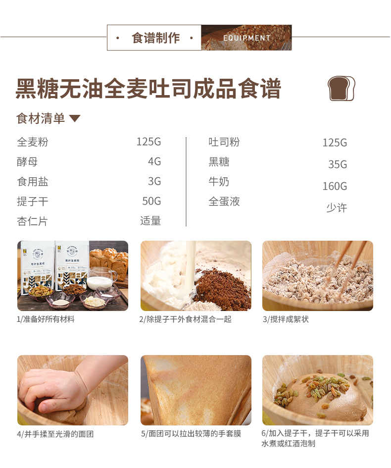 顶焙全麦面粉含麦麸杂粮面包粉高纤硬红麦高筋粉专用烘焙原料1kg