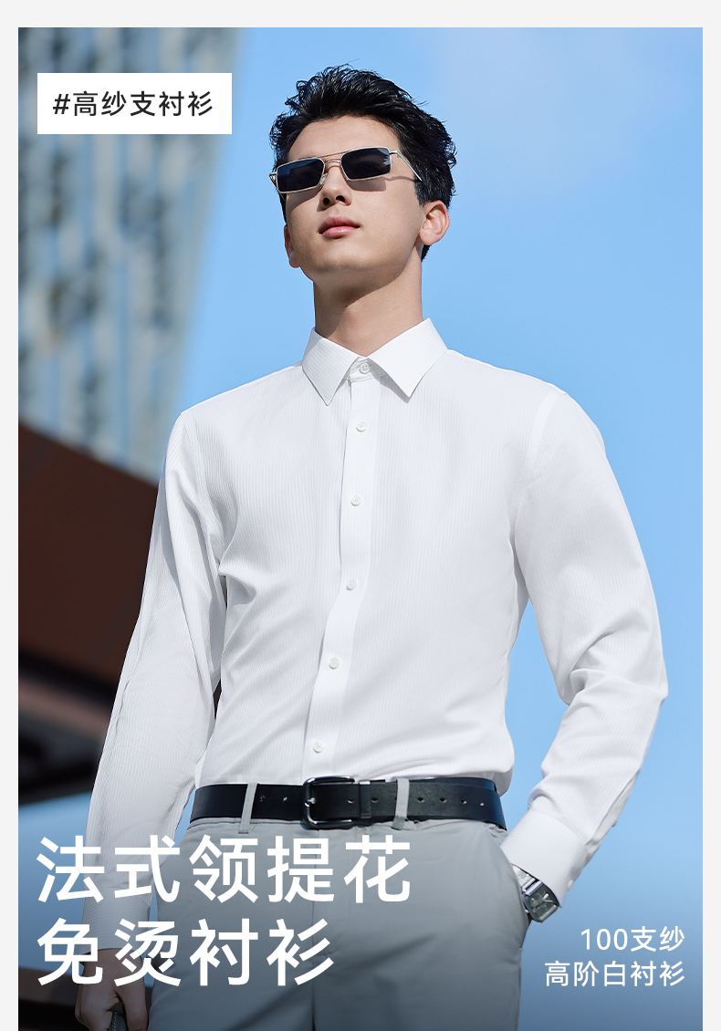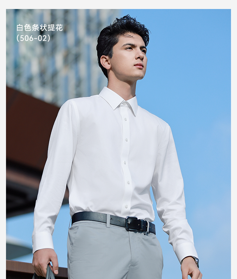 十如仕法式免烫高纱支商务衬衫纯棉提花长袖衬衣-506-01-02