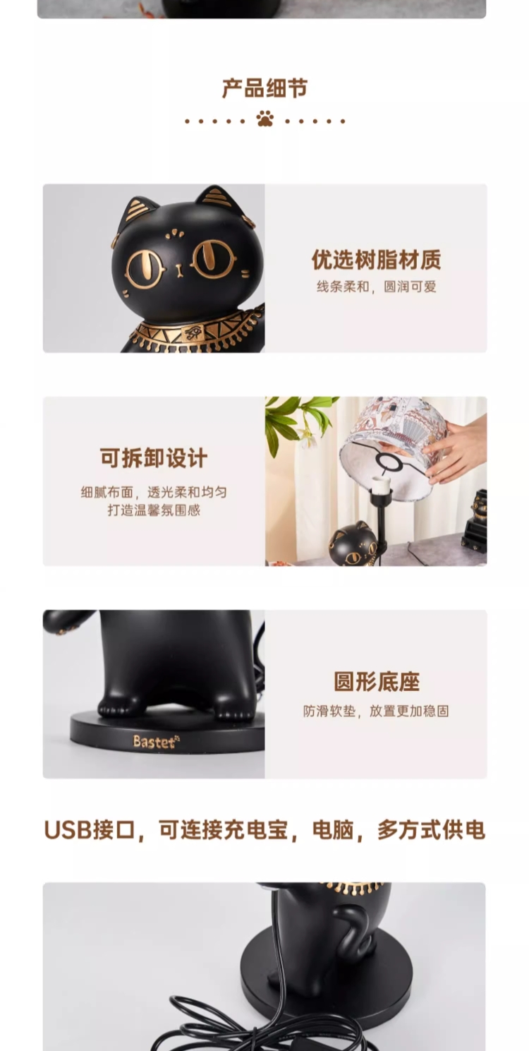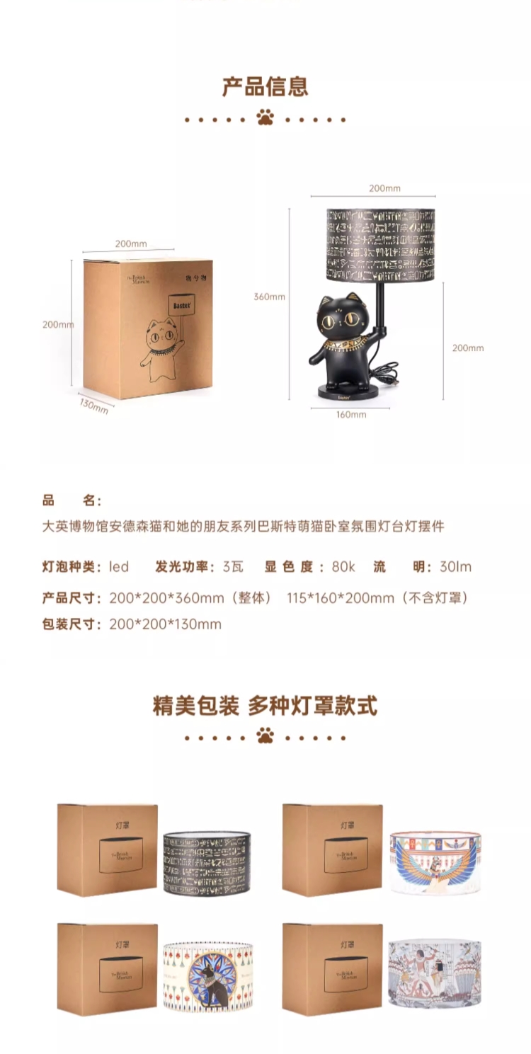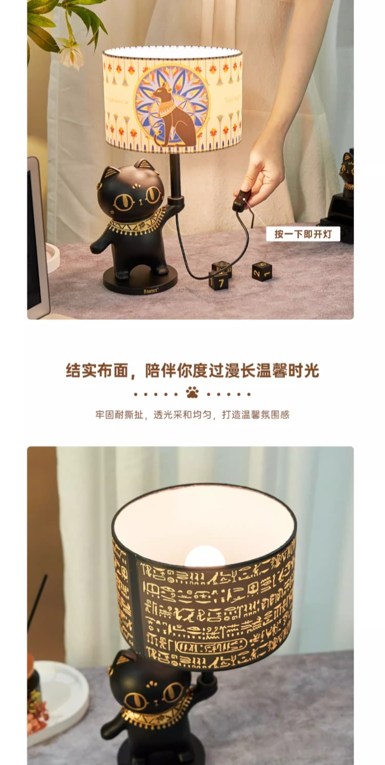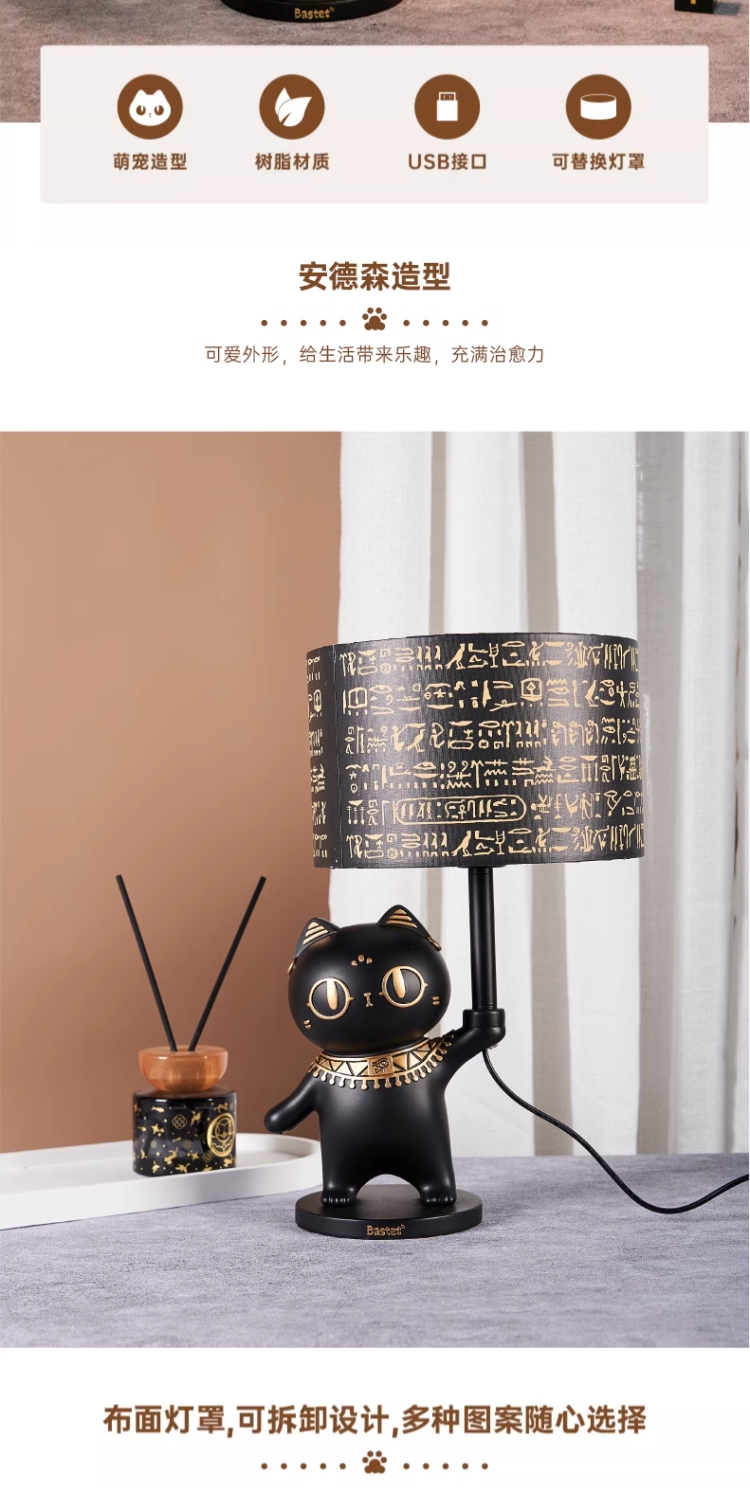 大英博物馆埃及系列 安德森猫罗塞塔石碑萌猫卧室氛围灯台灯摆件