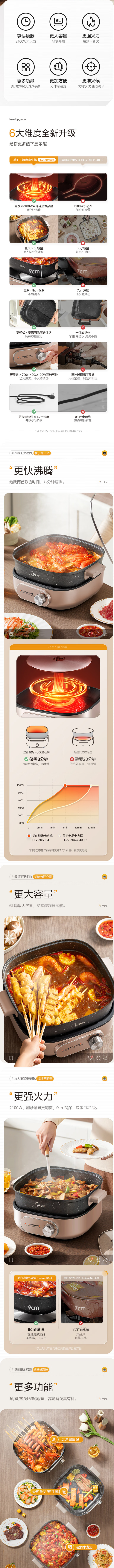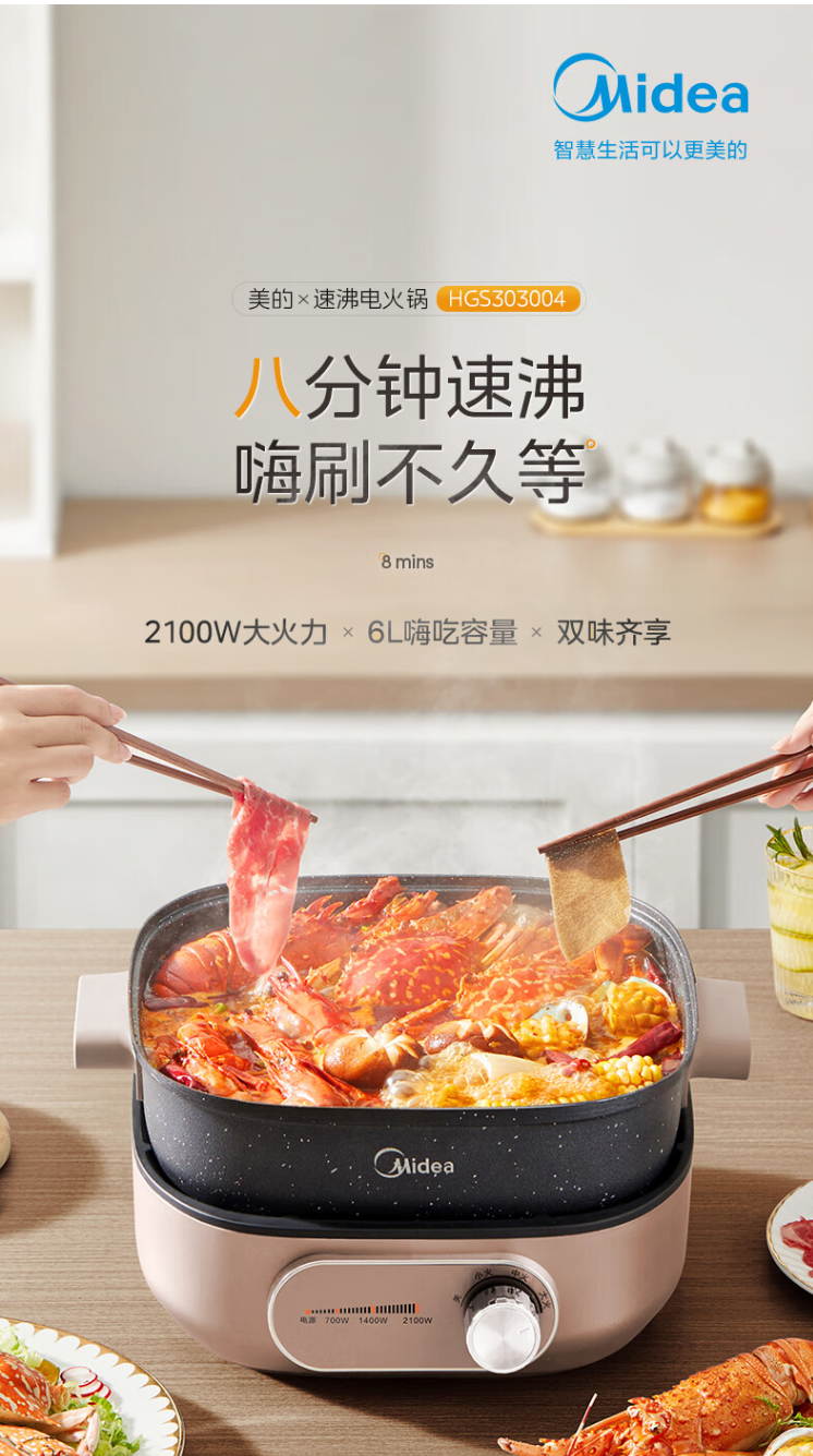 美的(Midea)(510218)电火锅6L大容量分体式家用多功能电热锅多用途锅炖煮涮多用锅 MC-HGS303004【ZMD安心系列】