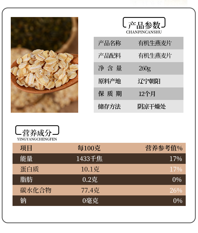 人民有机生燕麦片260g