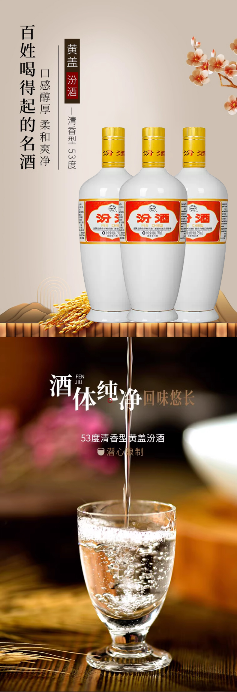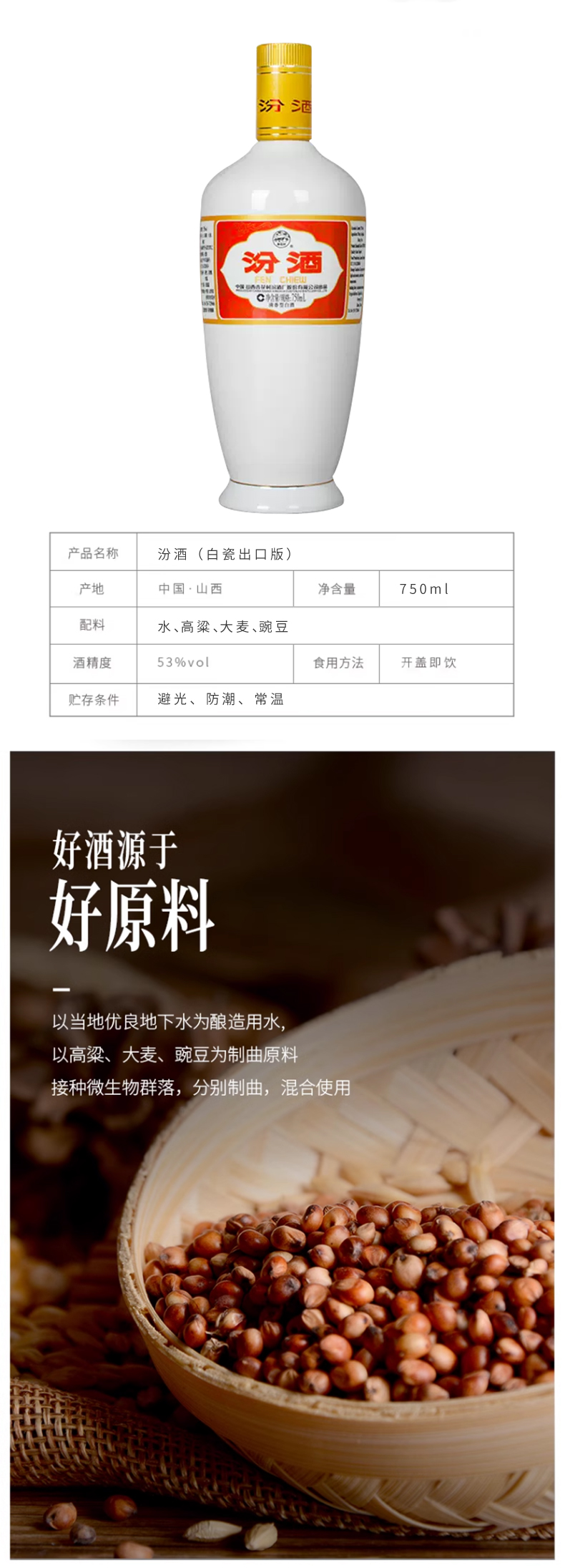 【清香型】汾酒750ml 53度【白瓷出口版】