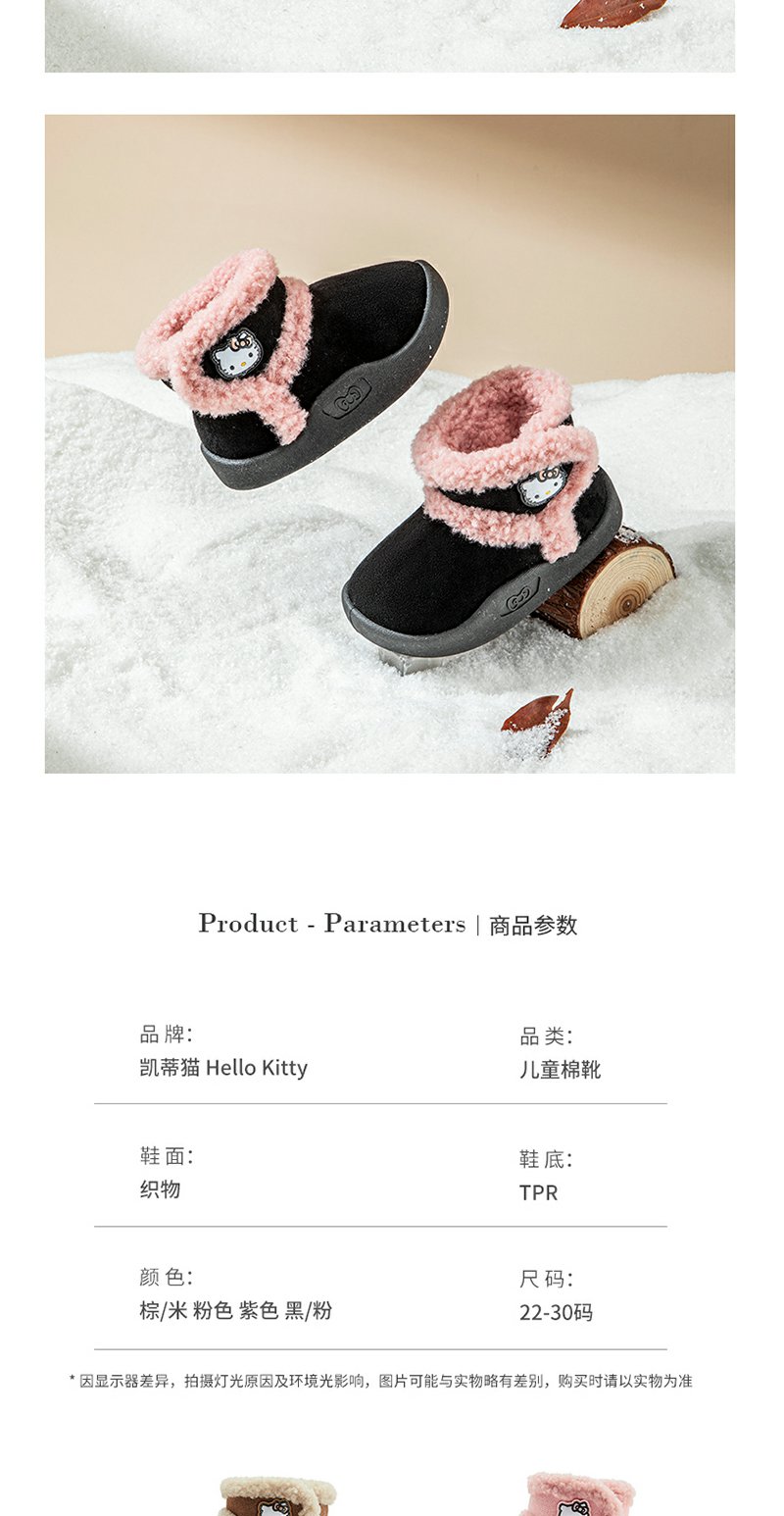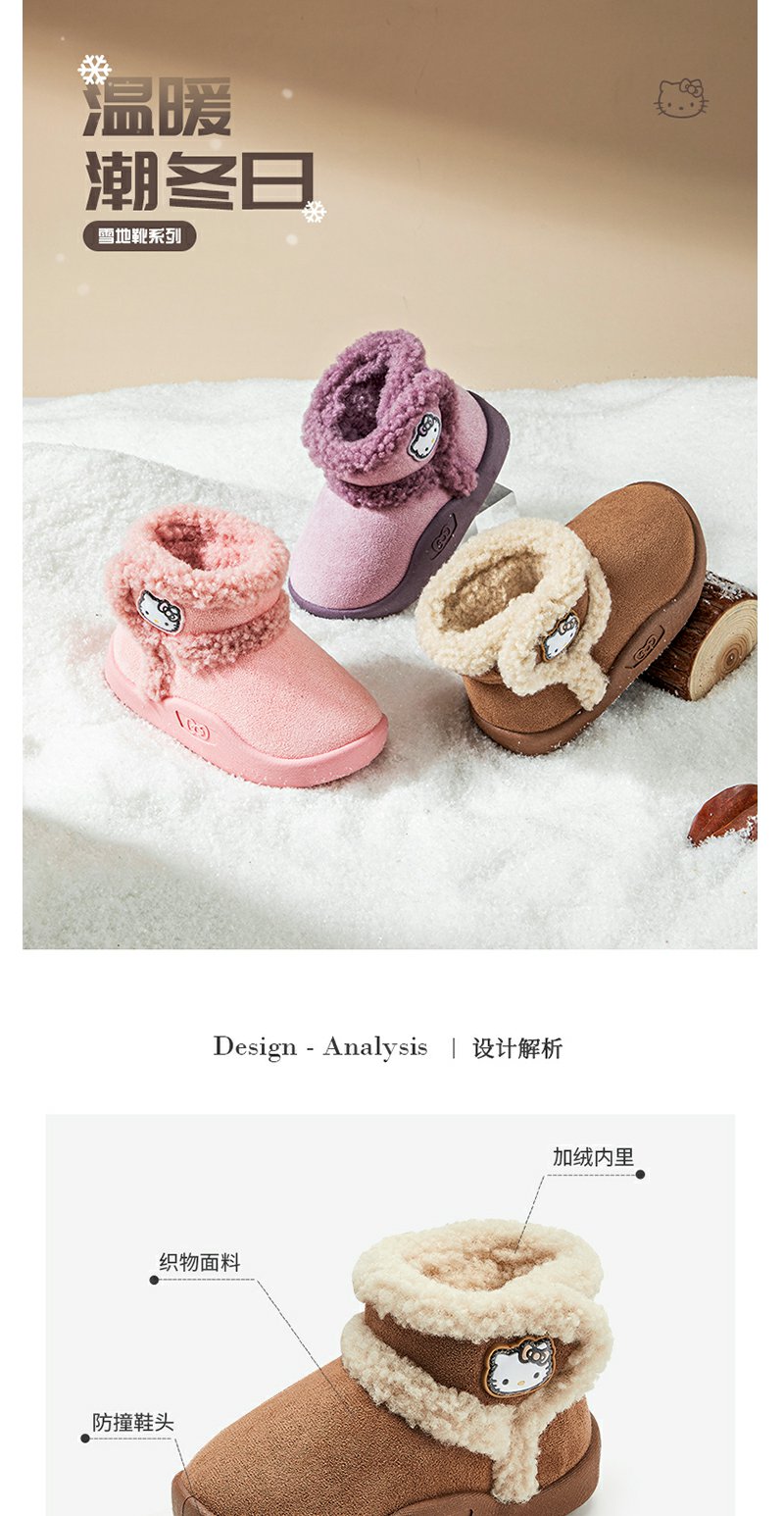 HelloKitty童鞋儿童棉鞋2023新款女童鞋加绒宝宝鞋子软底小童冬鞋