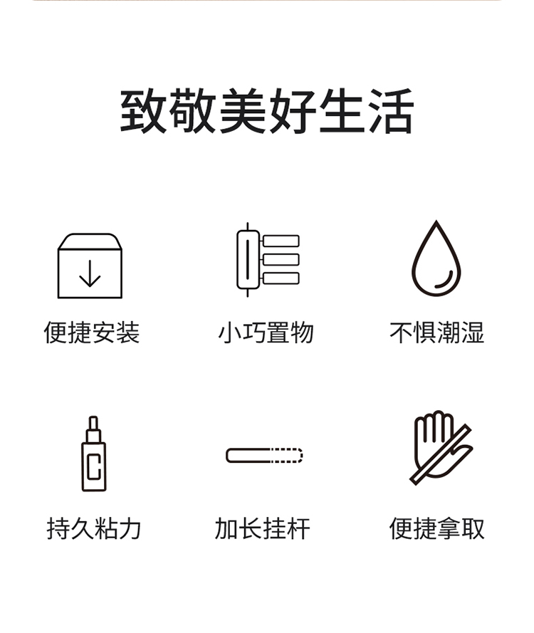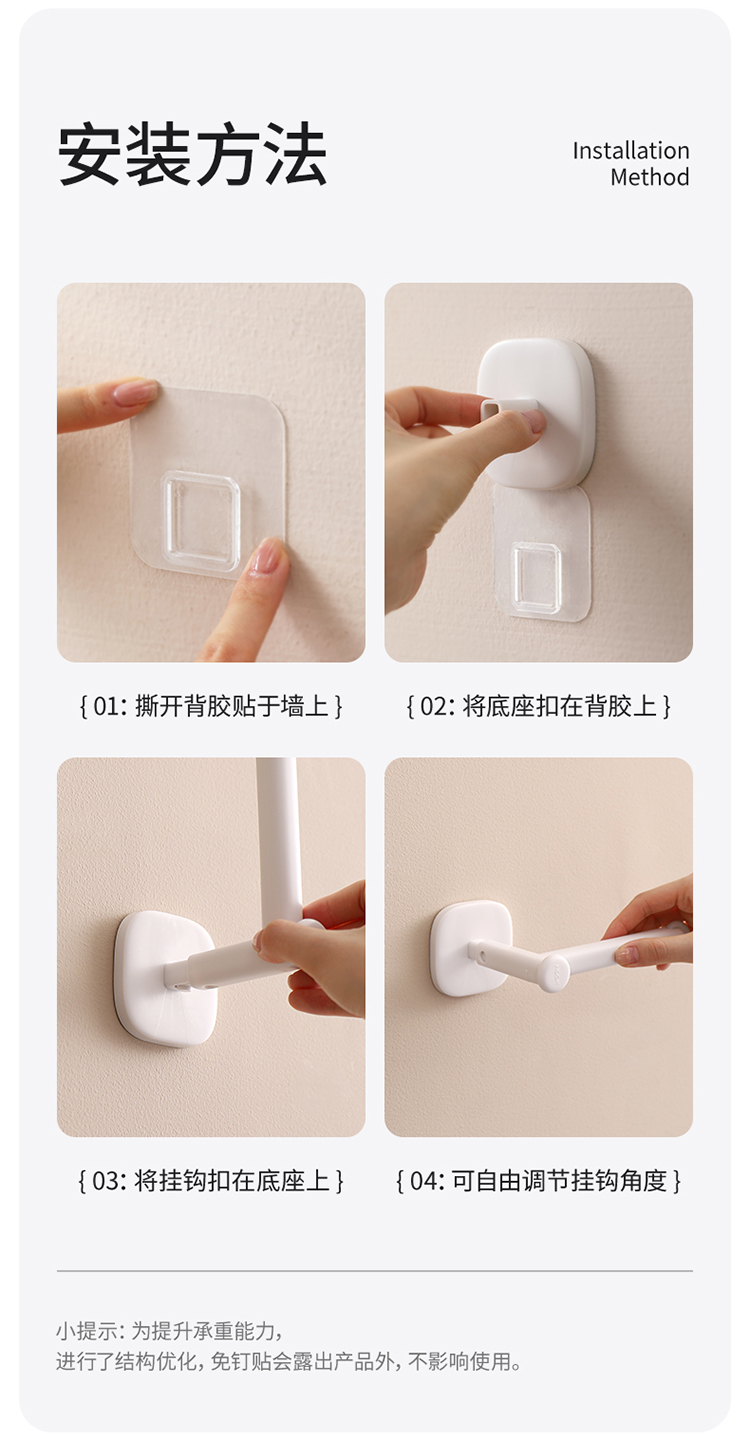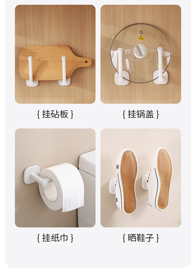 FaSoLa 免打孔挂钩粘胶壁挂衣架厨房浴室卫生间无痕贴粘钩