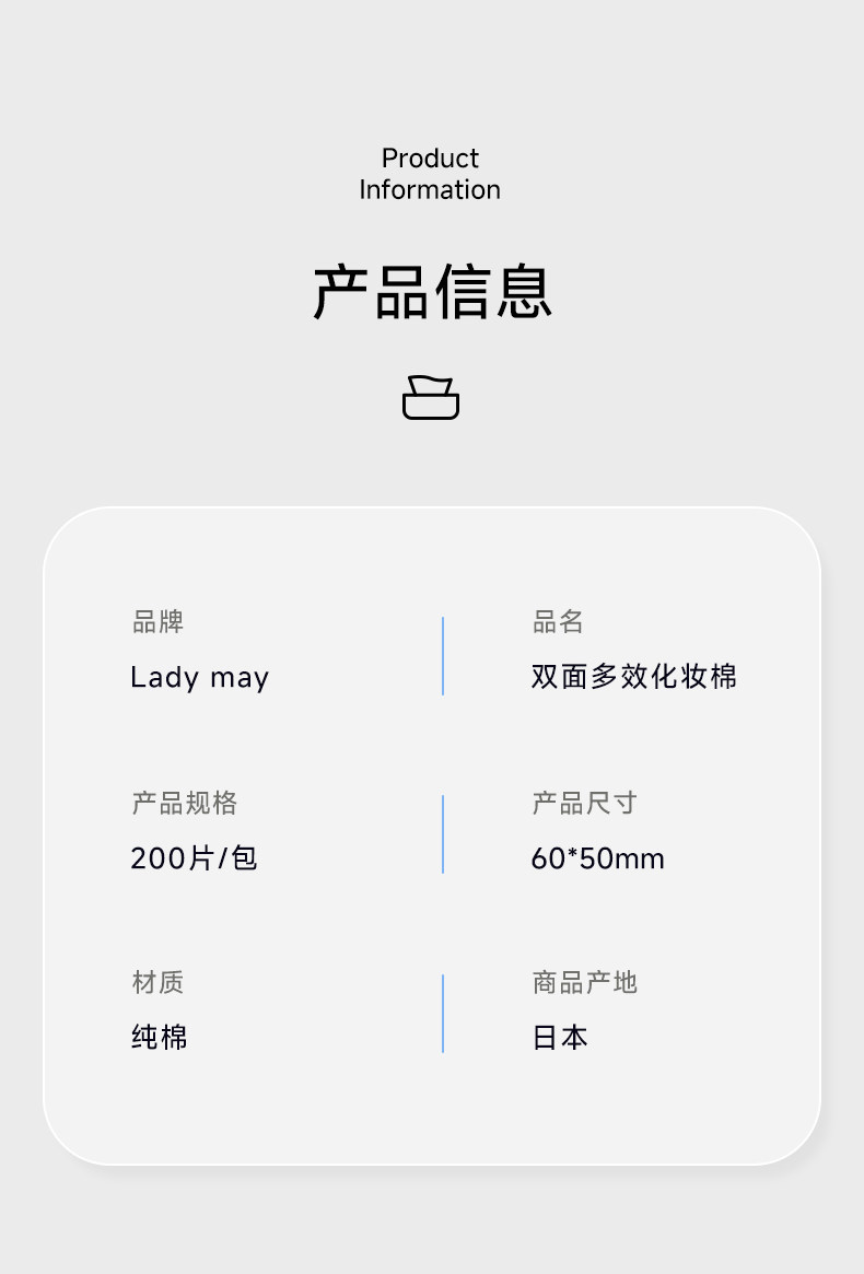 Ladymay 双面多效化妆棉200片( 50mmx80mm)