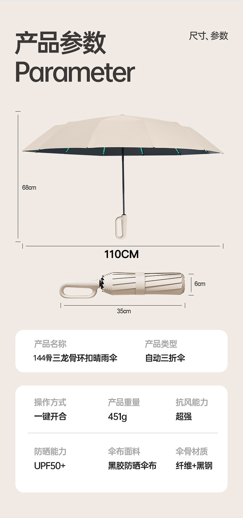 三龙骨/双龙骨环扣晴雨两用伞 防雨防风防晒 环扣设计 随处可挂防丢失 72小时发货