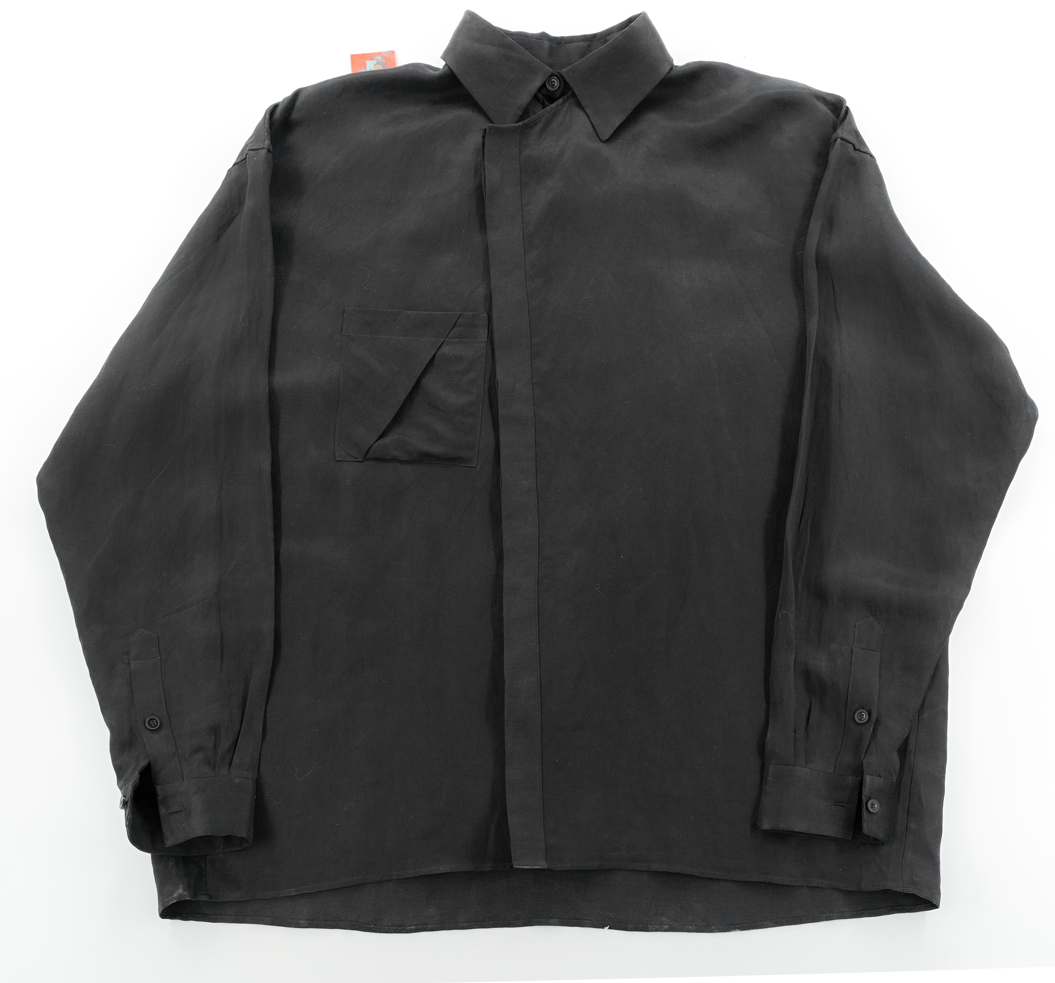 亚麻缎不对称黑衬衣(无别针款)-十点睡觉X张宇飞