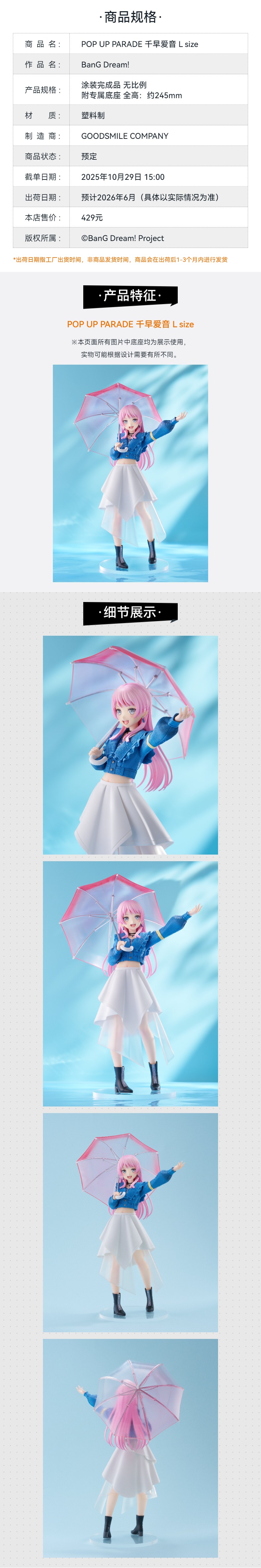 【GSC预售定金】POP UP PARADE 千早爱音 L size BanG Dream!