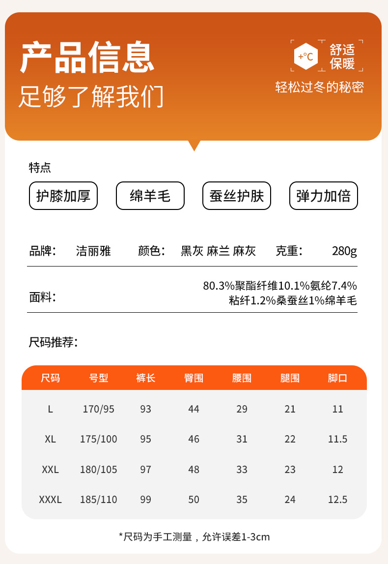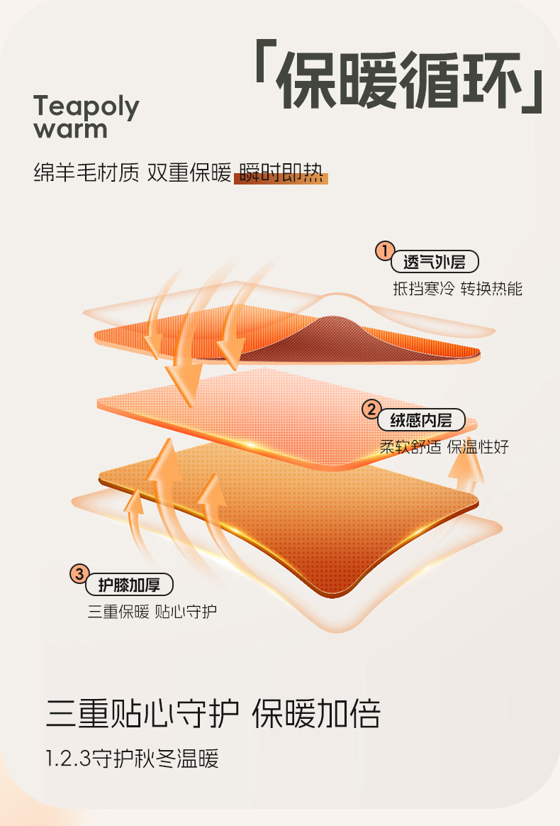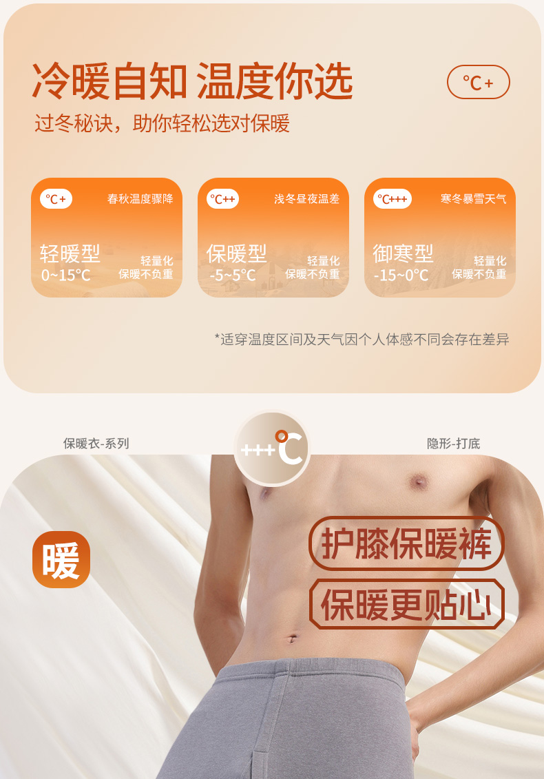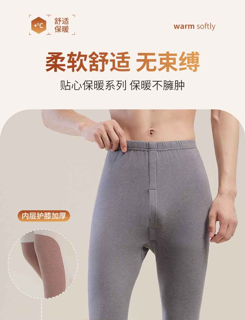 【秋冬新品】洁丽雅男士护膝保暖长裤三重保暖舒适亲肤高弹力打底裤