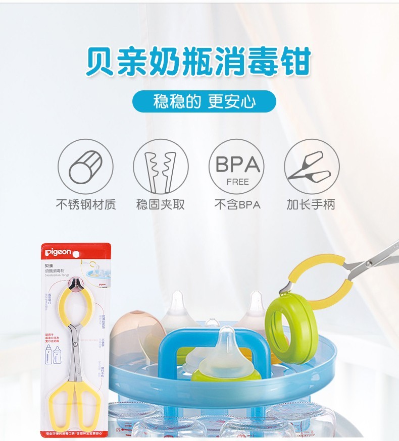 贝亲奶瓶夹 新生婴儿奶瓶奶嘴不锈钢消毒钳 宝宝防滑防烫夹子