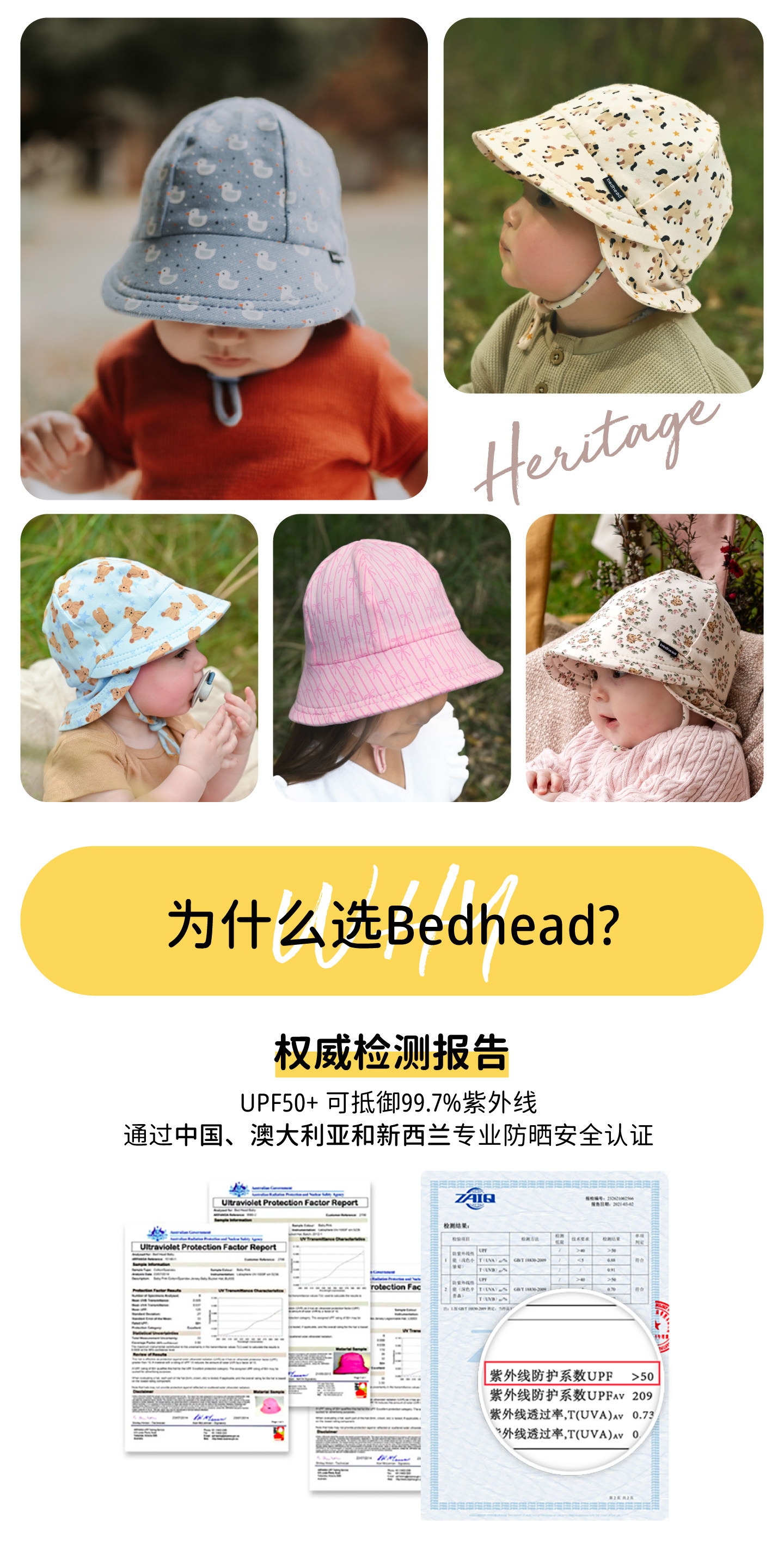 澳洲Bedhead 护脖/渔夫帽 宝宝弹力棉防晒帽UPF50+透气男女童遮阳帽