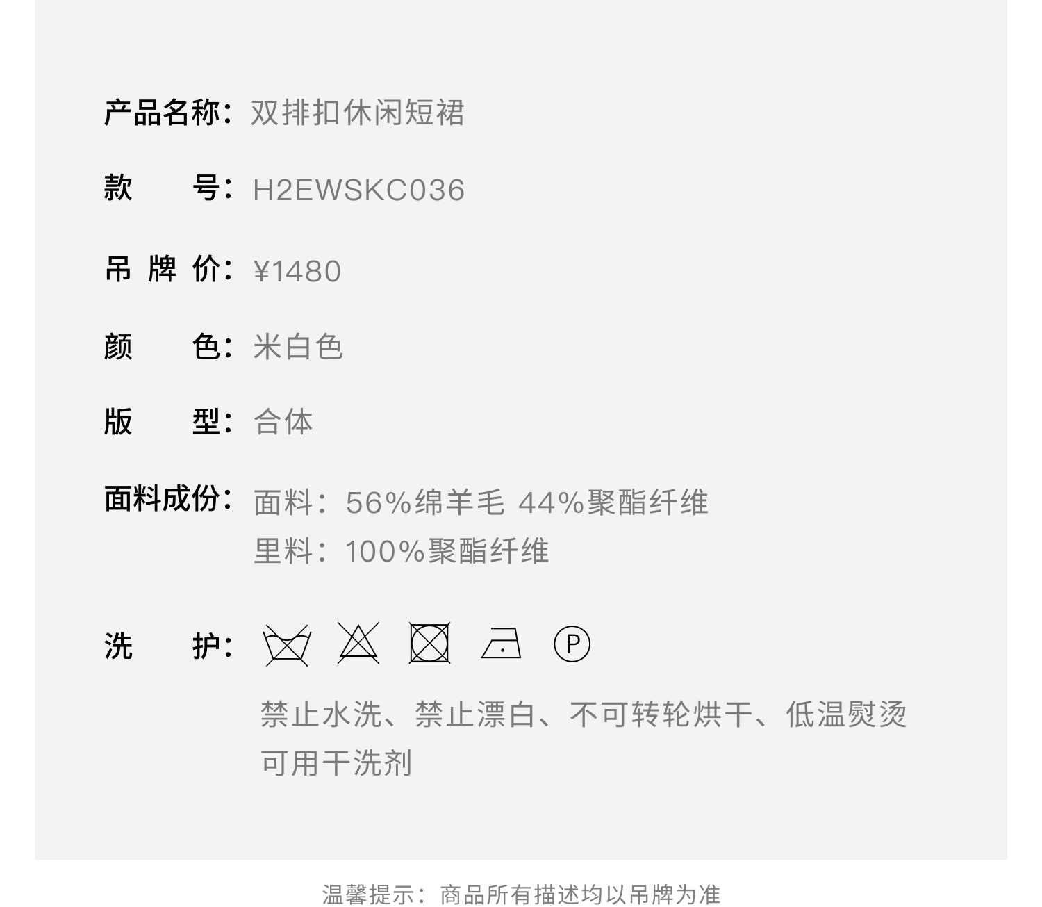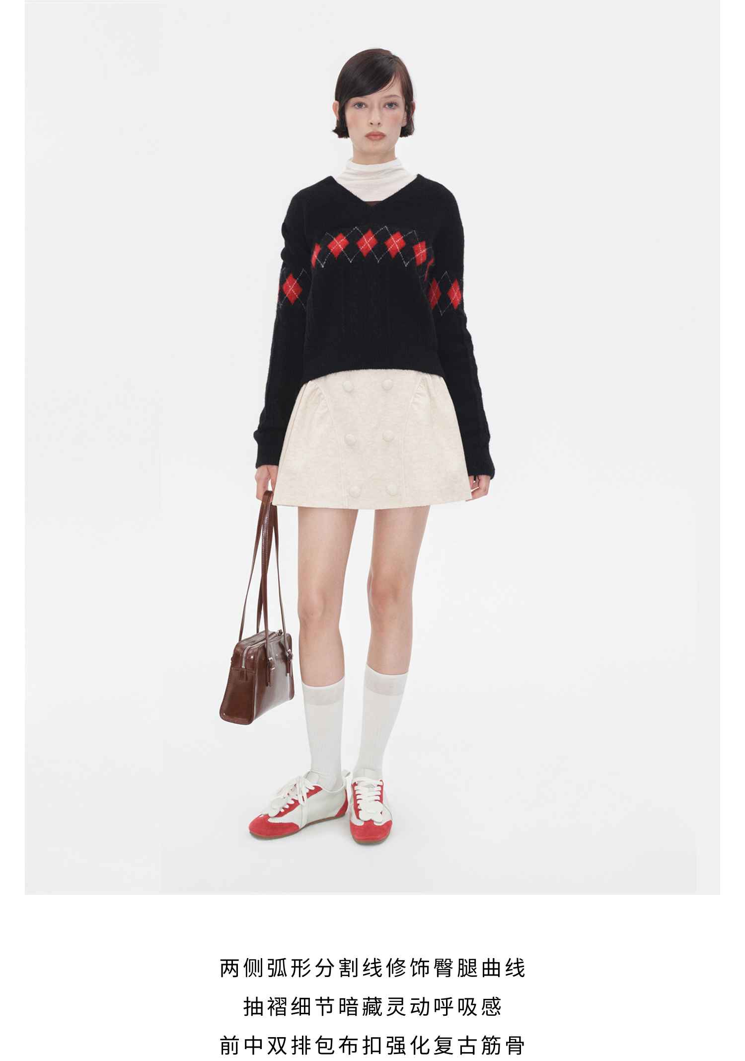 HERLIAN 2025秋冬新品双排扣休闲短裙
