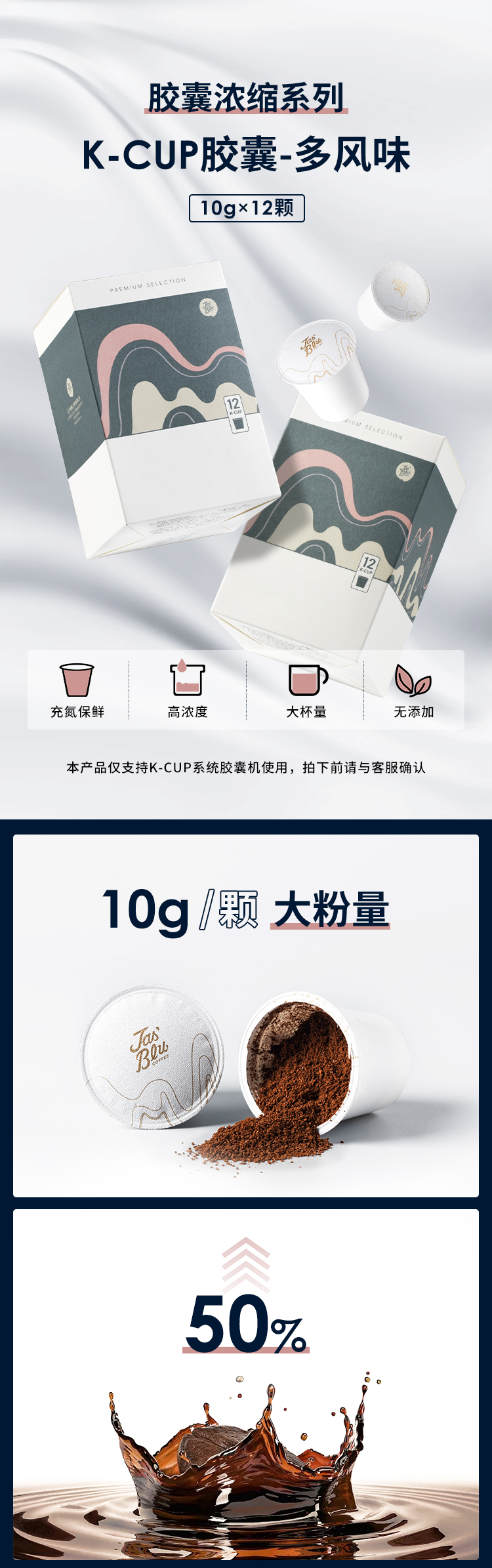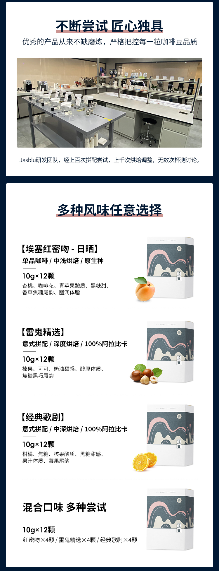 Jasblu 胶囊咖啡k cup 意式拼配咖啡粉拿铁美式咖啡充氮保鲜胶囊 12个