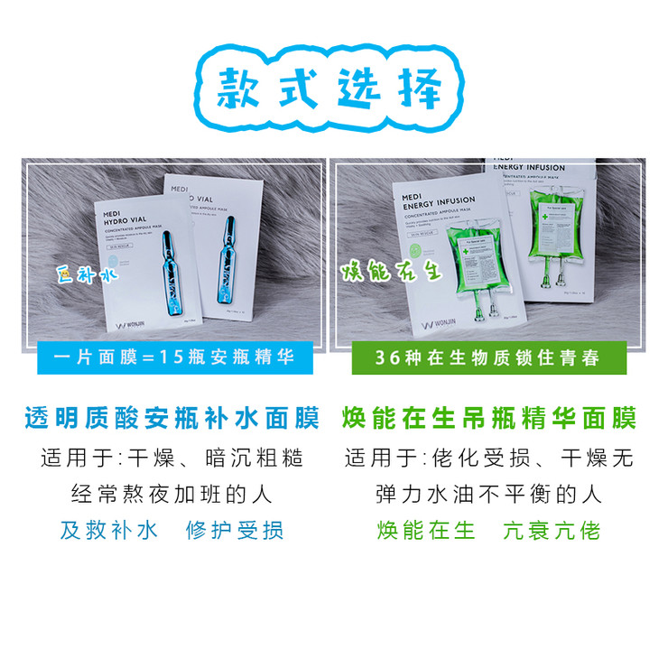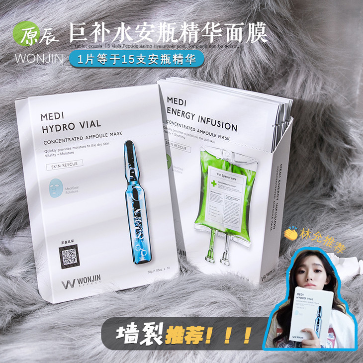 WONJIN EFFECT 原辰保湿补水深层滋养三部曲面膜韩国孕妇可用林允推荐 原辰透明质酸安瓶补水面膜10片/盒/再生吊瓶安瓶面膜绿色补水修复10片/盒