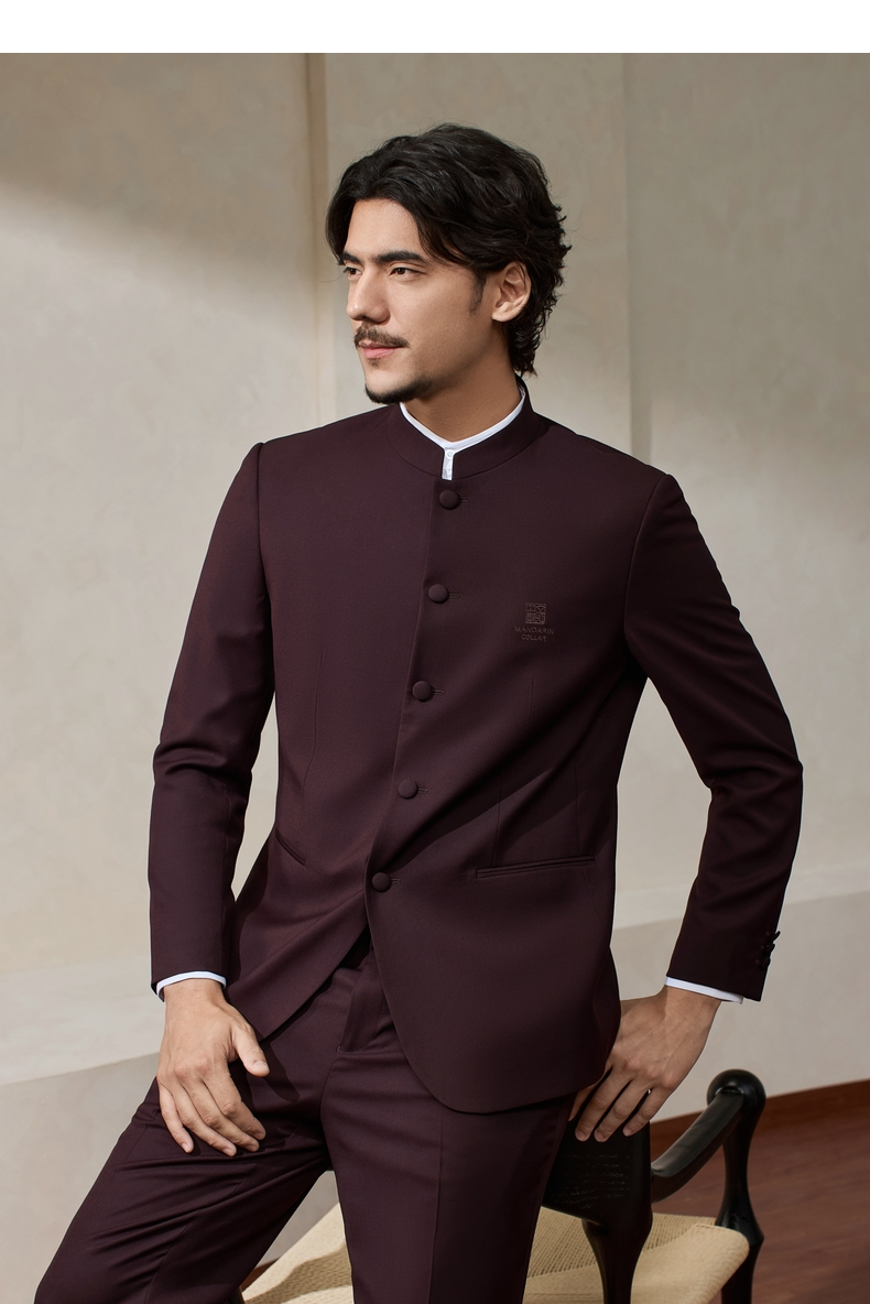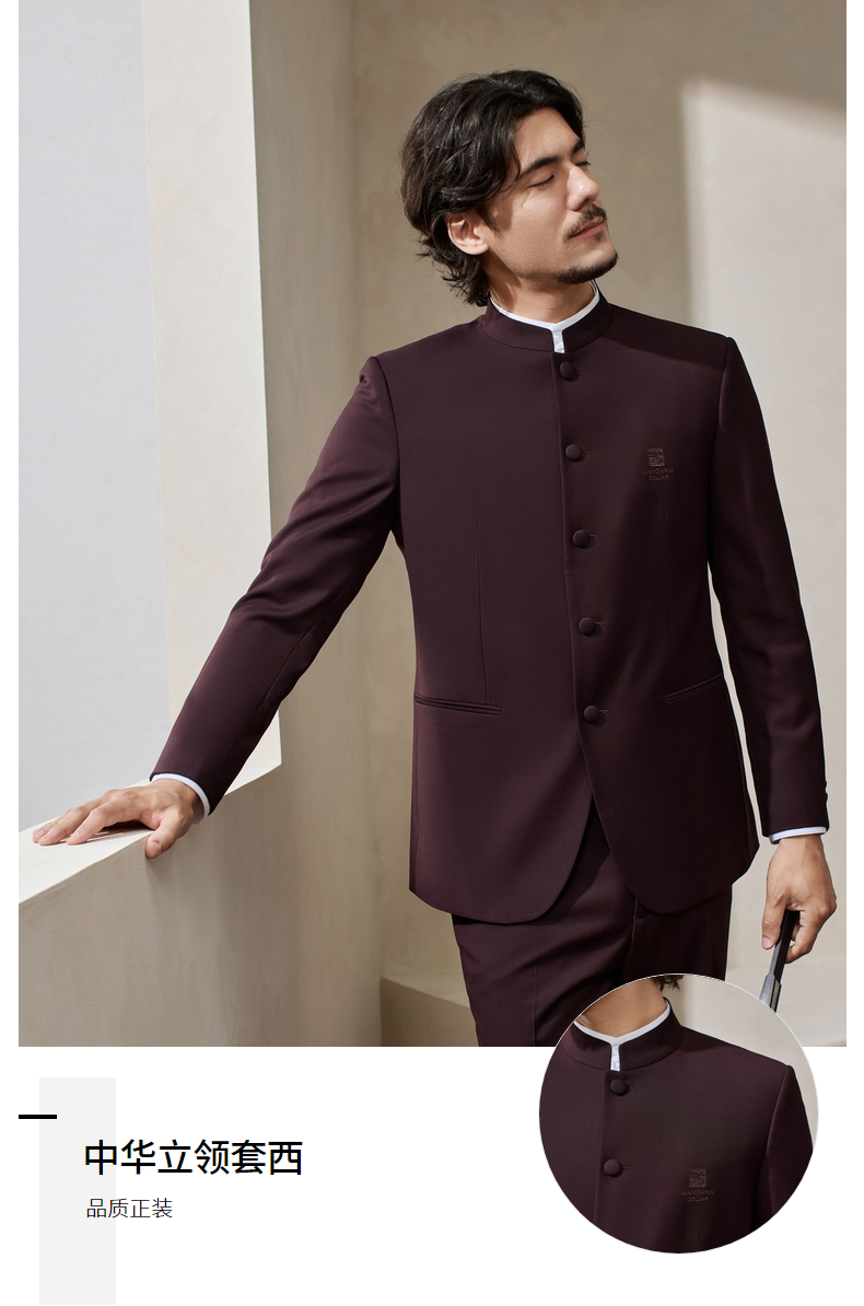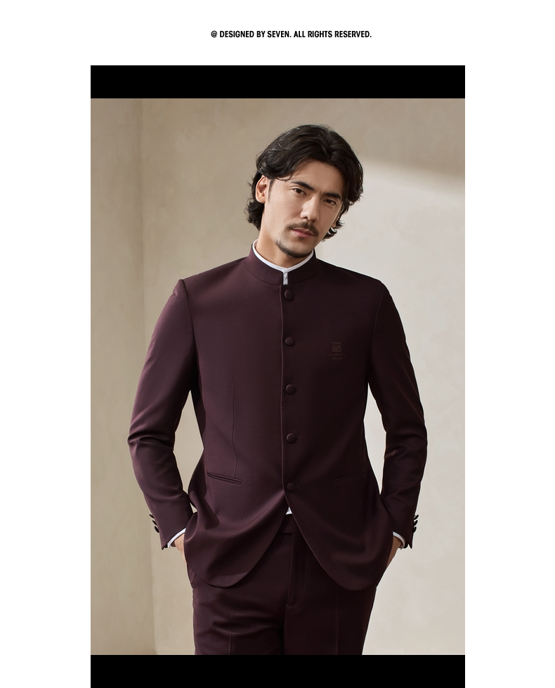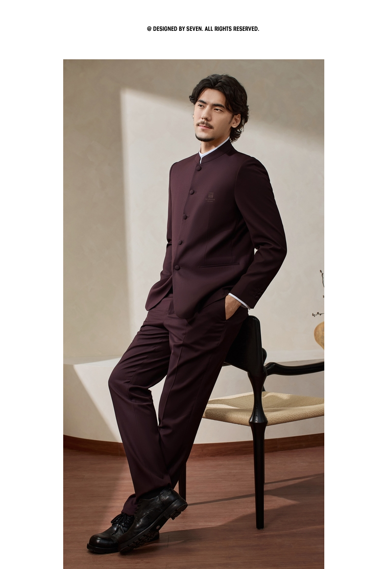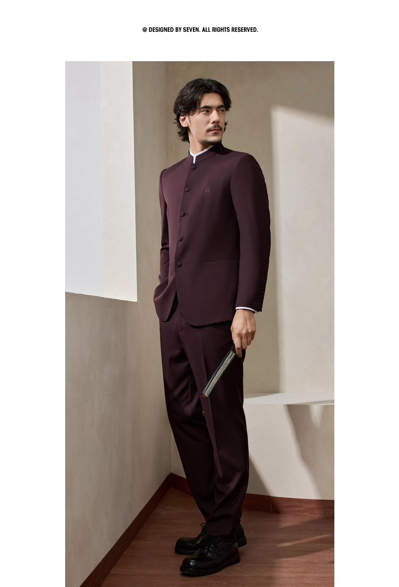 【婚礼季/中华立领】柒牌男装2025秋冬立领绅士商务混纺犀牛褶西服套装129C70340