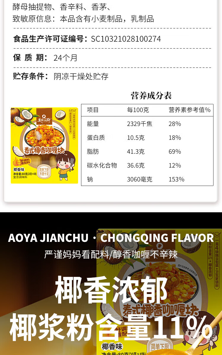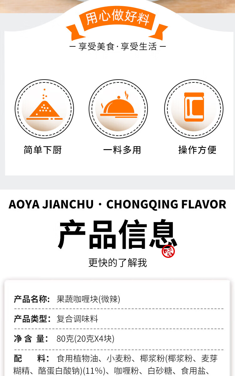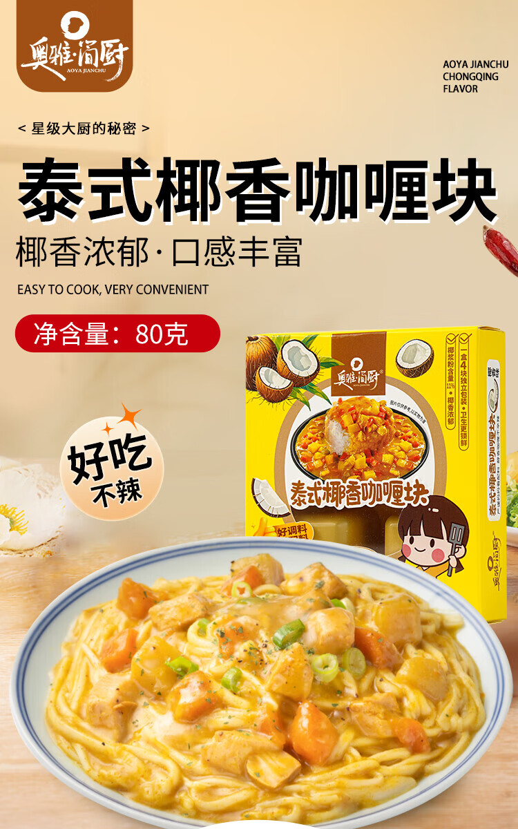 奥雅简厨 泰式椰香咖喱块80g/盒