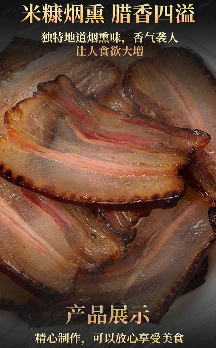 【品名】宝湘坊正宗湖南烟熏偏肥腊肉2袋