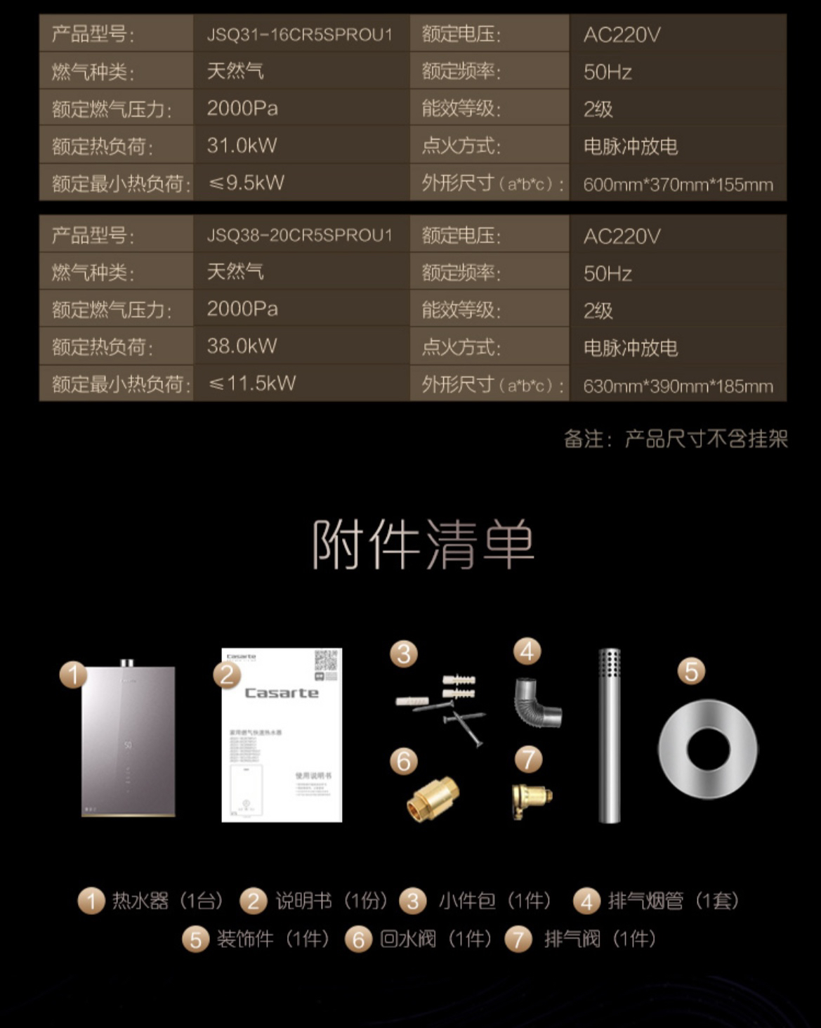 卡萨帝(Casarte)热水器 JSQ38-20CR5SPROU1