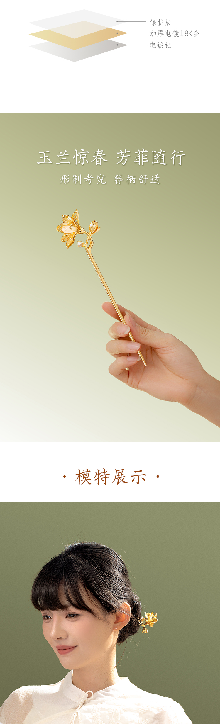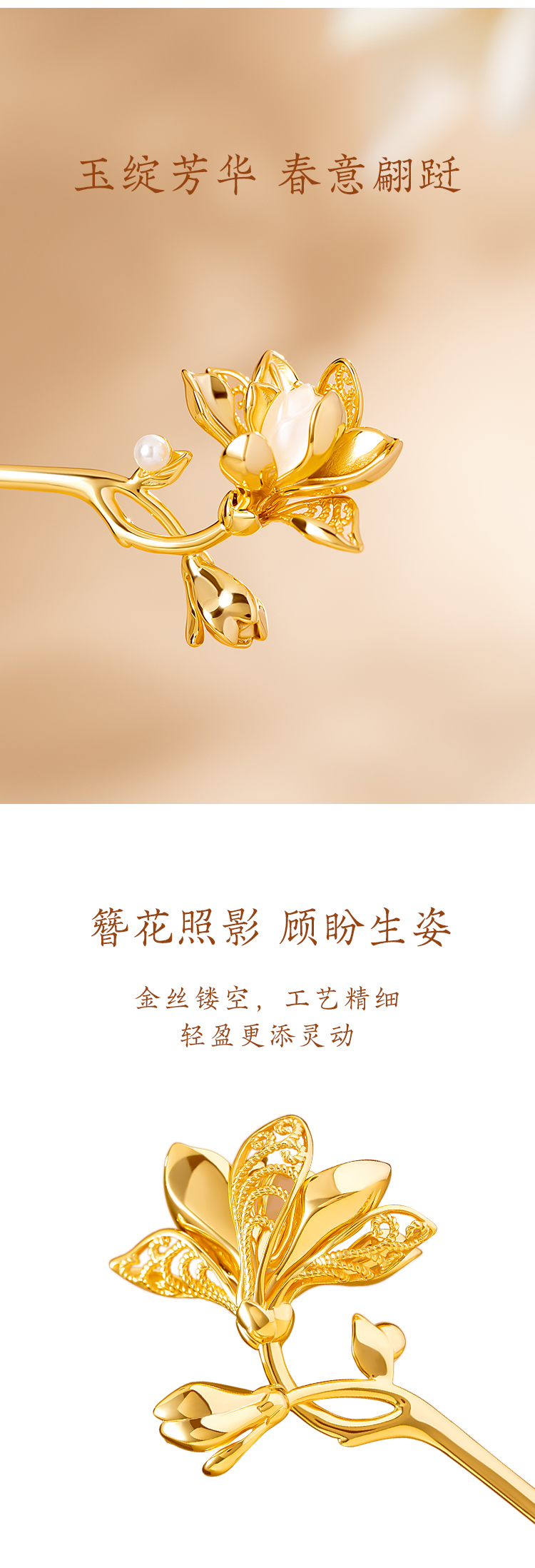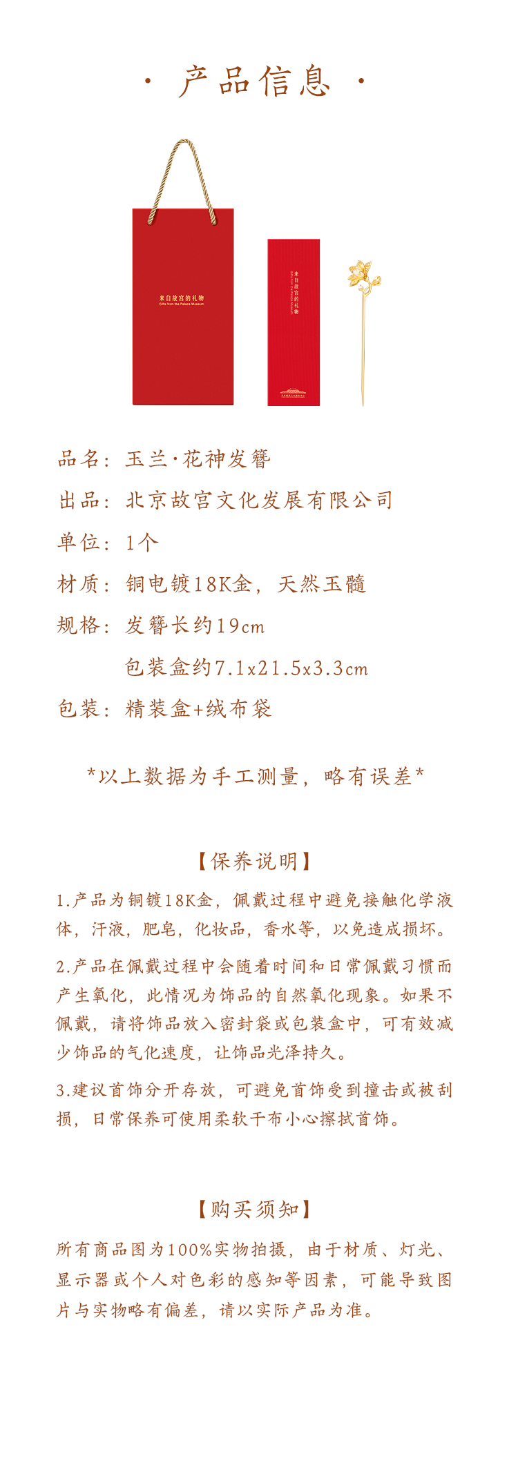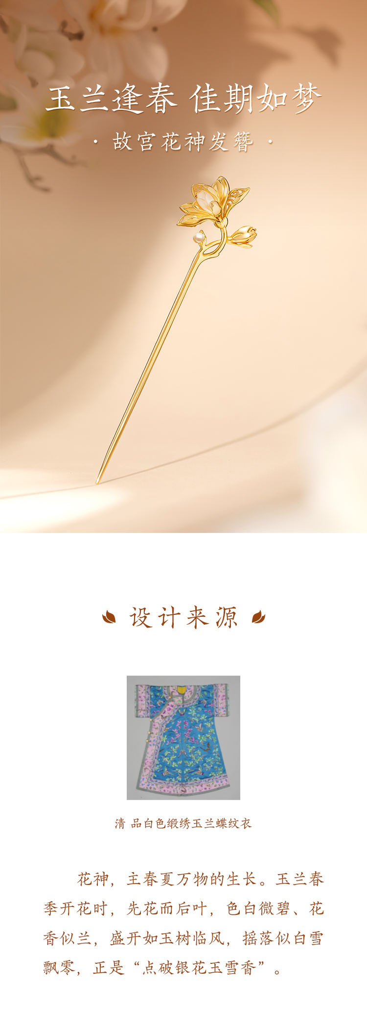 【故宫饰品】玉兰花神发簪新中式盘发簪子古风博物馆文创生日礼物女