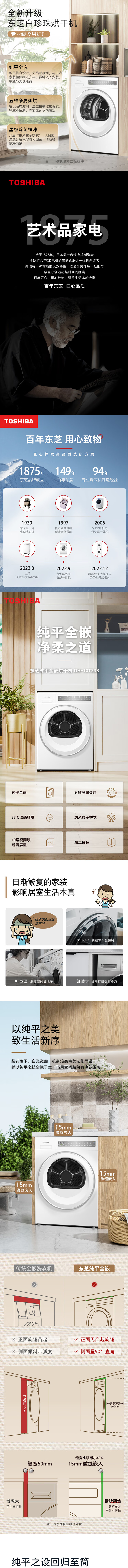 东芝(TOSHIBA)( 252118) DH-10T23B热泵式干衣机家用 白珍珠变频烘干机 10公斤大容量 纯平全嵌 UV除菌 清新祛味