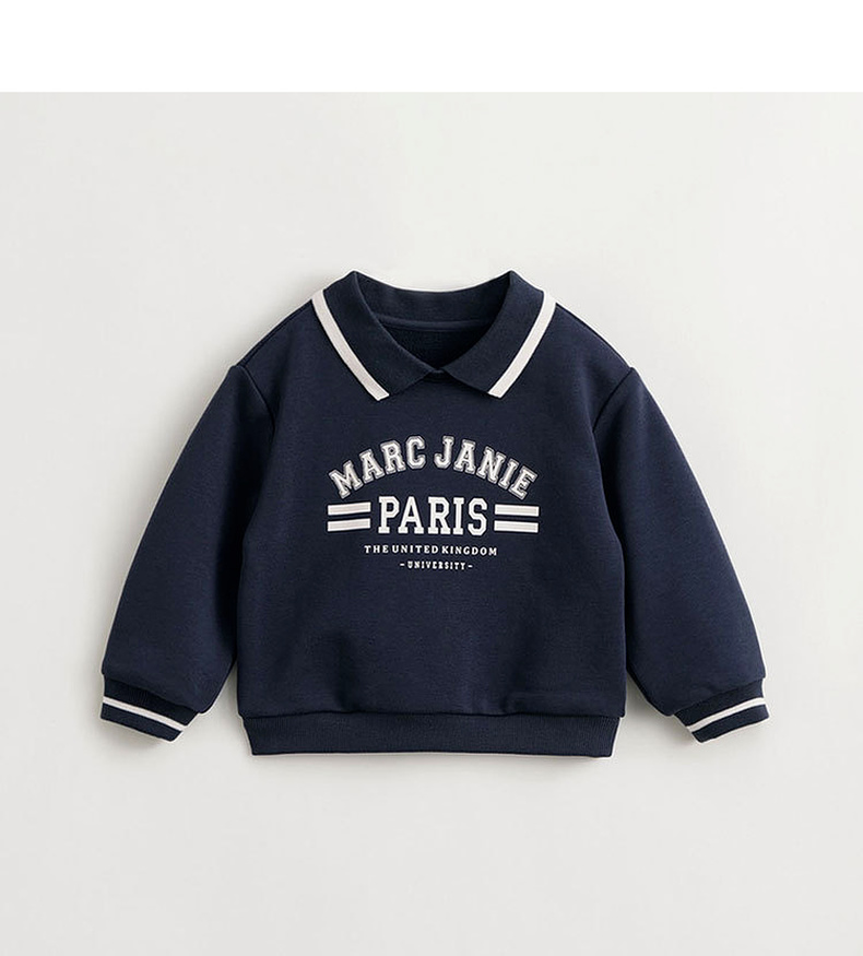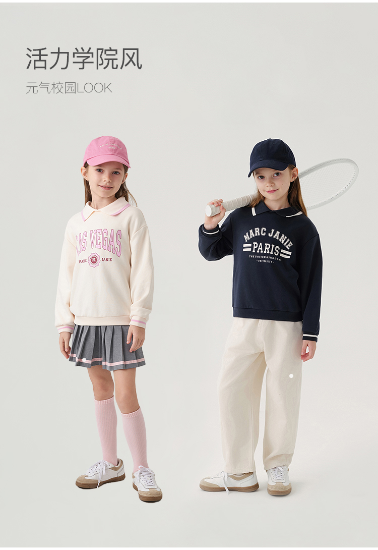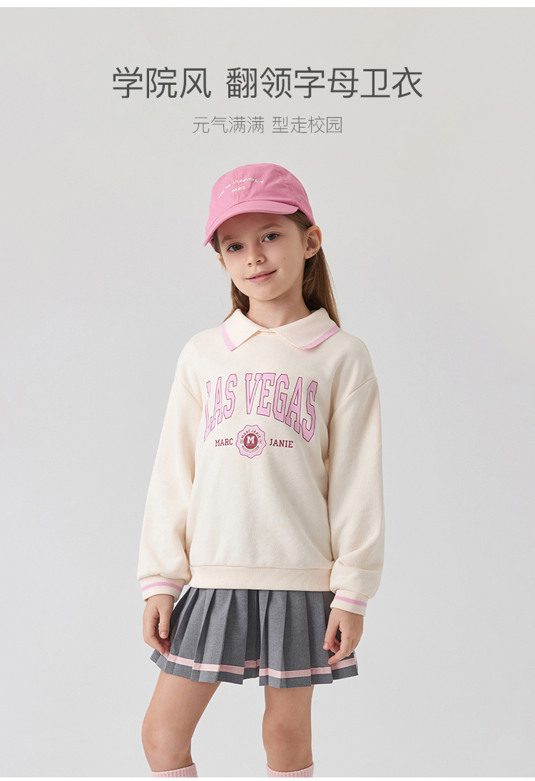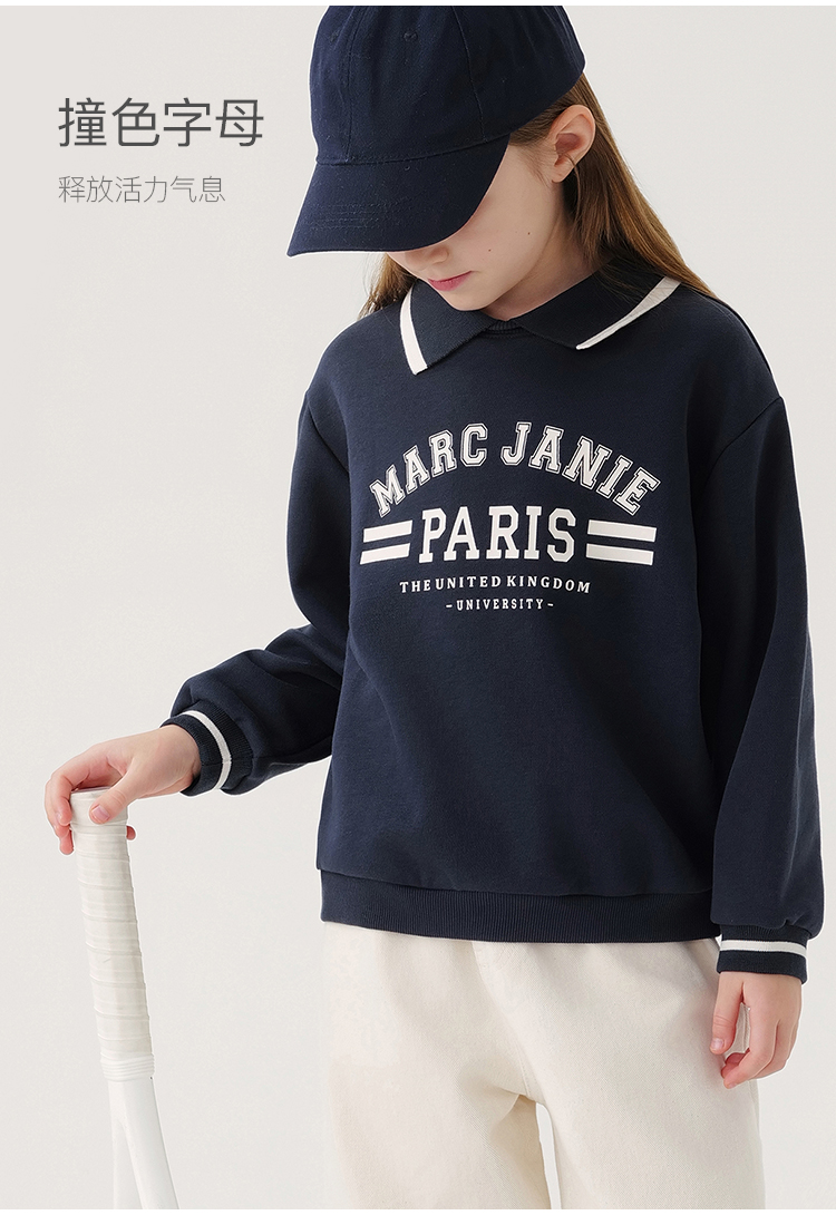 马克珍妮女童超舒棉元气学院翻领字母卫衣儿童上衣春装新款240068