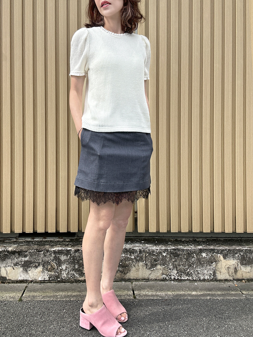 TYNVIE 拼接蕾丝裙摆短裙