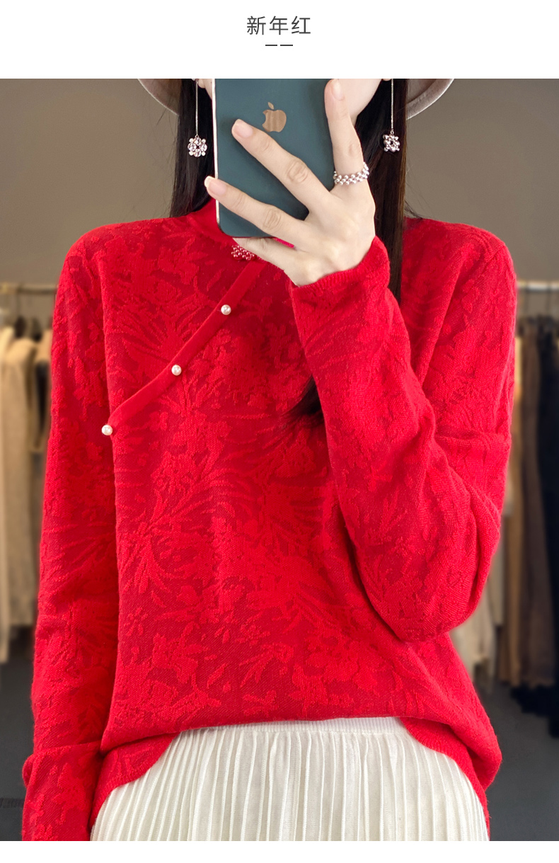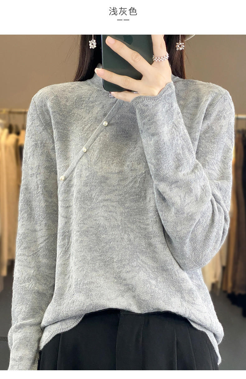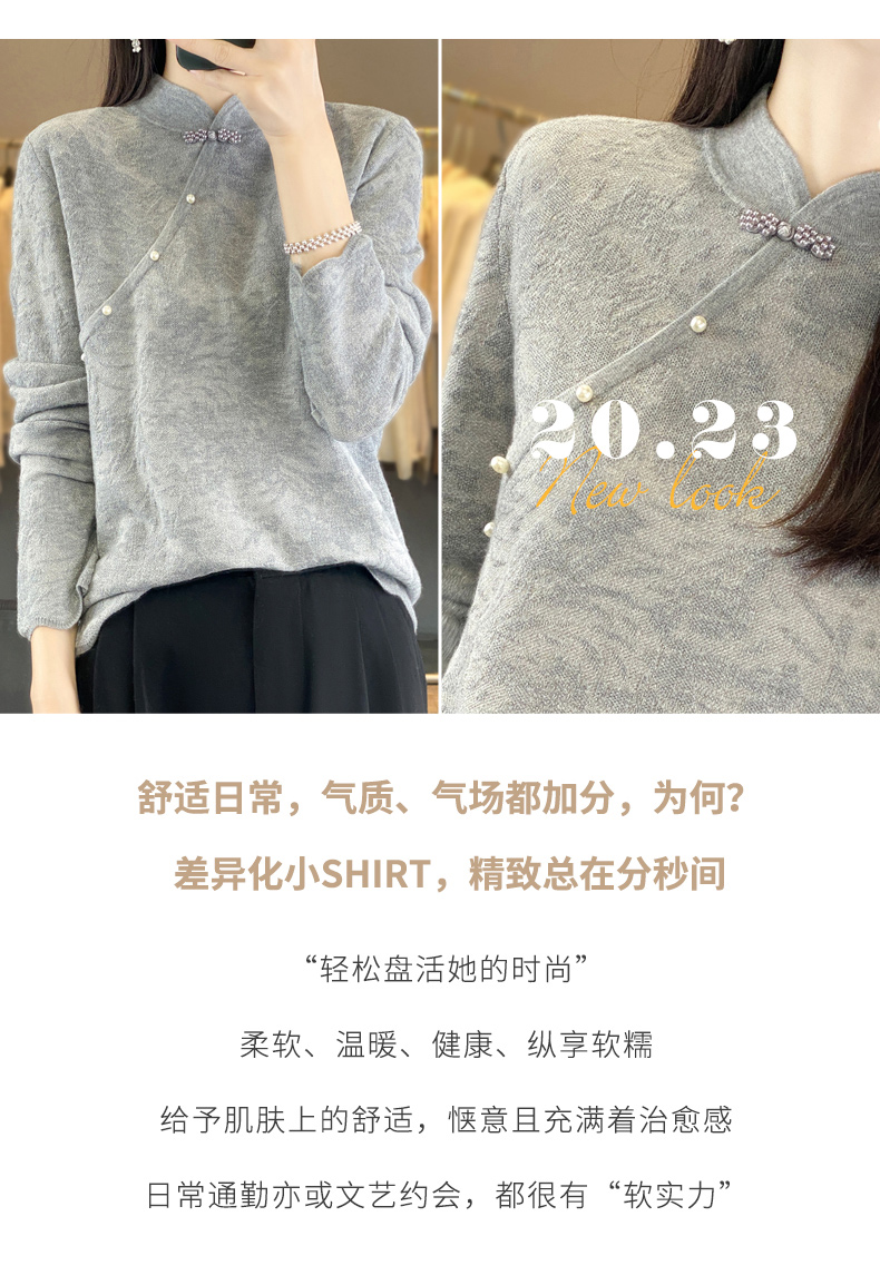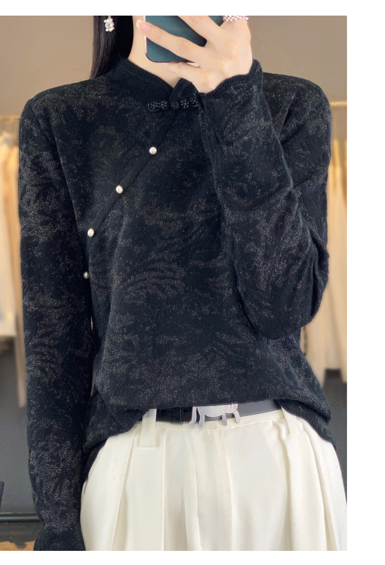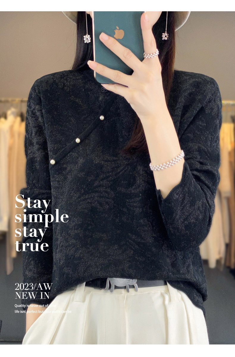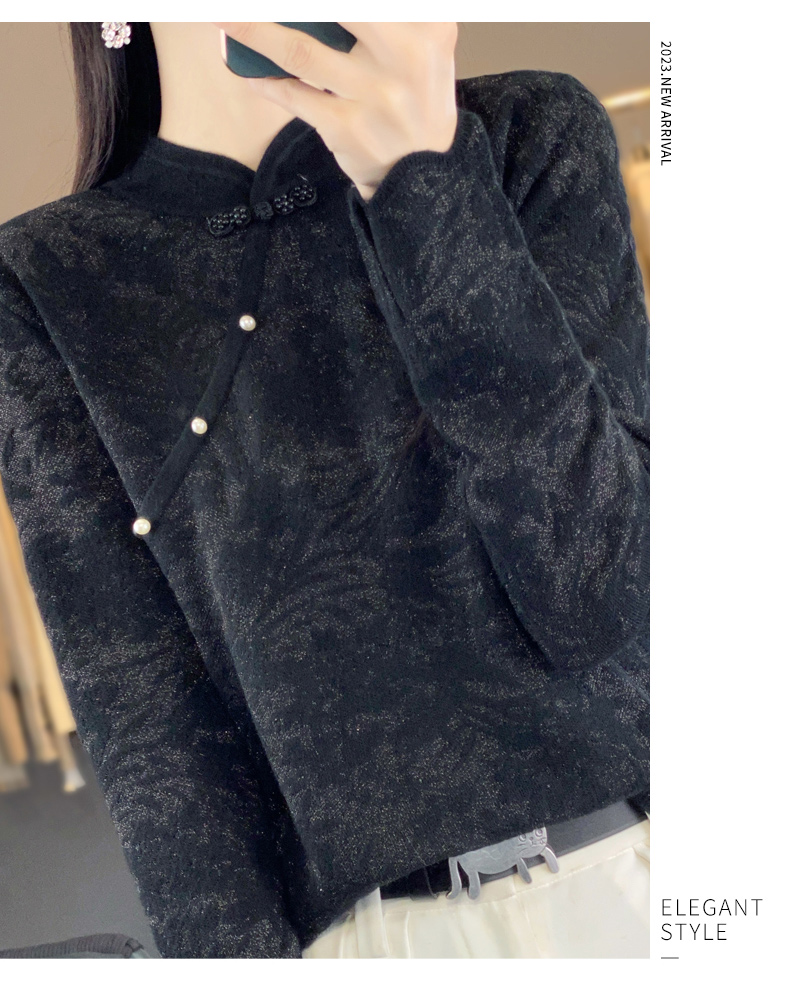 Avann桑蚕丝中国风立领羊毛混纺衫2347