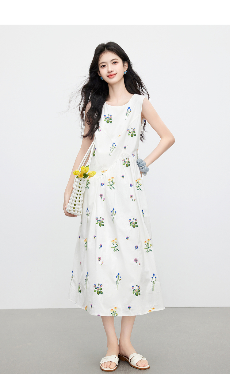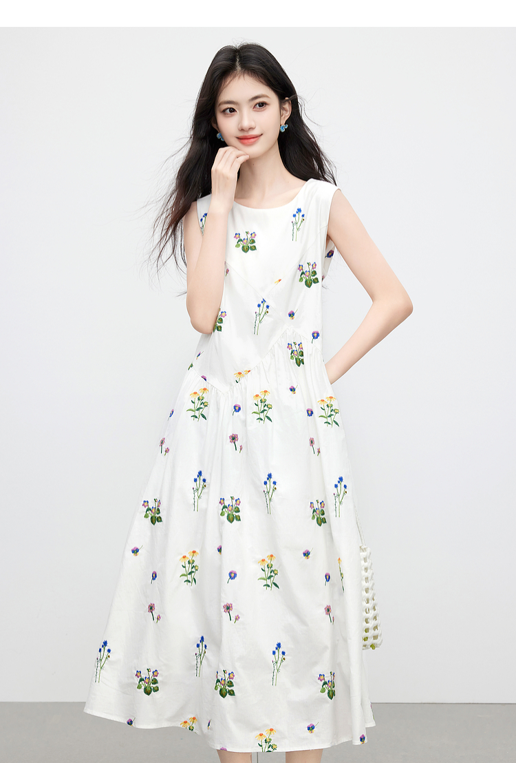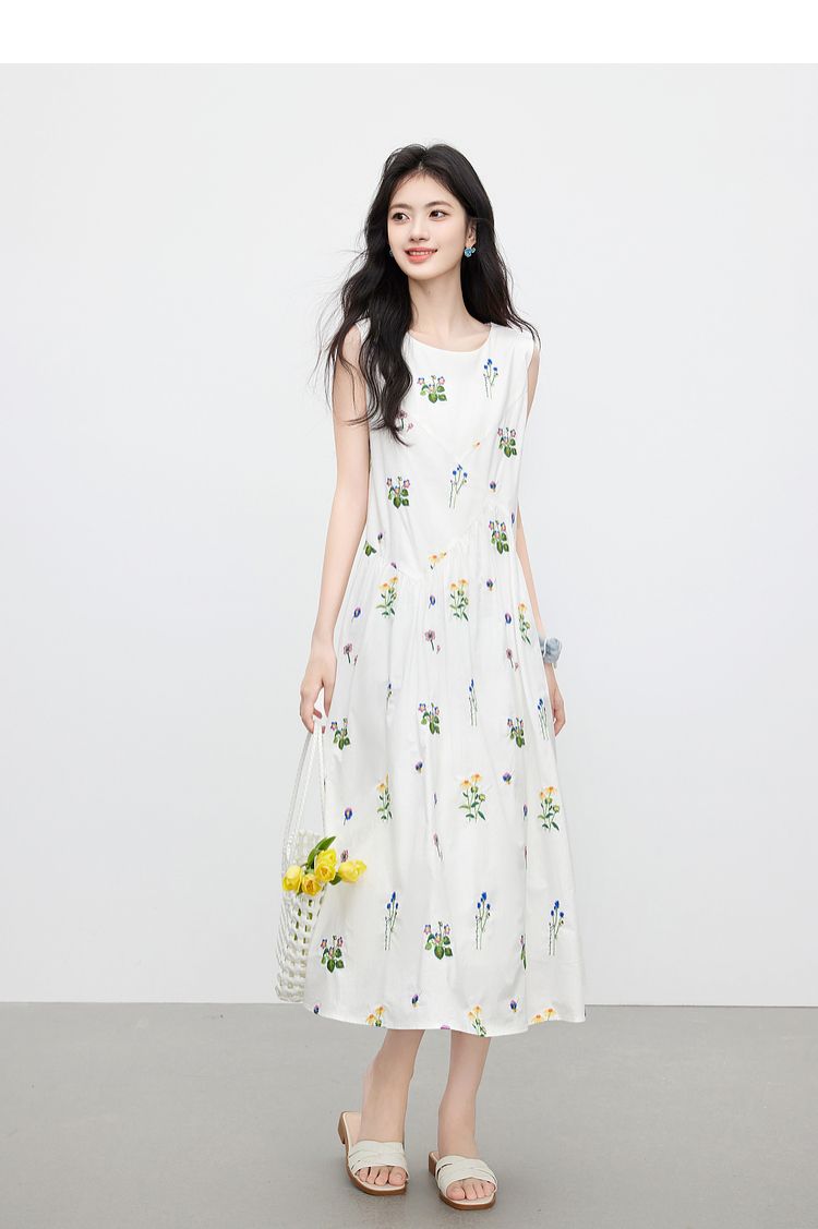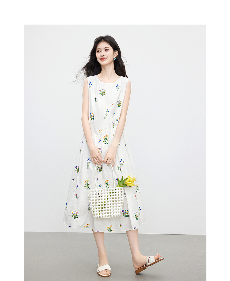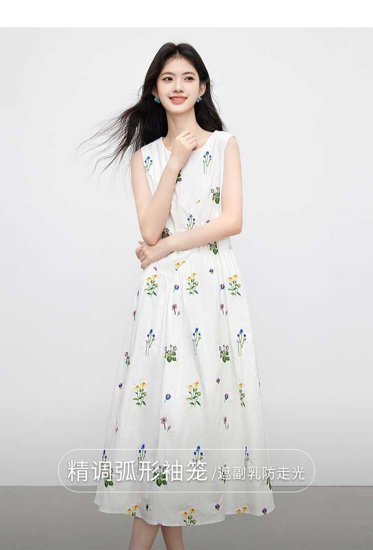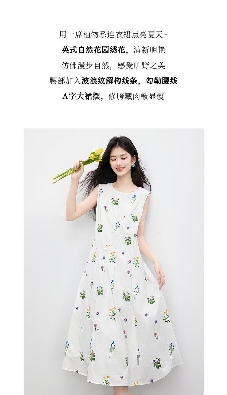 【07/23新品】熙世界田园风花卉植物刺绣连衣裙女夏季法式度假碎花无袖背心裙子