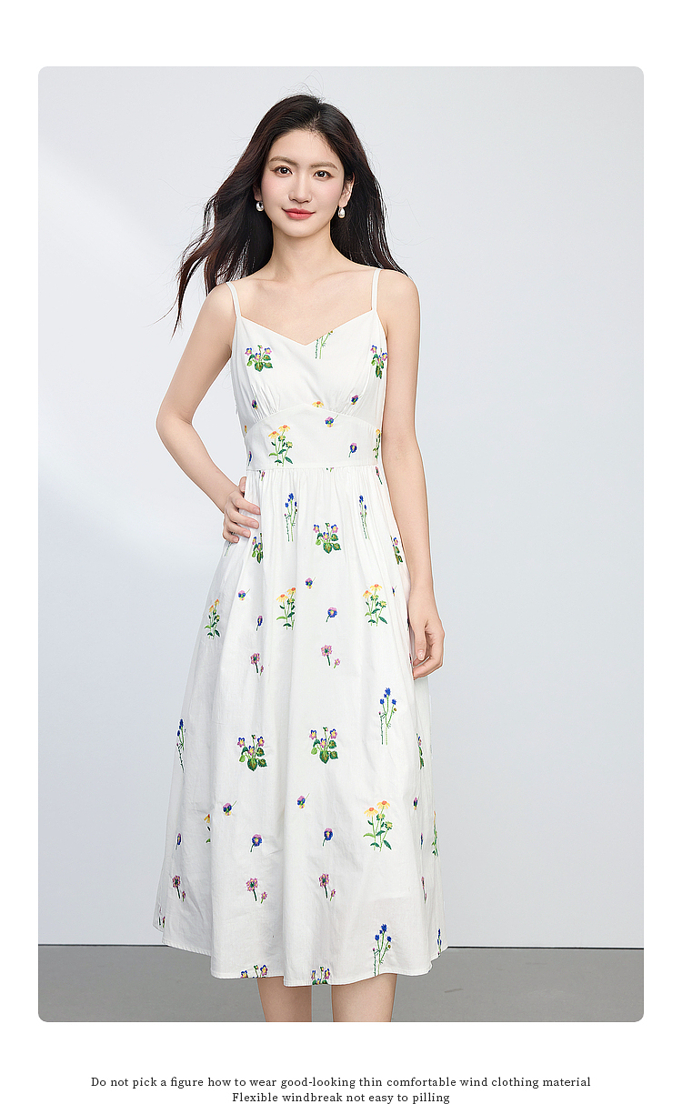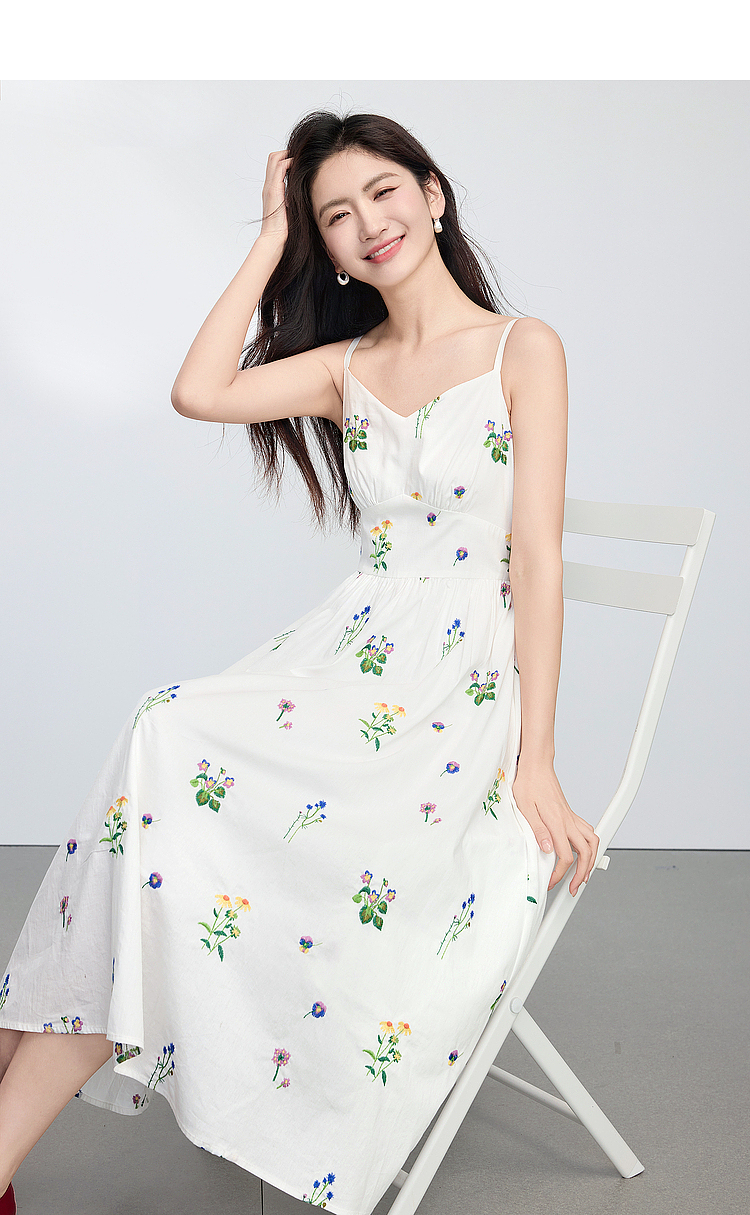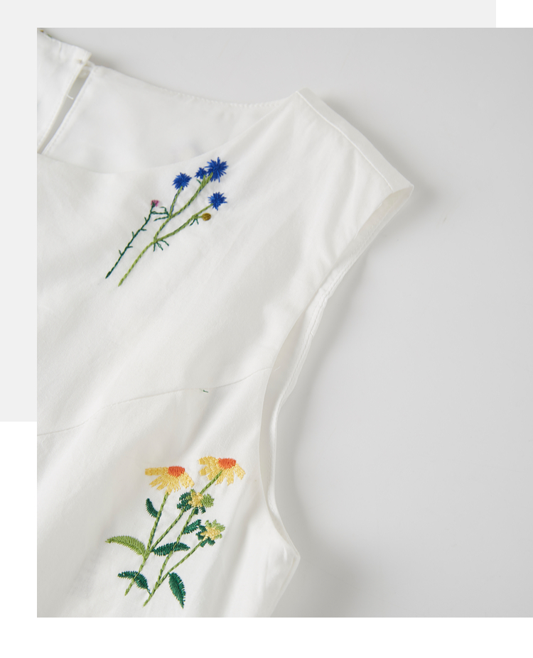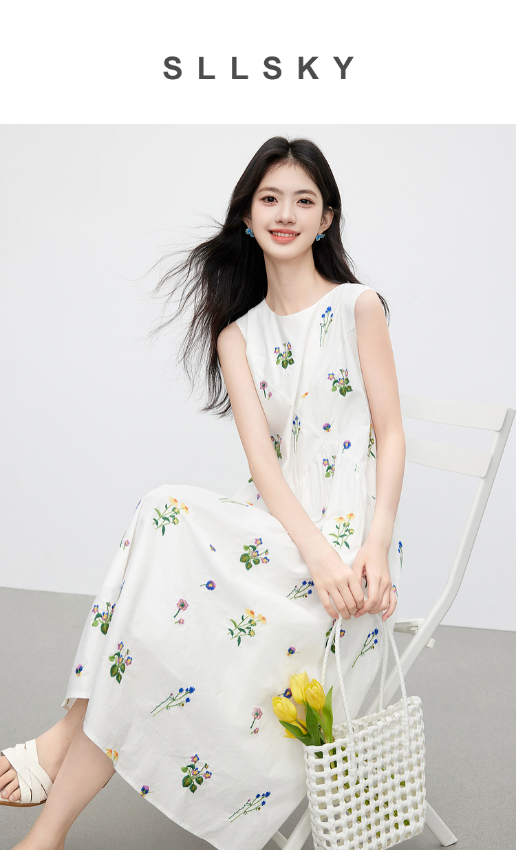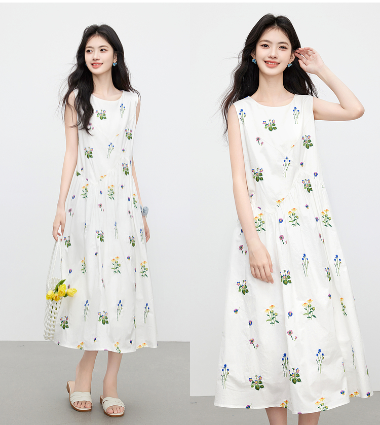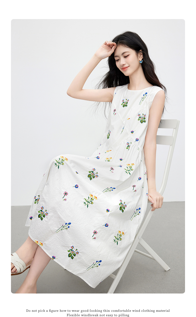 【07/23新品】熙世界田园风花卉植物刺绣连衣裙女夏季法式度假碎花无袖背心裙子