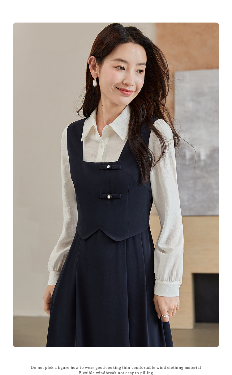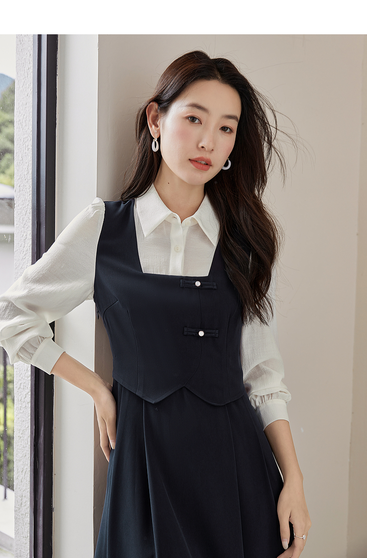 【129选3件,不退换】熙世界时尚假两件新中式盘扣气质长袖衬衫领连衣裙2025秋季新款