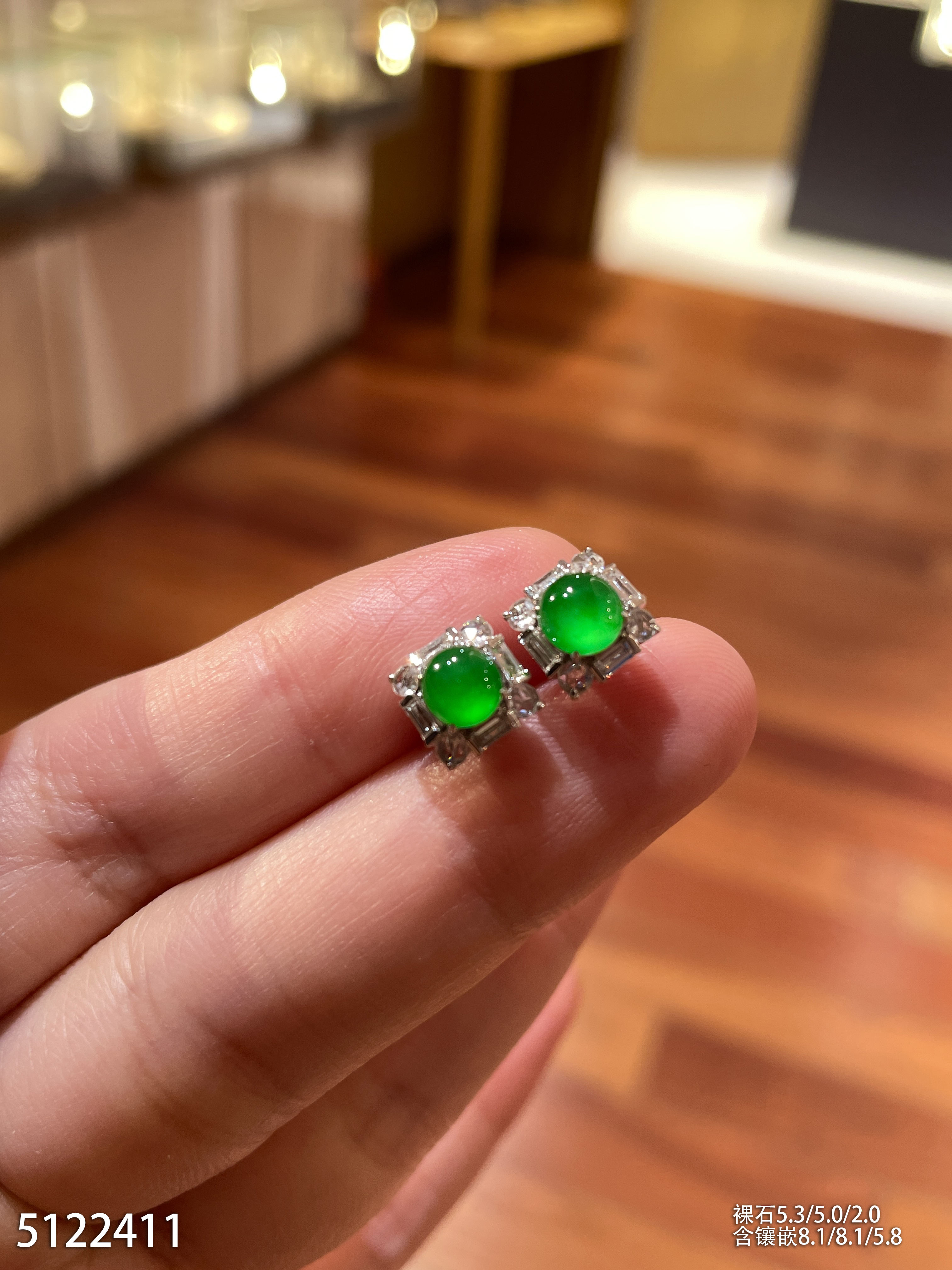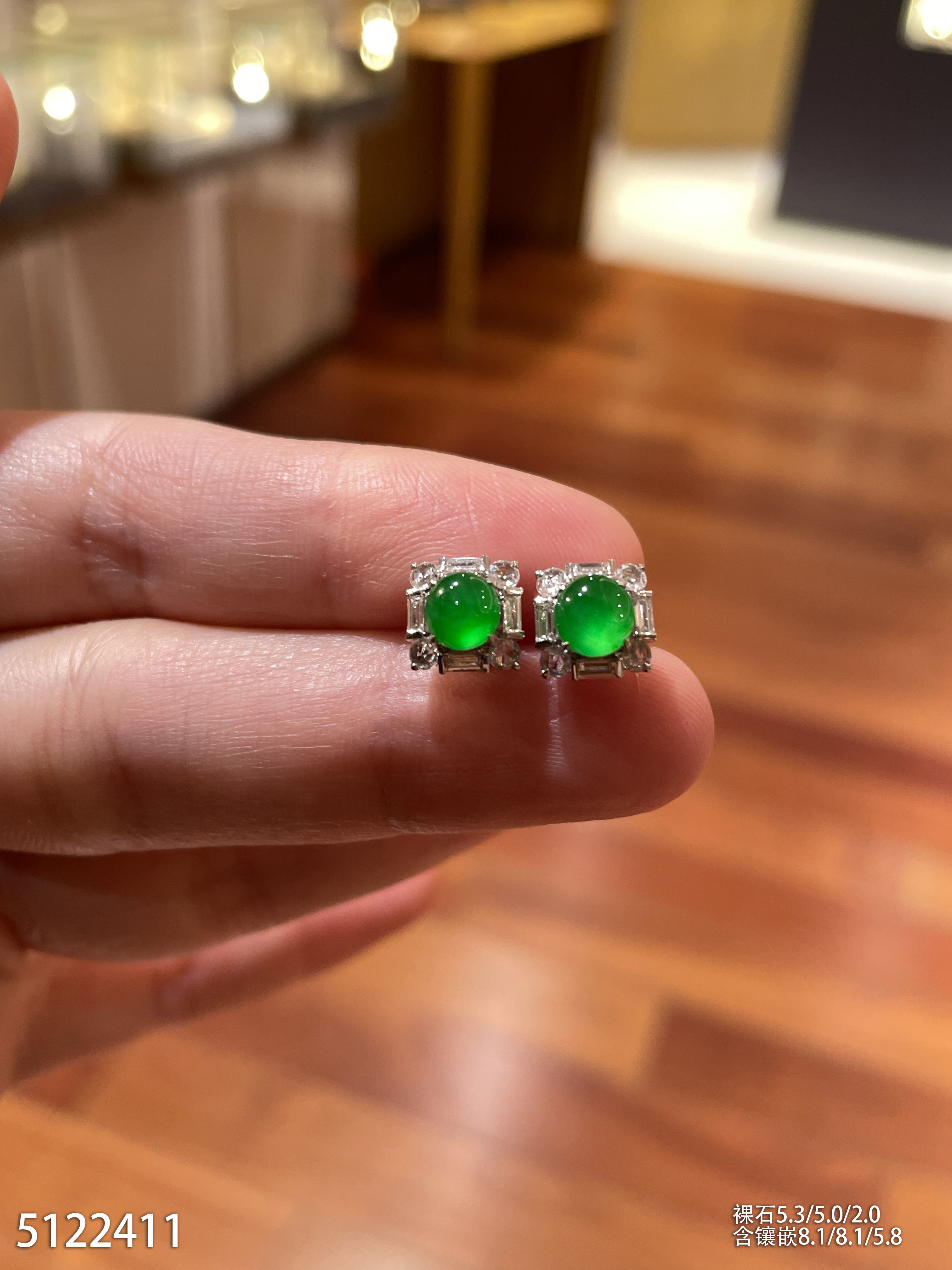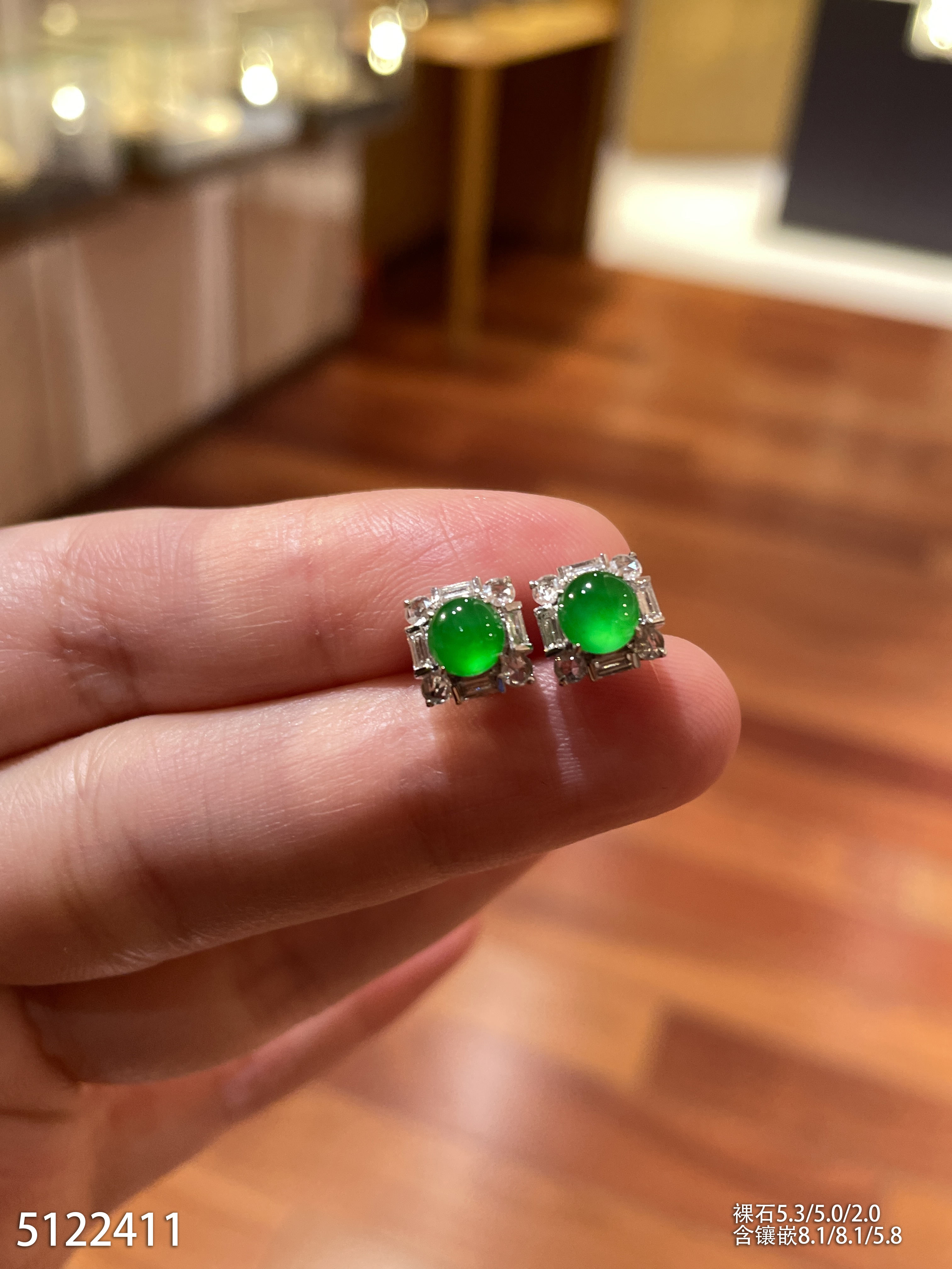 81-1072707,老坑玻璃种帝王绿蛋面耳坠,具体价格微信咨询
