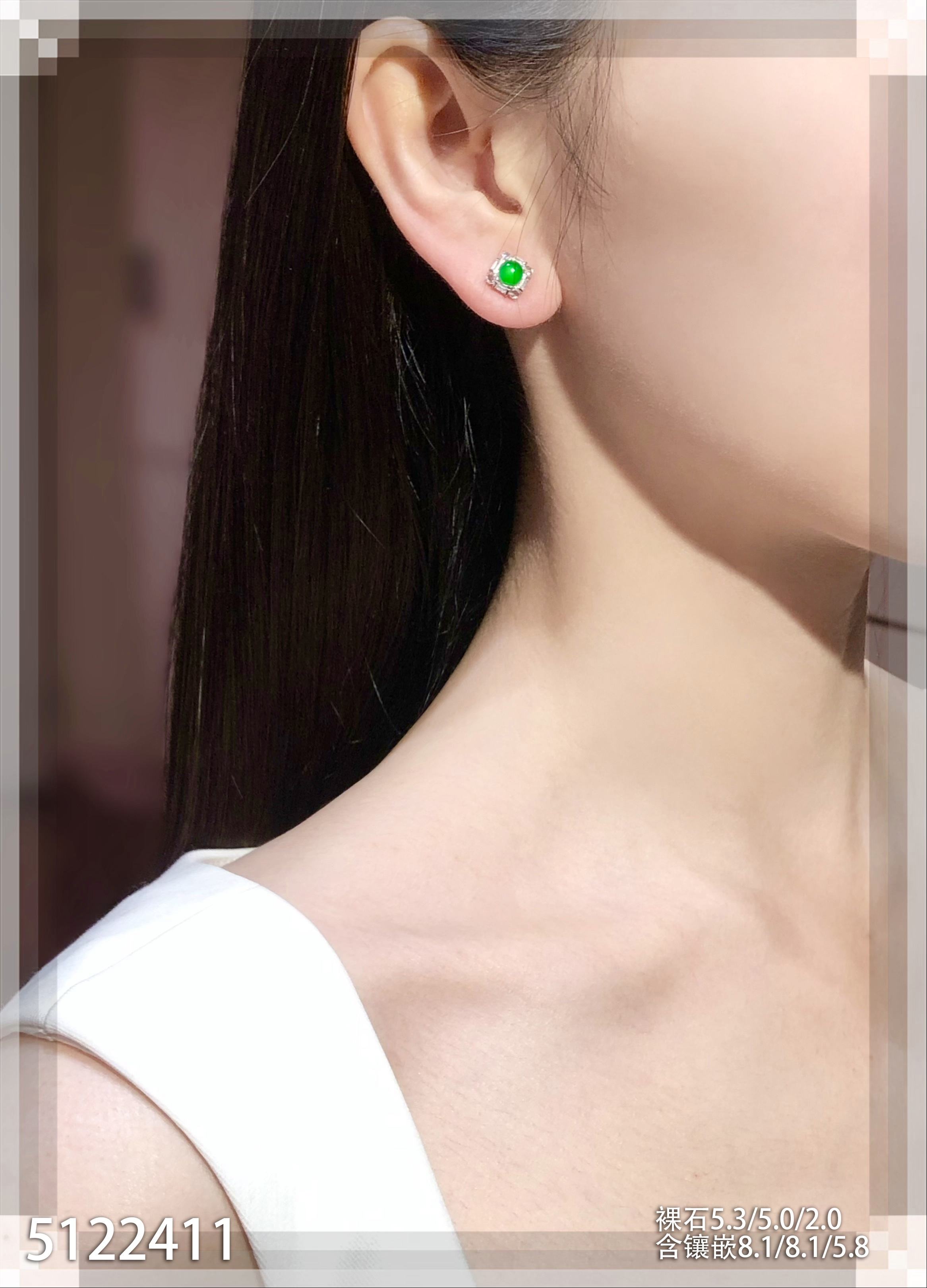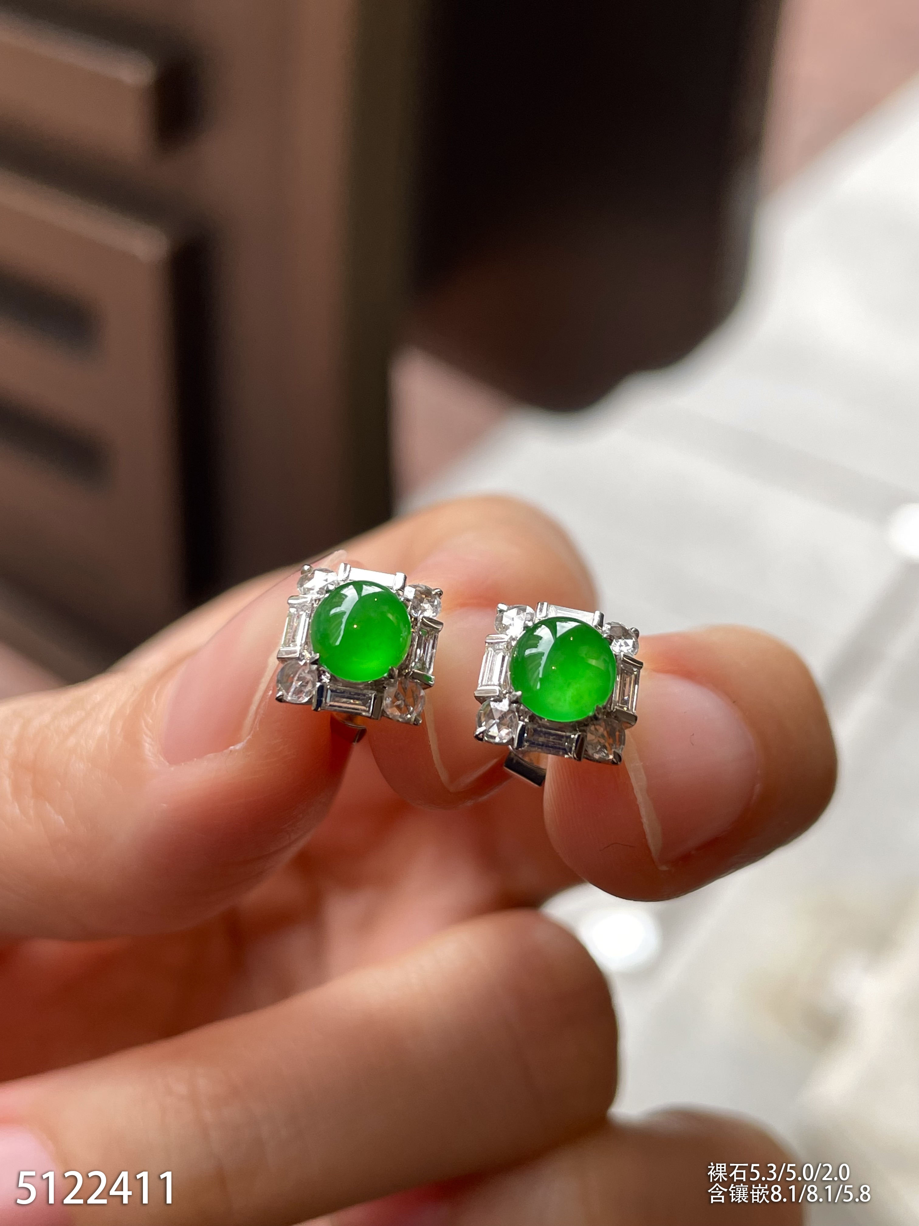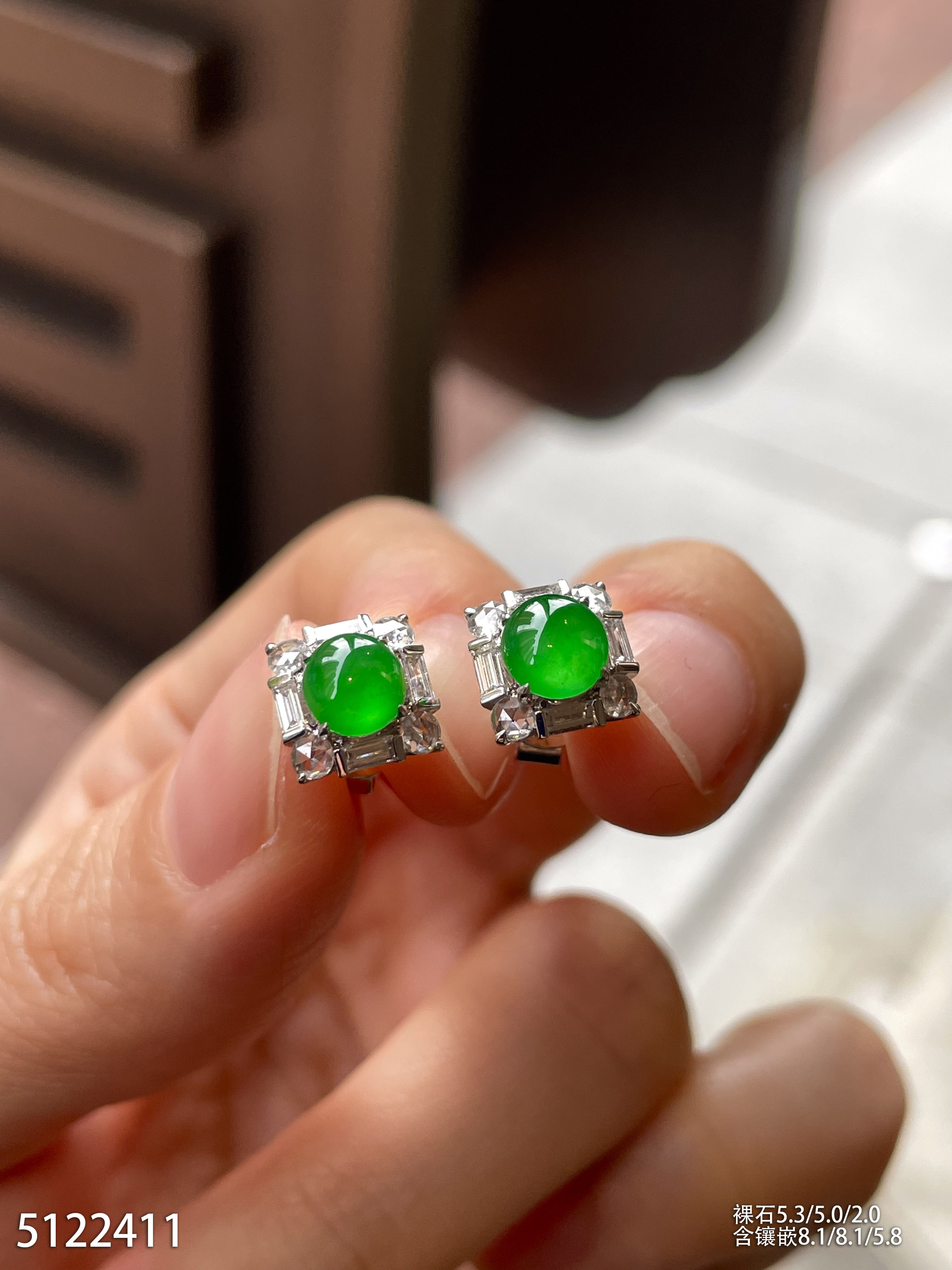 81-1072707,老坑玻璃种帝王绿蛋面耳坠,具体价格微信咨询
