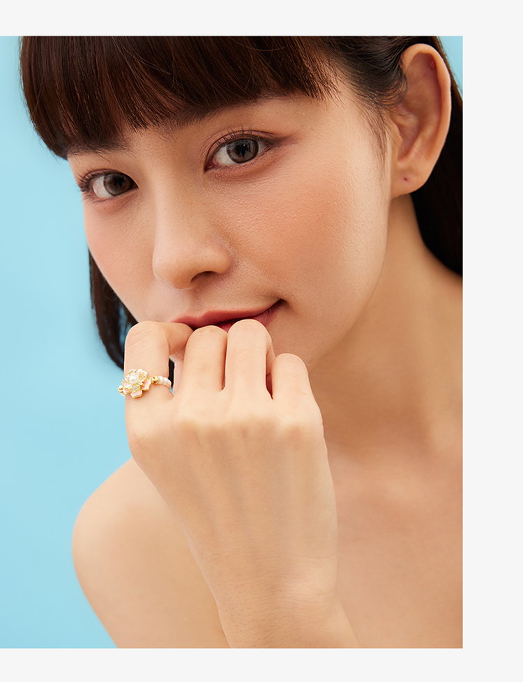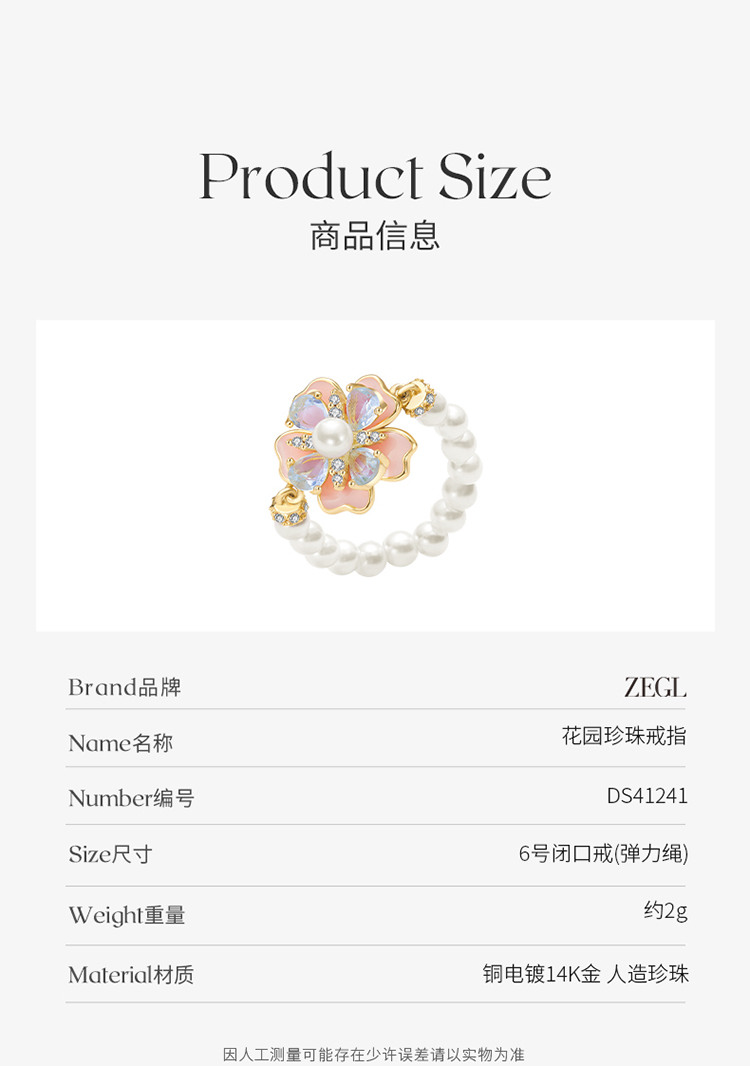 ZEGL设计师秘密花园系列花朵珍珠戒指女小众设计高级感指环食指戒