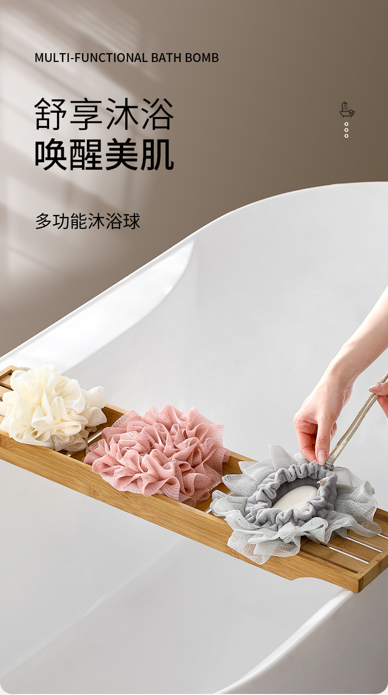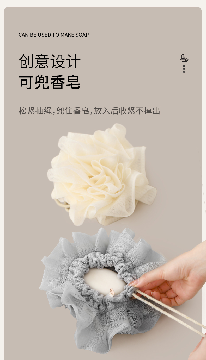FaSoLa二合一可裹香皂沐浴球不散花新款搓澡神器洗澡搓背巾起泡浴花浴球