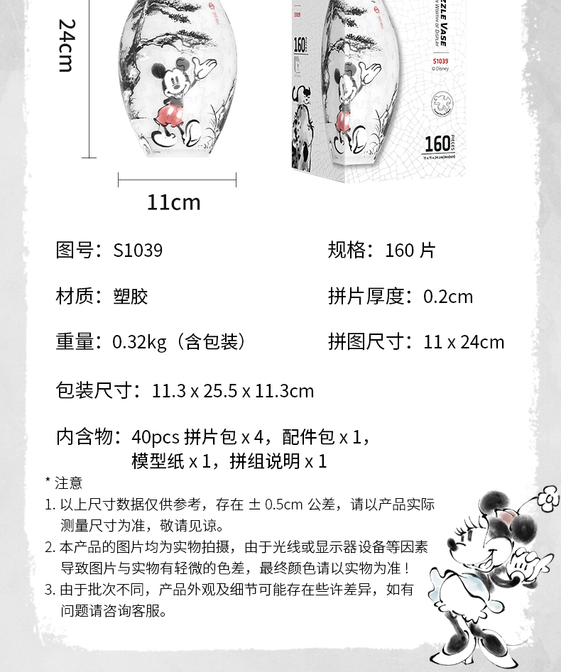 160片 花瓶拼图 S1039 米奇与朋友们系列-冰瓷裂纹·约会