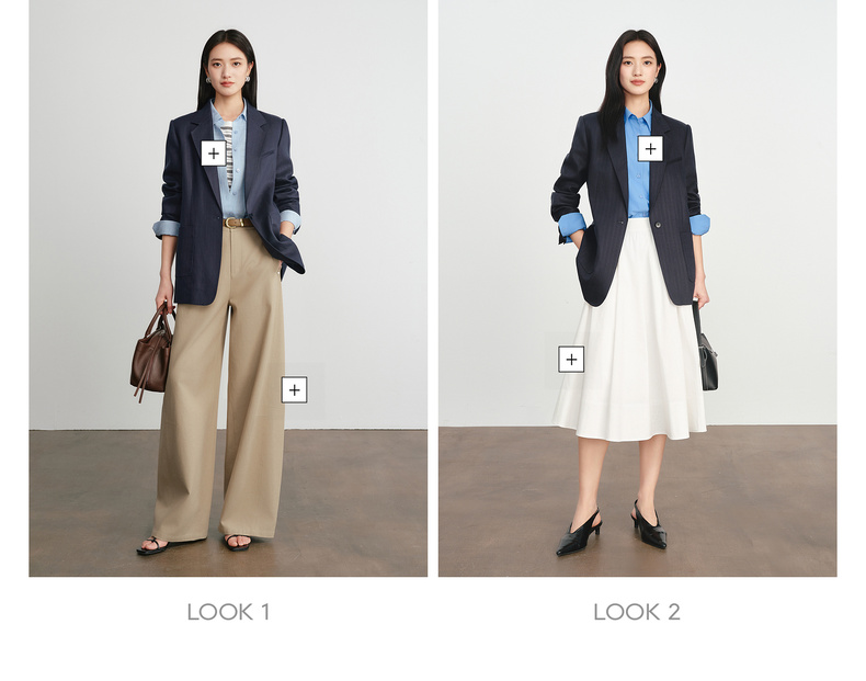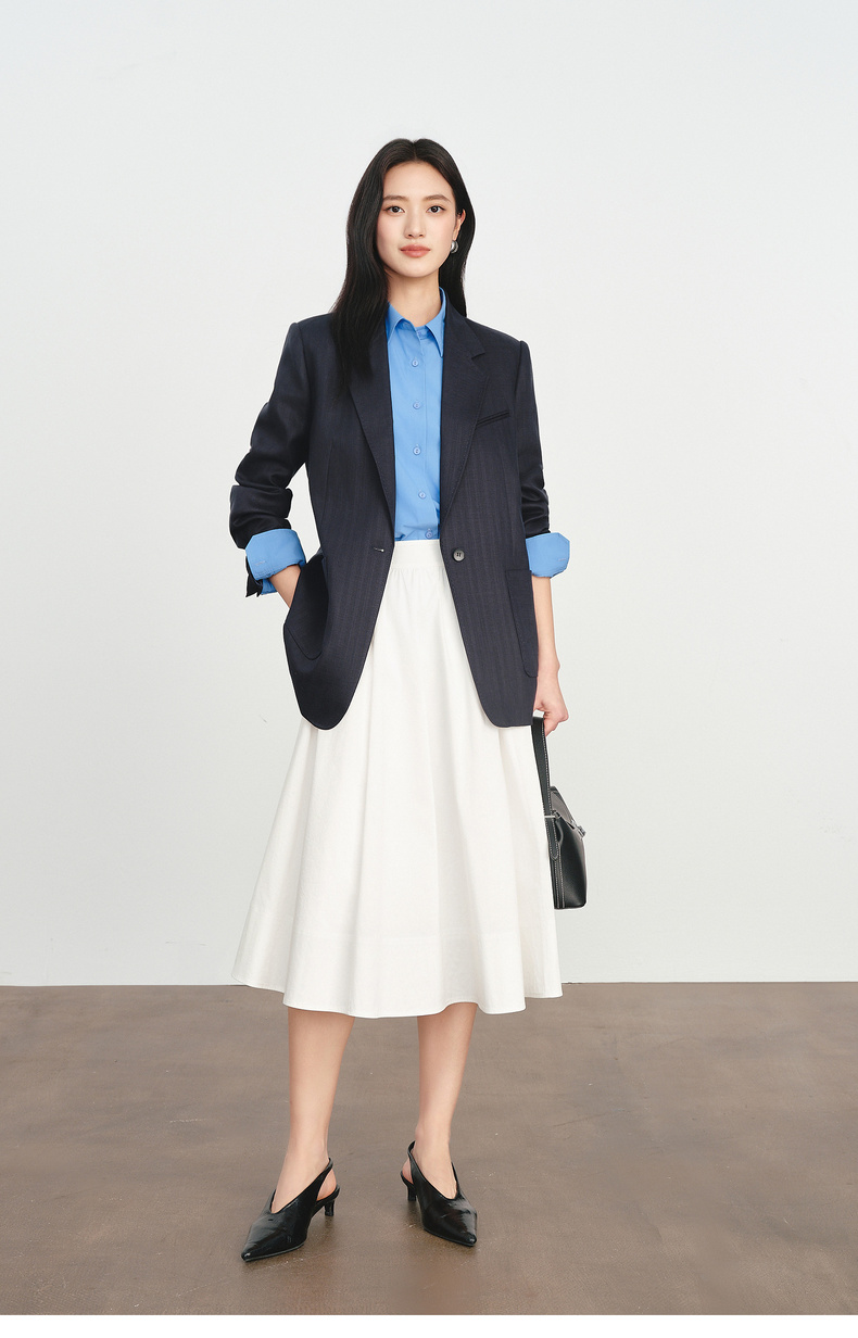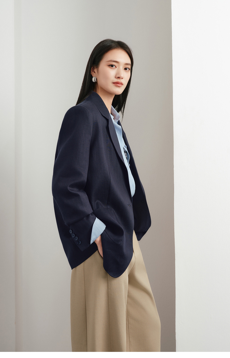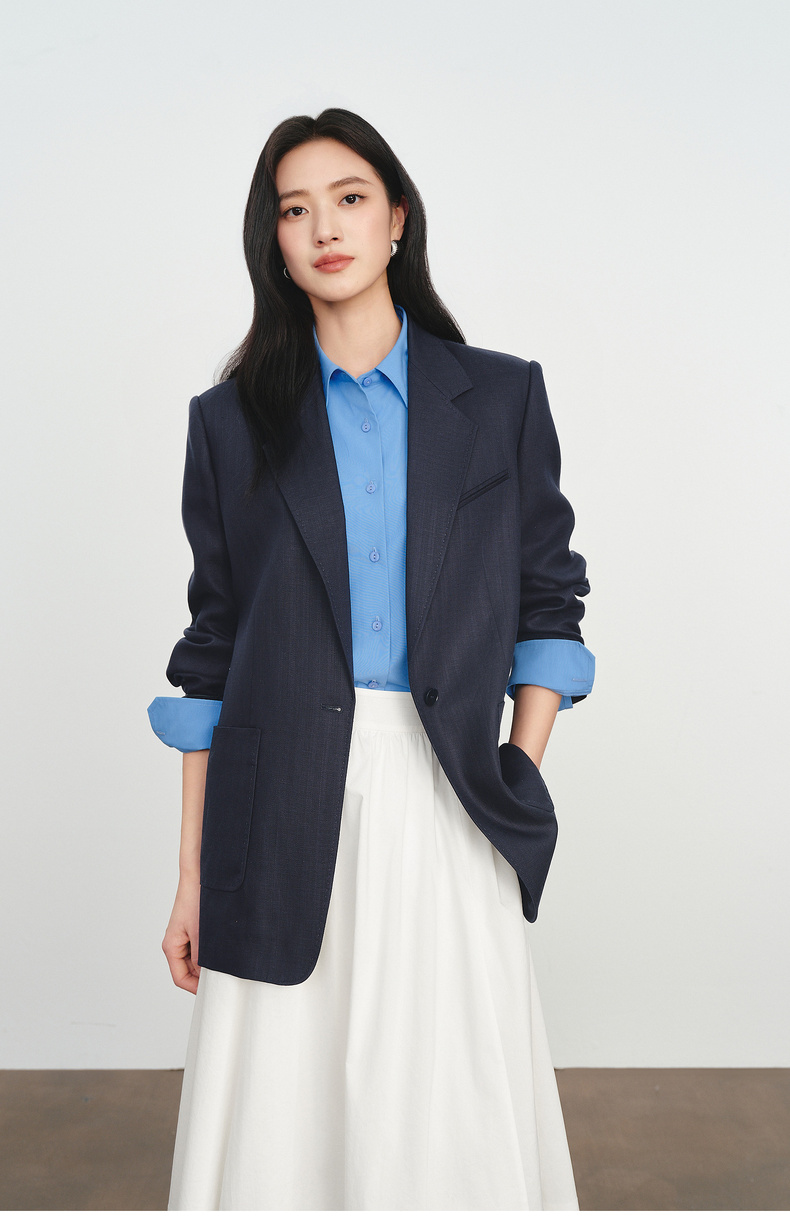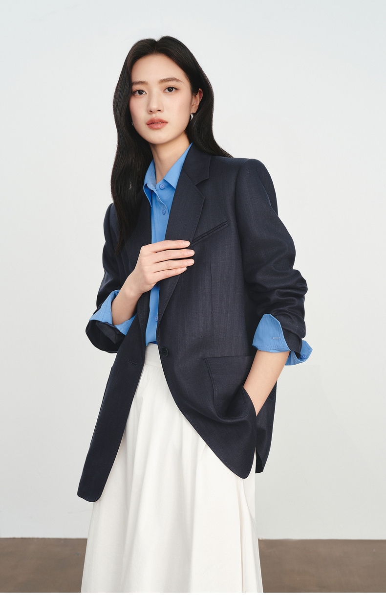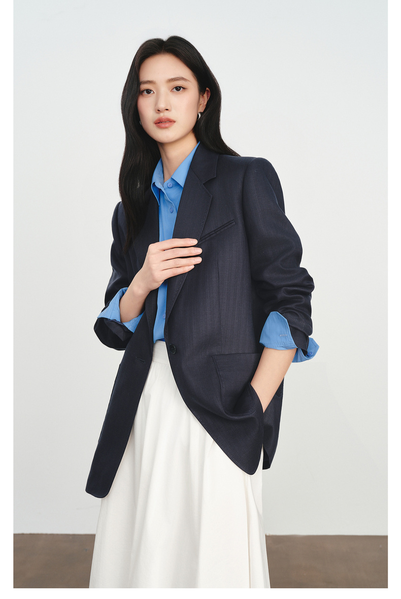 【严选】伊芙丽人字纹设计感宽松廓形西装外套女2026春季新款1H2911501