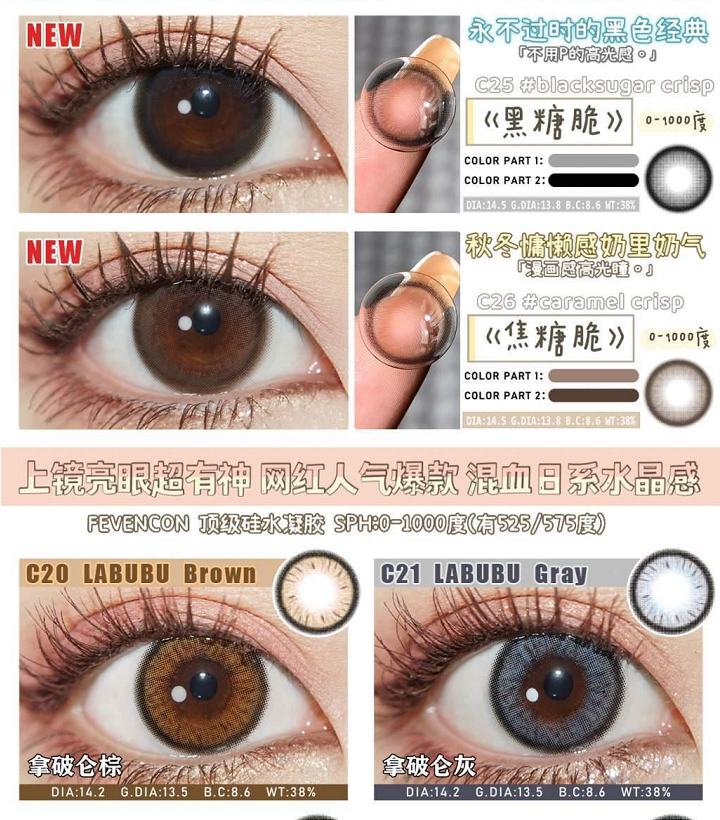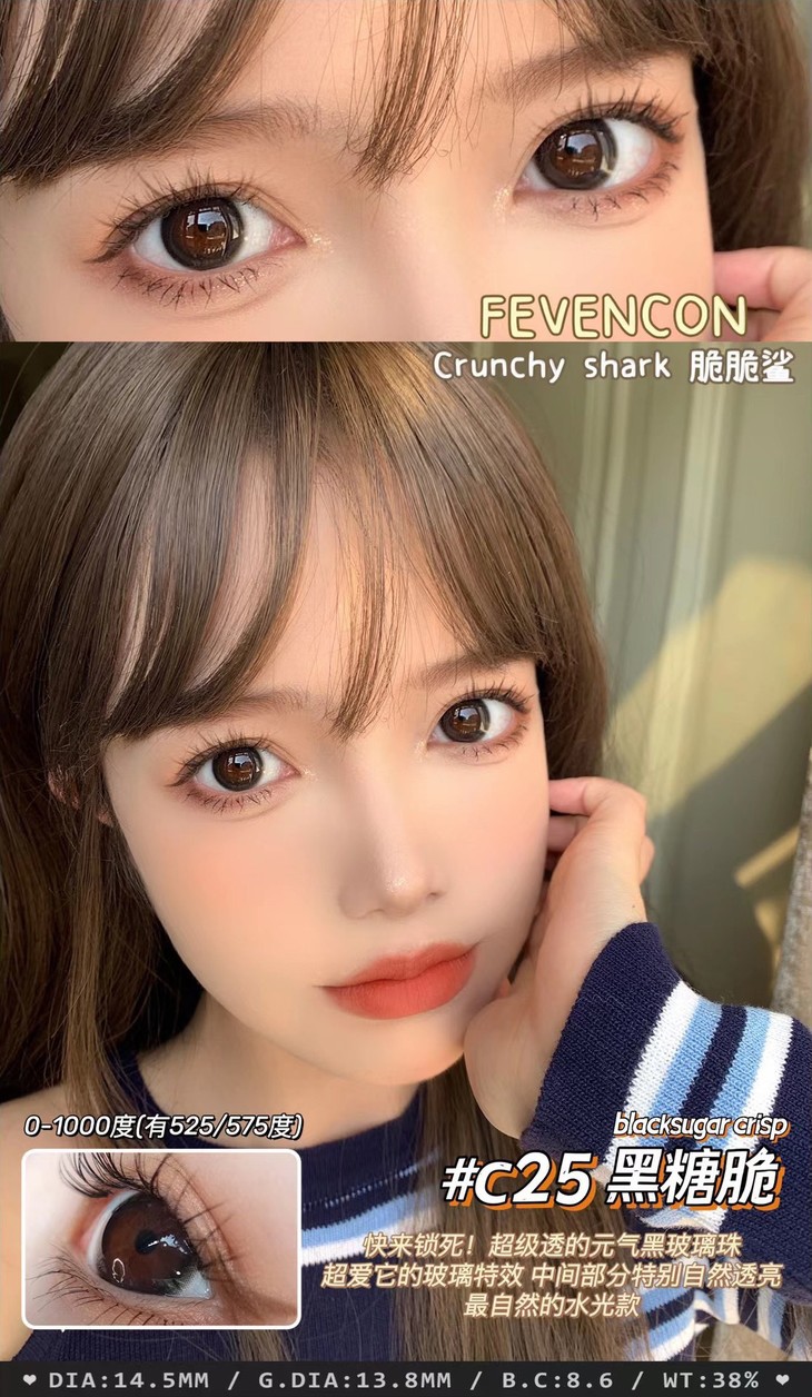【小红书推荐款】fevencon,黑糖脆,直径 14.5,着色 13.8,158/副,最高度数有1000