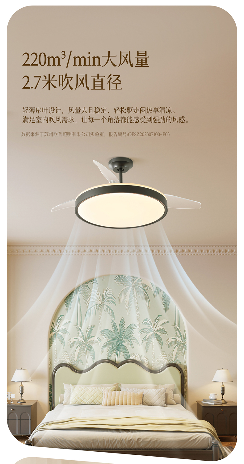欧普(OPPLE)秦风餐厅风扇灯现代简约线面卧室隐形吊扇灯
