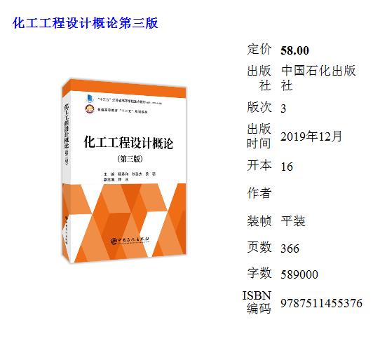 本书适用于作为gao等院校从重化工到轻化工专业设计学习时的教材,也可供研究院所、企业工程技术人员参考。