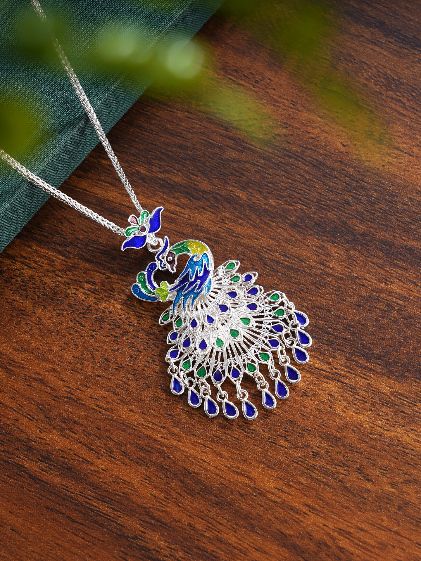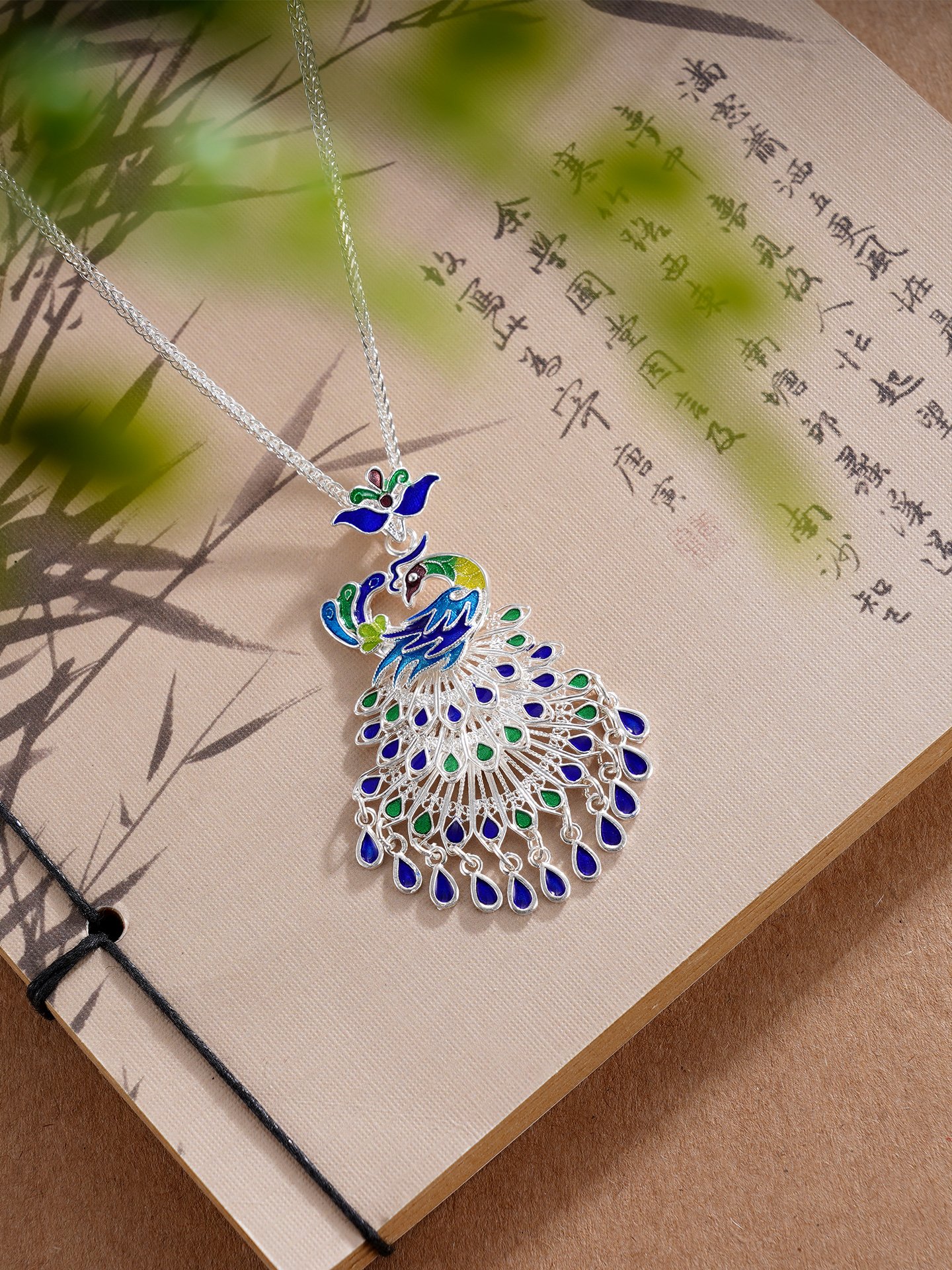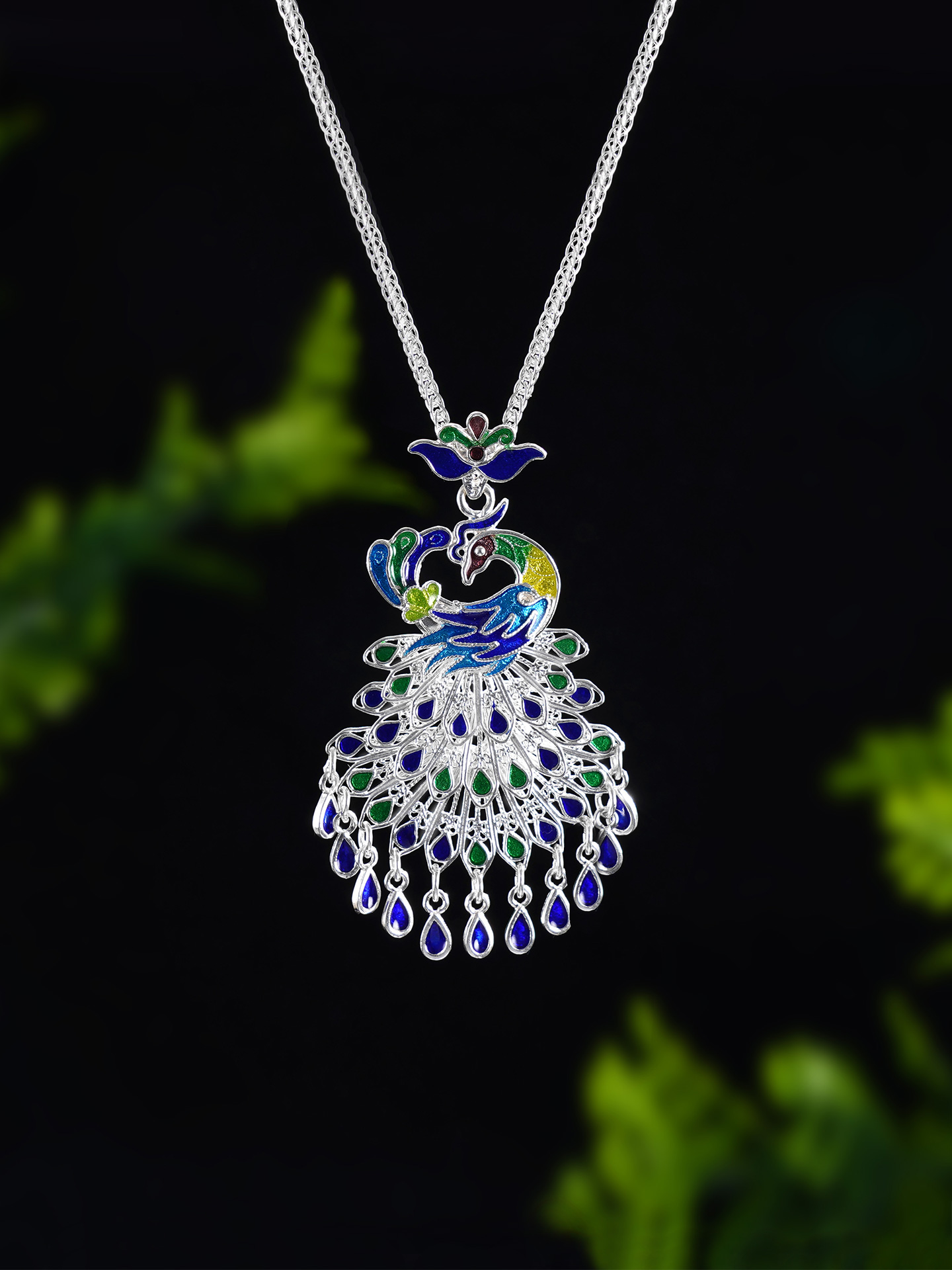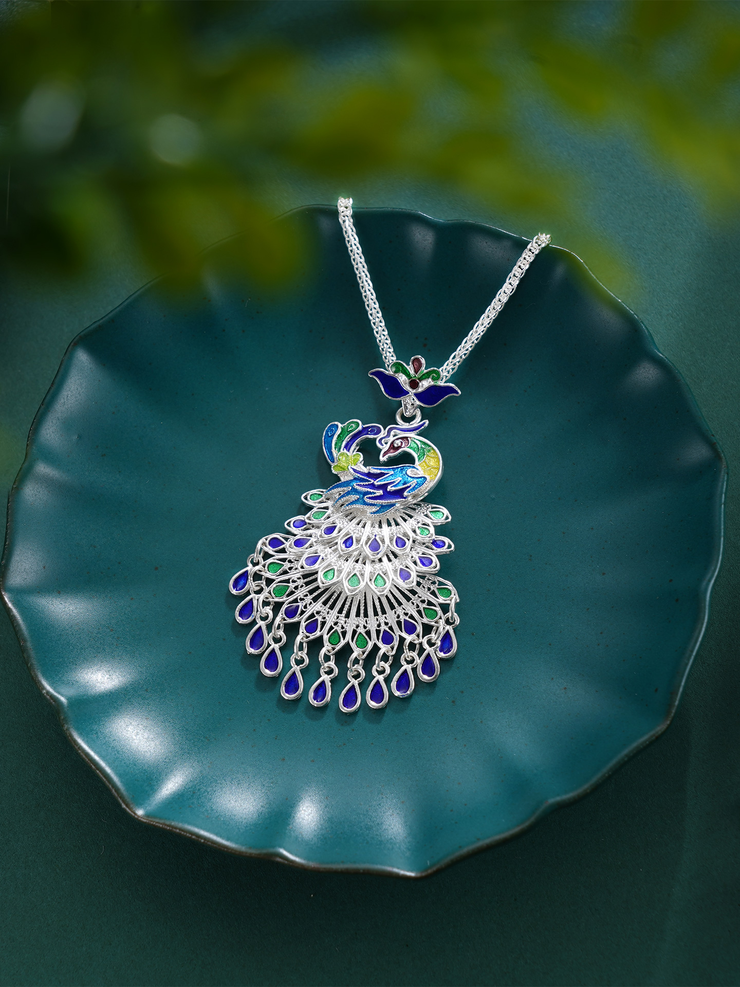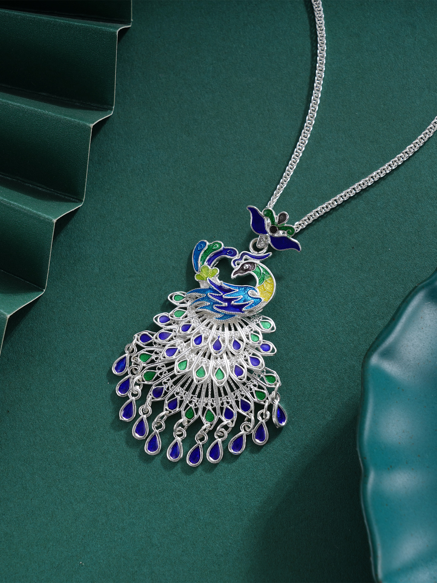 子佩集S990银【灵羽摇华】花丝孔雀套链(小号)【YXYLDZ045】项链珐琅彩2509