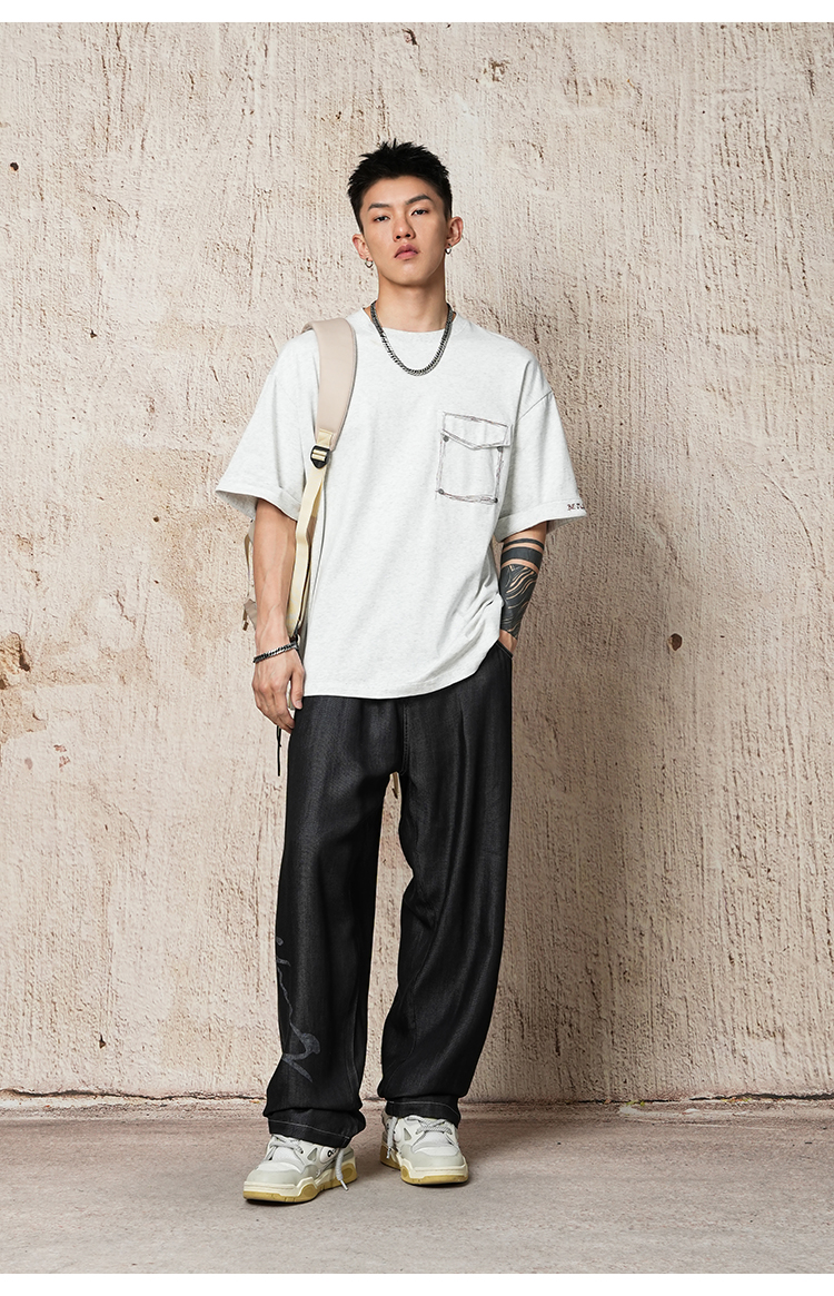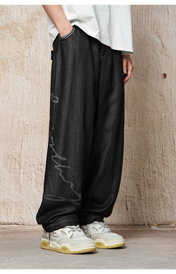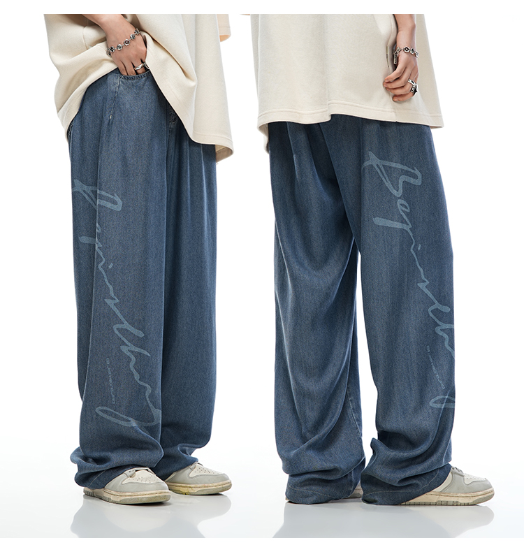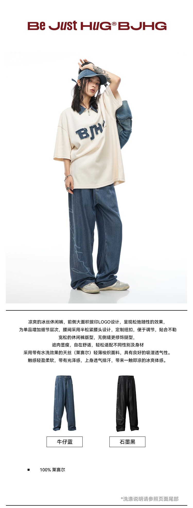 BJHG不计后果美式天丝凉感牛仔裤男夏季潮牌宽松水洗直筒休闲裤子